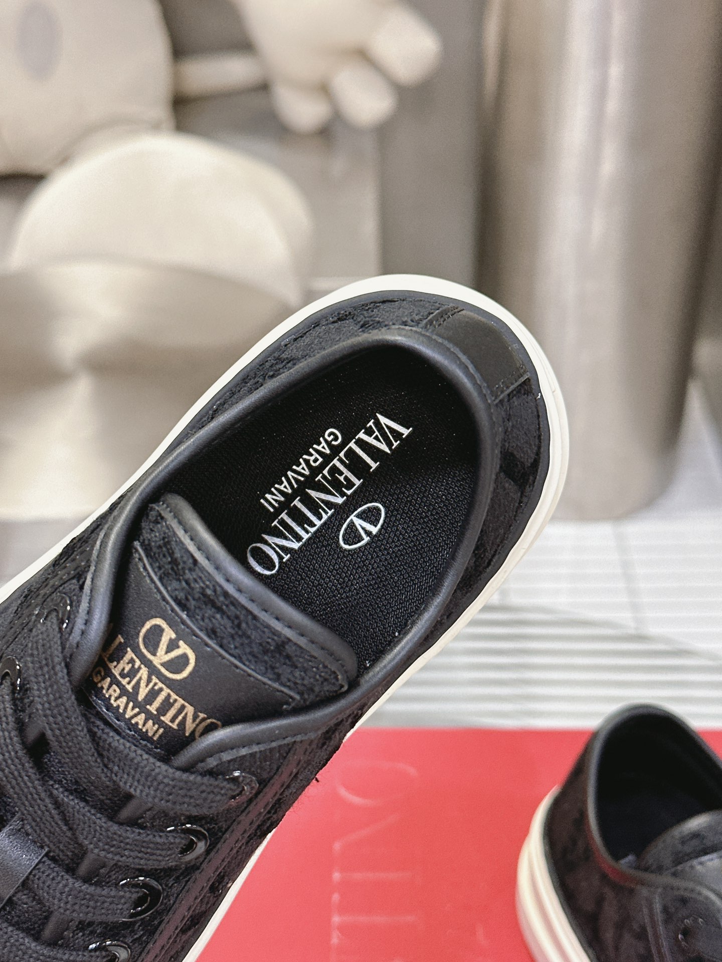 这款鞋子是AAAAA 1:1 质量 (非常棒). 使用了和原版一模一样的材料. 商标部分也保持了和华伦天奴/Valentino一样. 图片拍摄是实物鞋子拍摄, 您所收到的实物保证和我们图片一模一样.