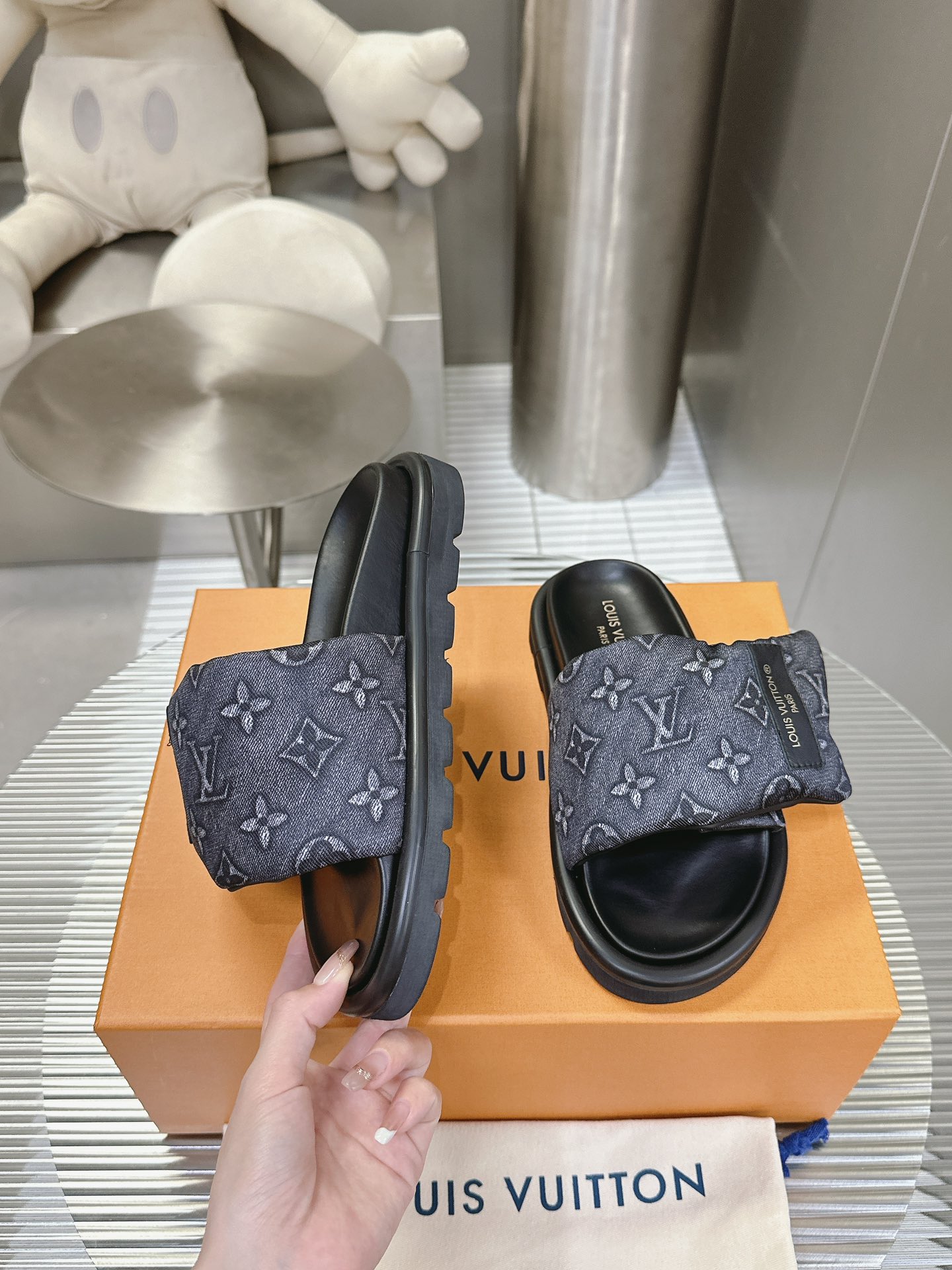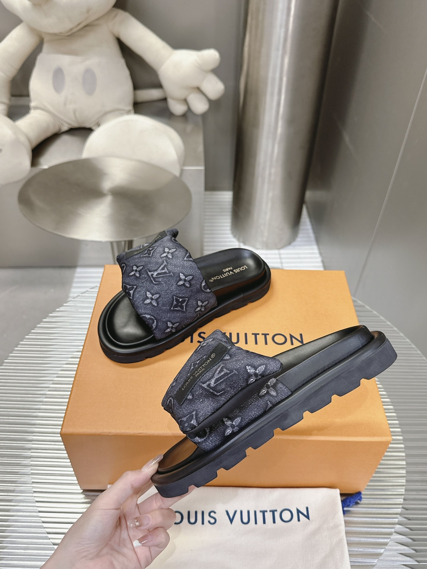 这款鞋子是AAAAA 1:1 质量 (非常棒). 使用了和原版一模一样的材料. 商标部分也保持了和路易威登/Louis Vuitton一样. 图片拍摄是实物鞋子拍摄, 您所收到的实物保证和我们图片一模一样.