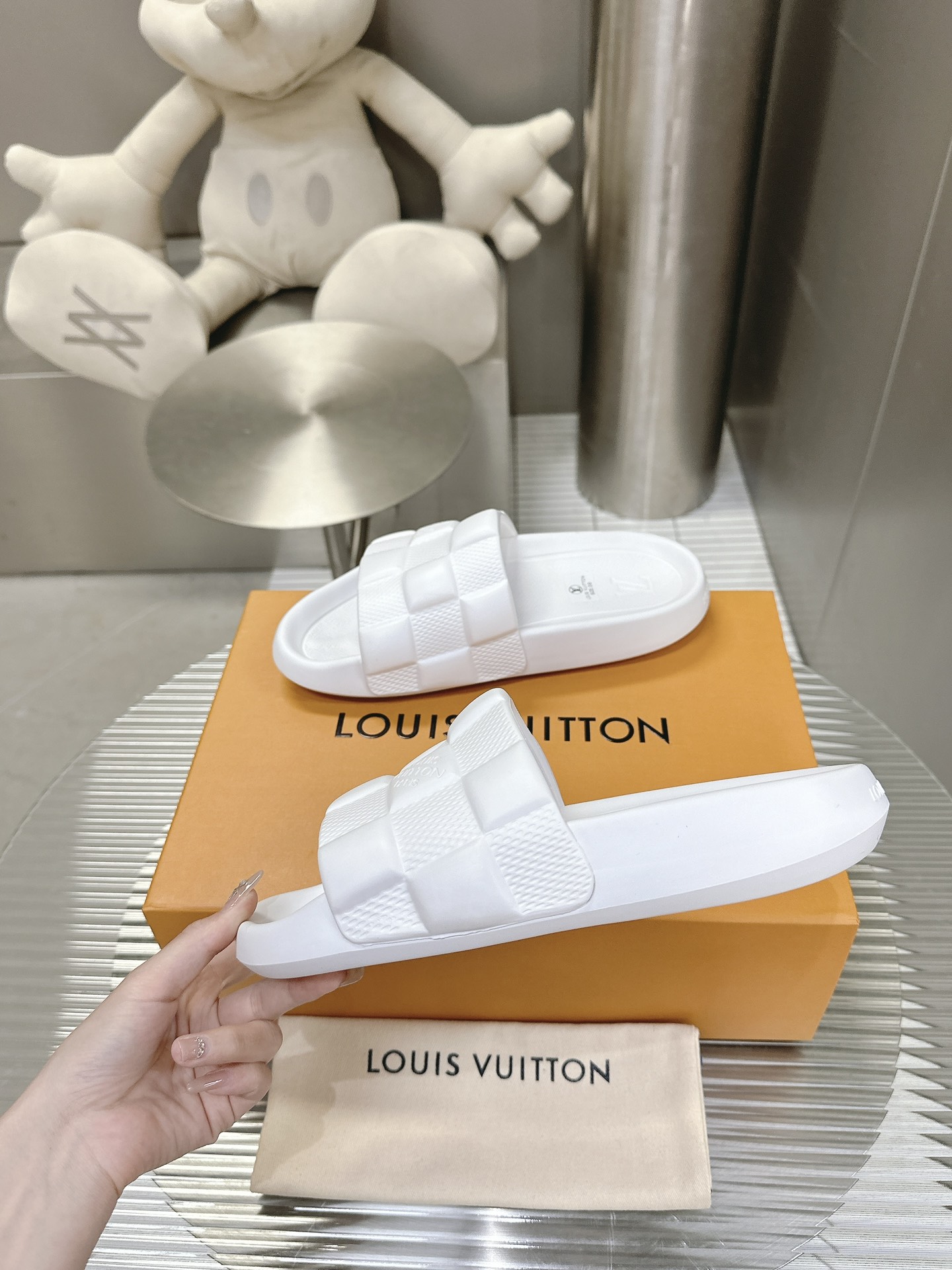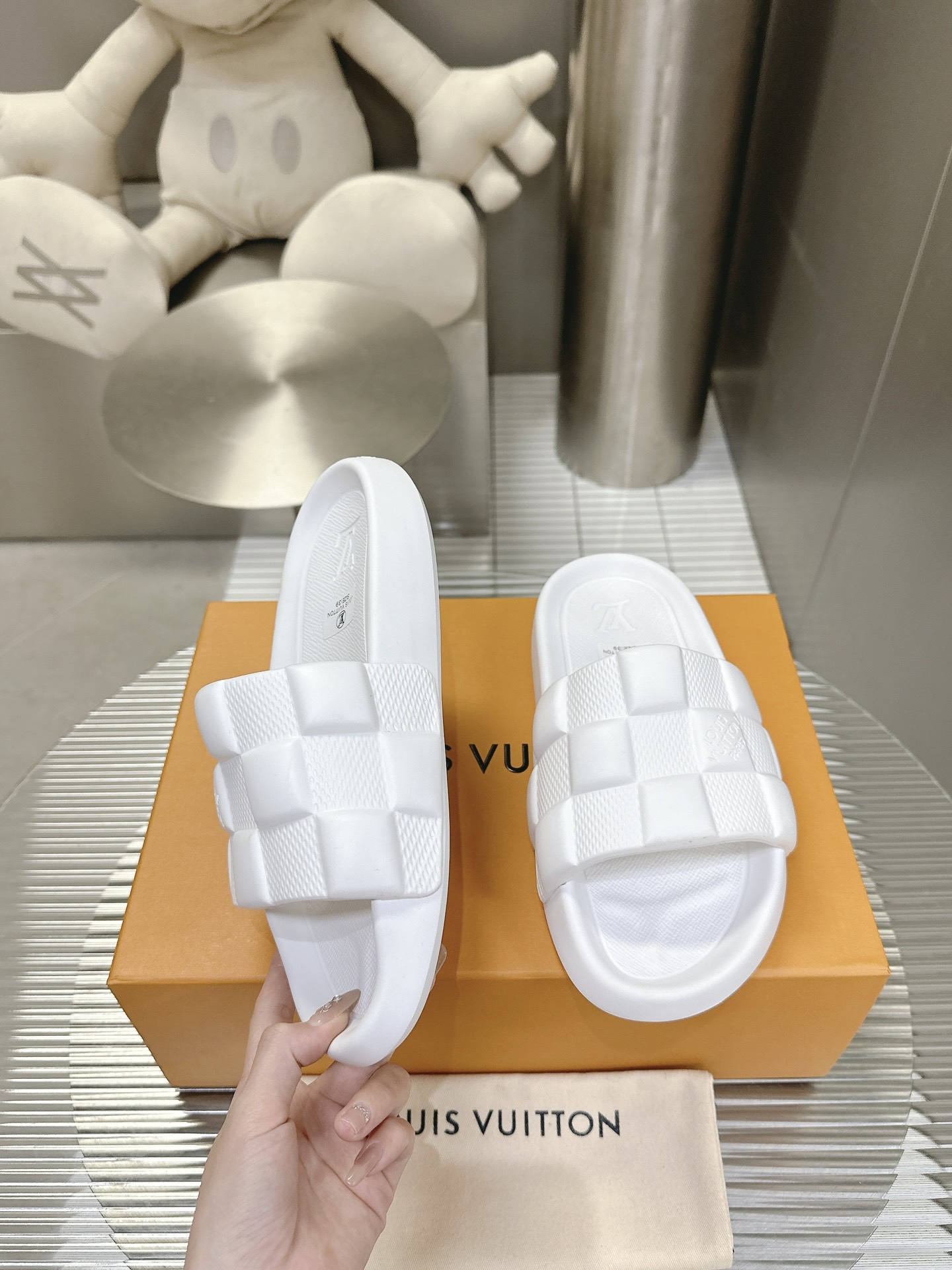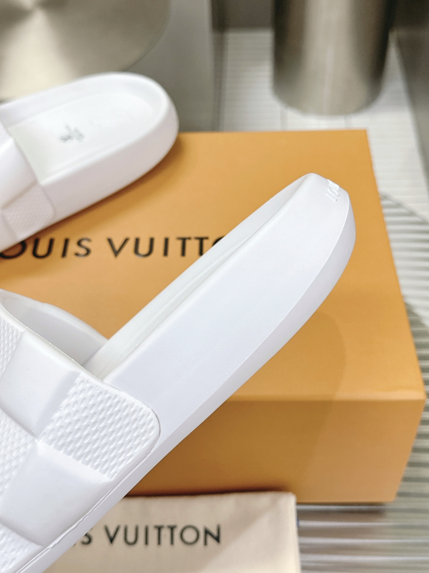 这款鞋子是AAAAA 1:1 质量 (非常棒). 使用了和原版一模一样的材料. 商标部分也保持了和路易威登/Louis Vuitton一样. 图片拍摄是实物鞋子拍摄, 您所收到的实物保证和我们图片一模一样.