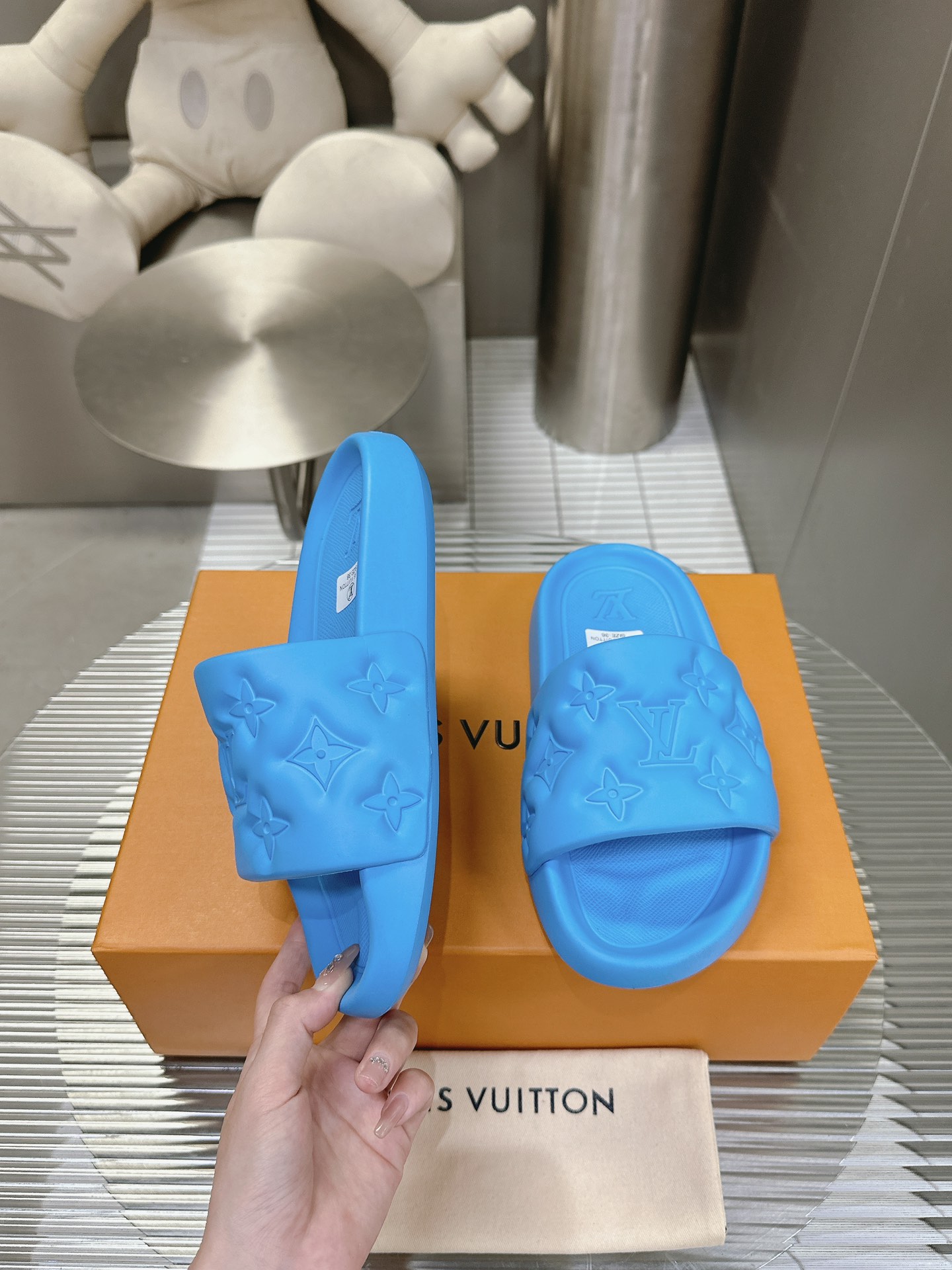 这款鞋子是AAAAA 1:1 质量 (非常棒). 使用了和原版一模一样的材料. 商标部分也保持了和路易威登/Louis Vuitton一样. 图片拍摄是实物鞋子拍摄, 您所收到的实物保证和我们图片一模一样.
