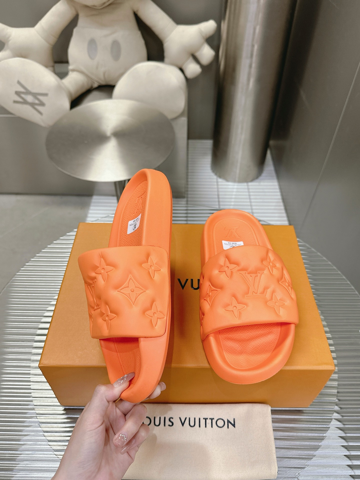 这款鞋子是AAAAA 1:1 质量 (非常棒). 使用了和原版一模一样的材料. 商标部分也保持了和路易威登/Louis Vuitton一样. 图片拍摄是实物鞋子拍摄, 您所收到的实物保证和我们图片一模一样.
