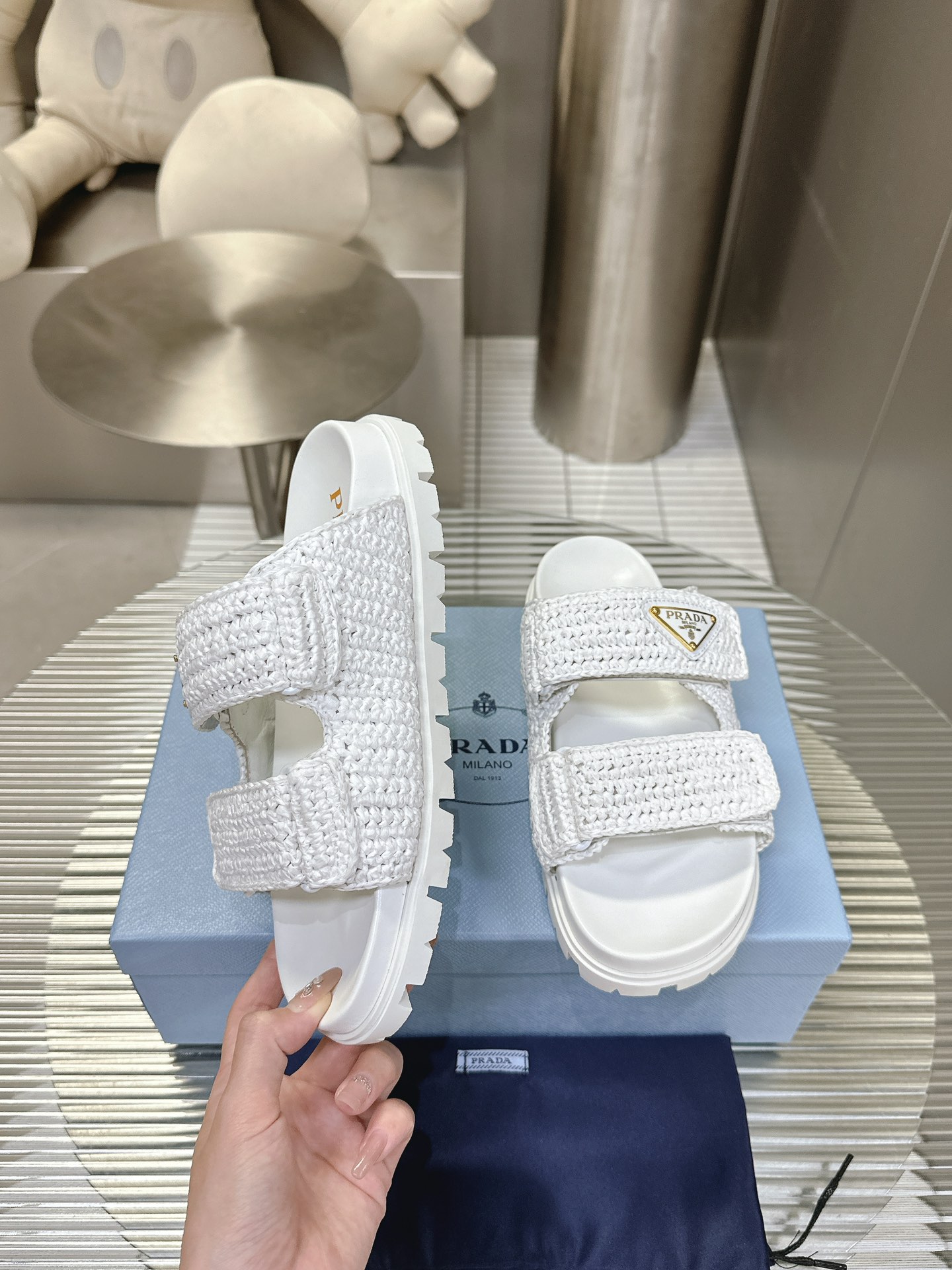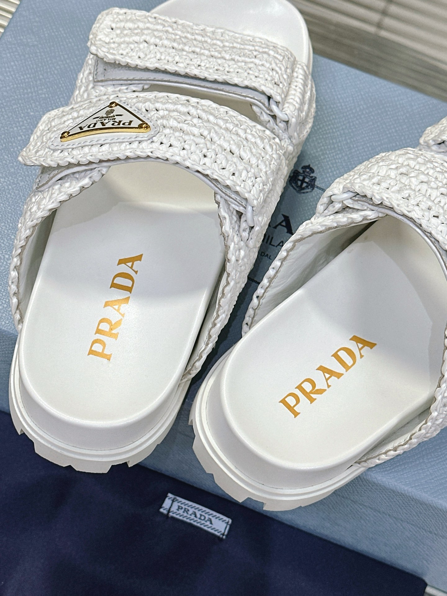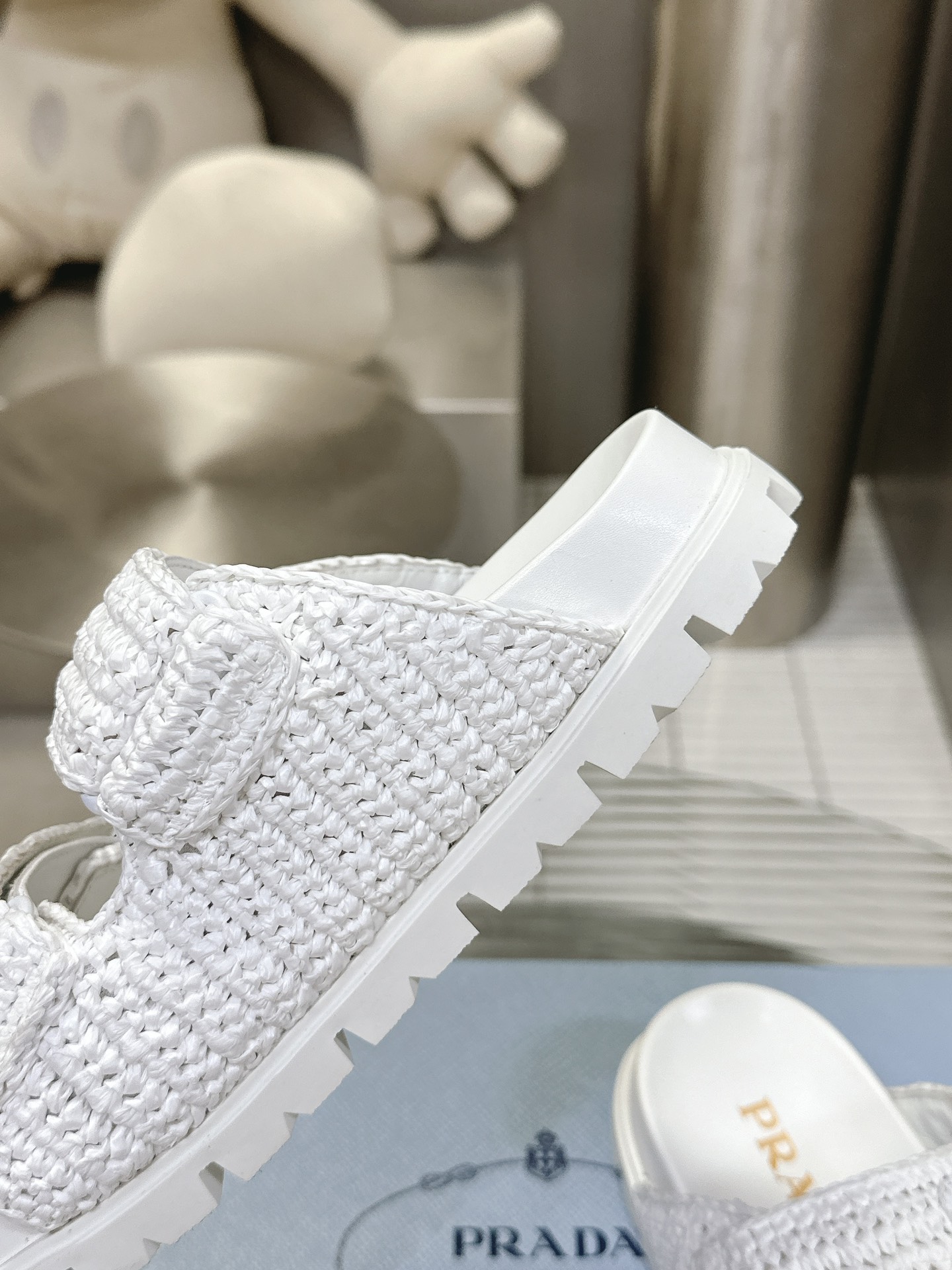 这款鞋子是AAAAA 1:1 质量 (非常棒). 使用了和原版一模一样的材料. 商标部分也保持了和普拉达/Prada一样. 图片拍摄是实物鞋子拍摄, 您所收到的实物保证和我们图片一模一样.