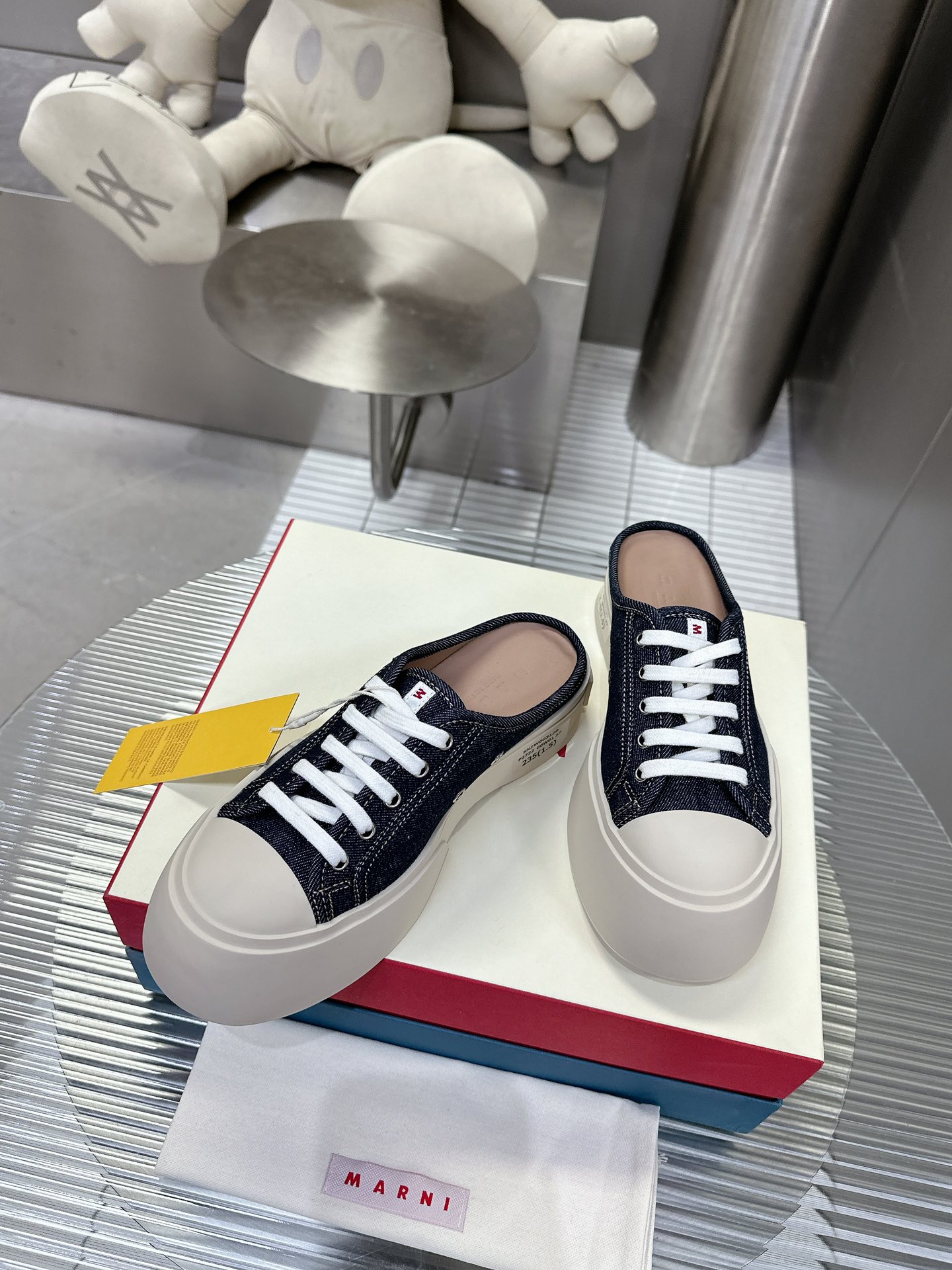 这款鞋子是AAAAA 1:1 质量 (非常棒). 使用了和原版一模一样的材料. 商标部分也保持了和马尔尼/Marni一样. 图片拍摄是实物鞋子拍摄, 您所收到的实物保证和我们图片一模一样.