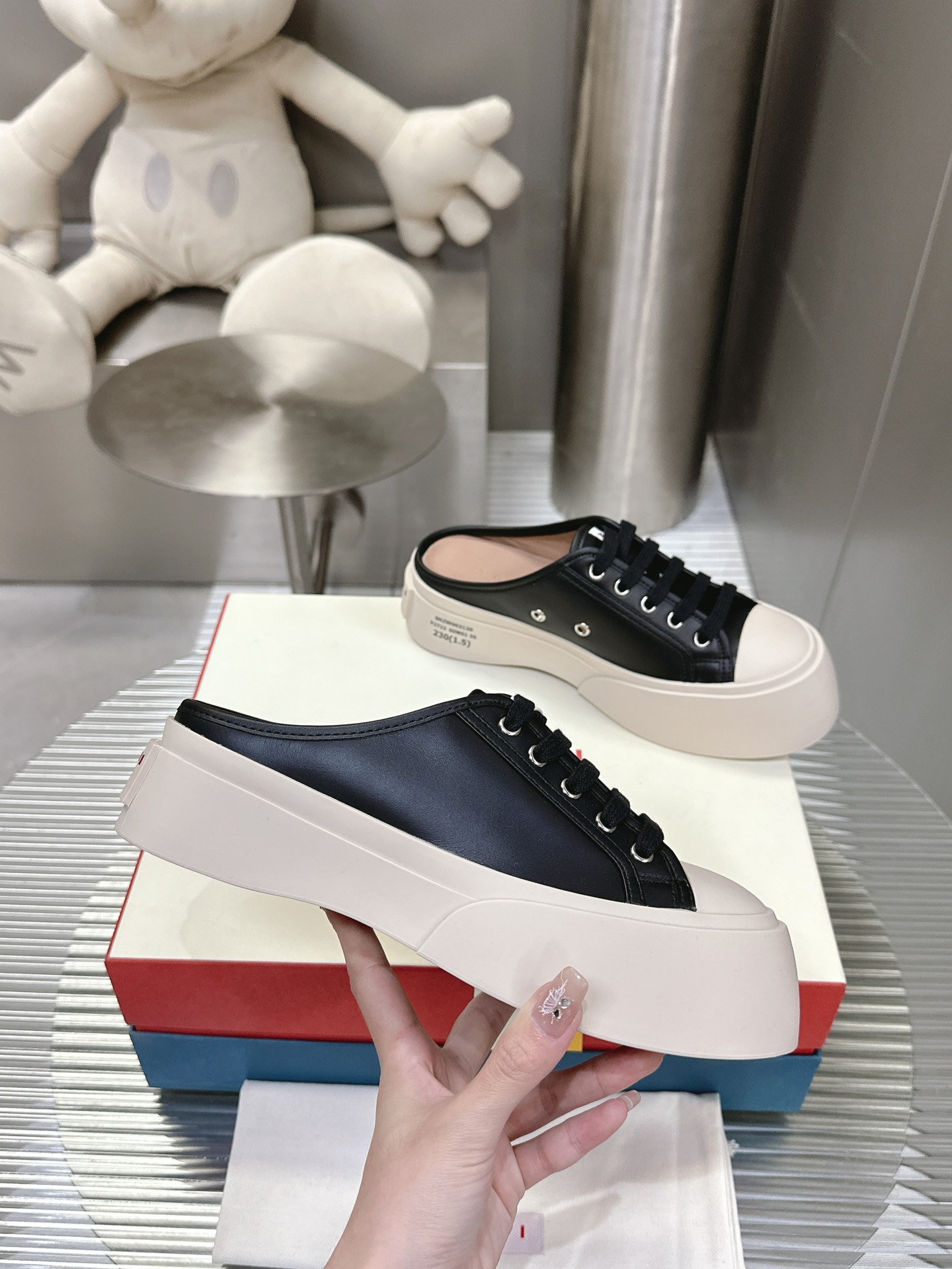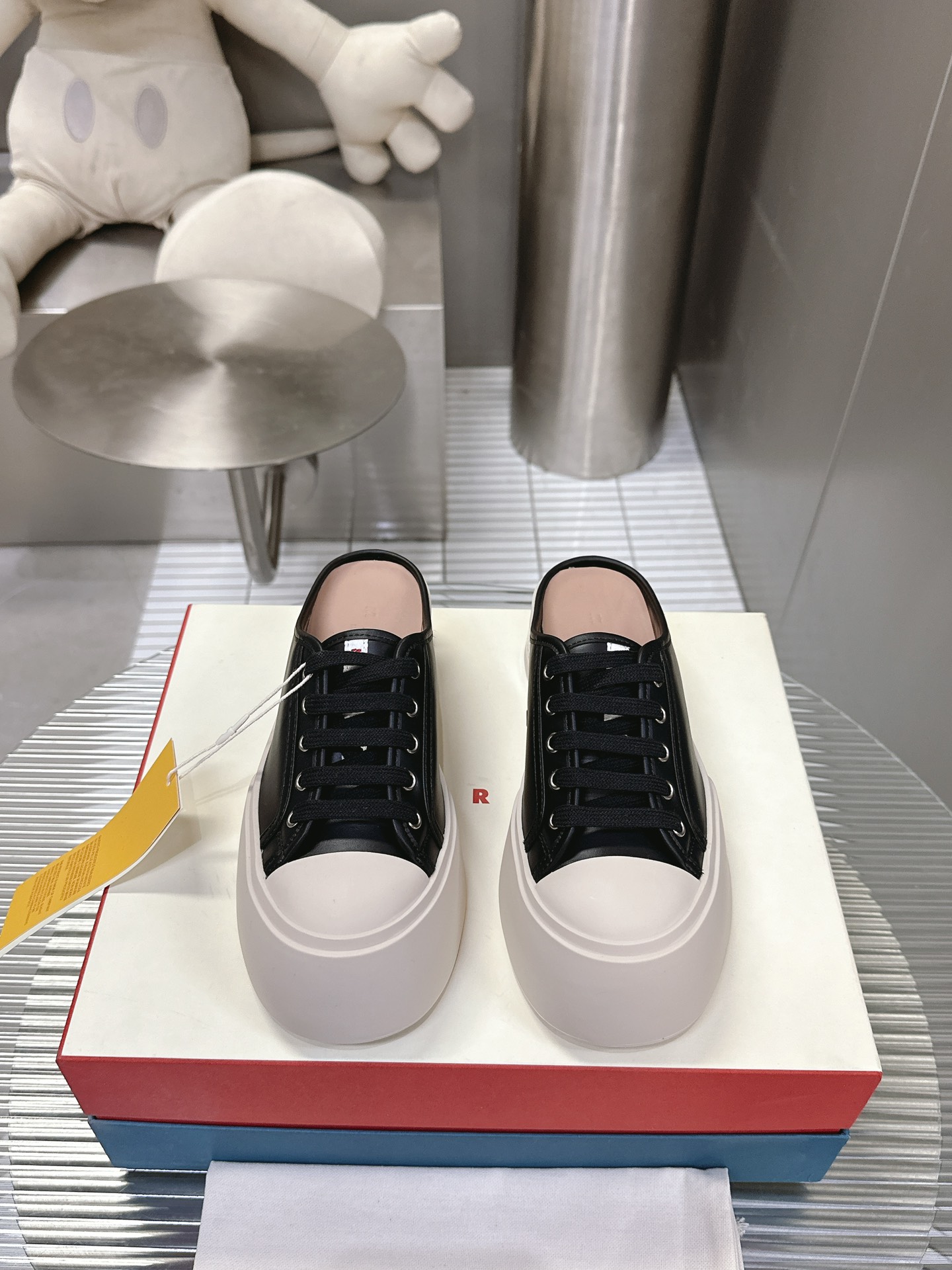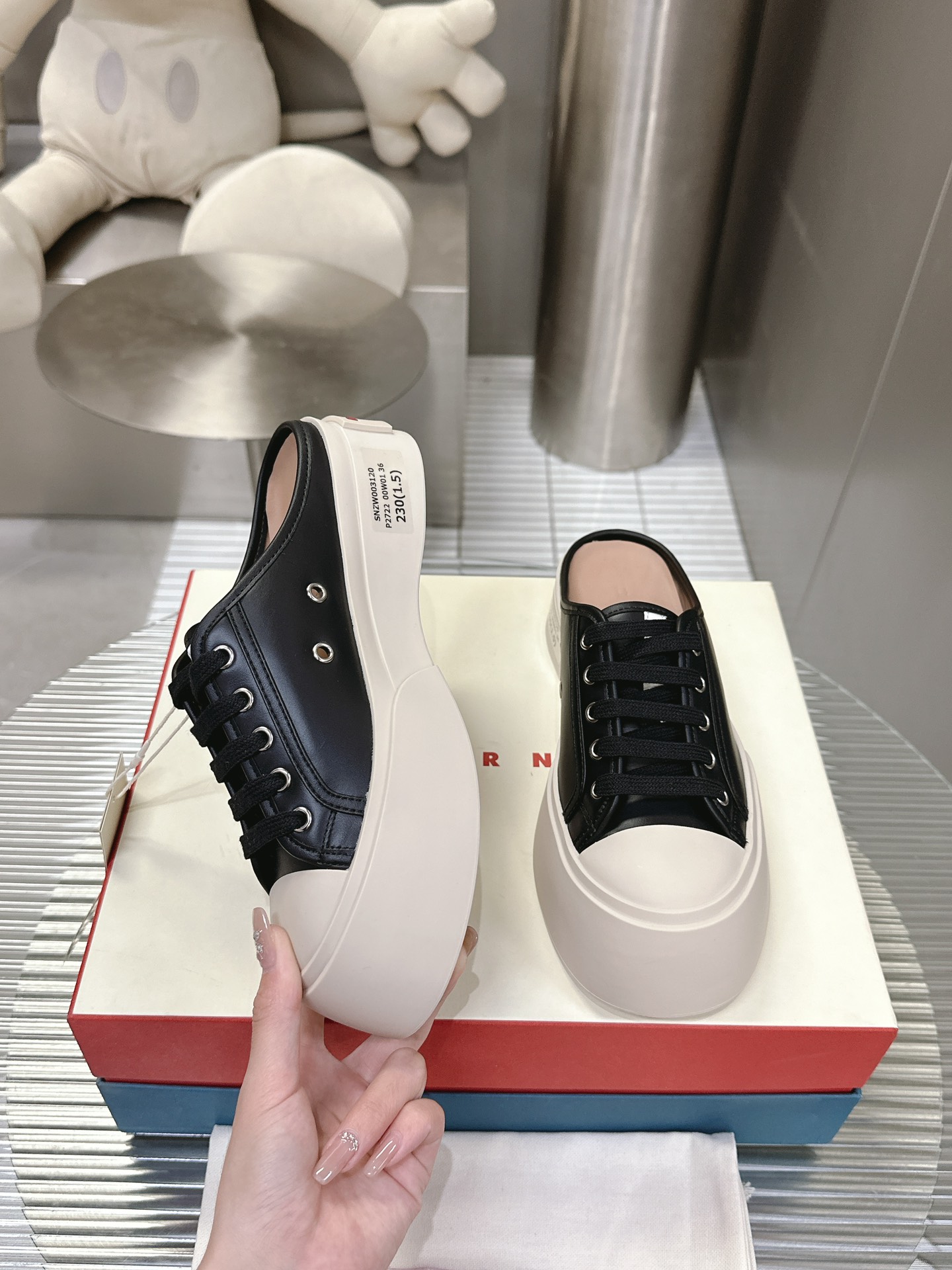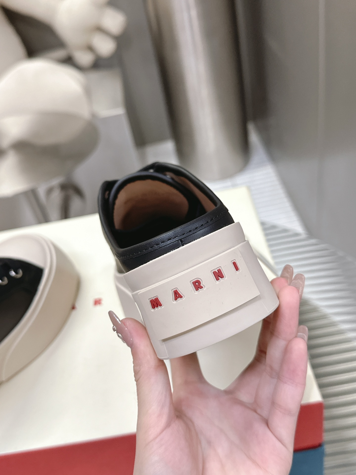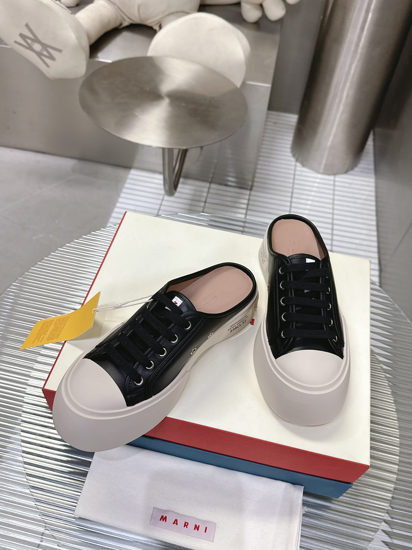 这款鞋子是AAAAA 1:1 质量 (非常棒). 使用了和原版一模一样的材料. 商标部分也保持了和马尔尼/Marni一样. 图片拍摄是实物鞋子拍摄, 您所收到的实物保证和我们图片一模一样.