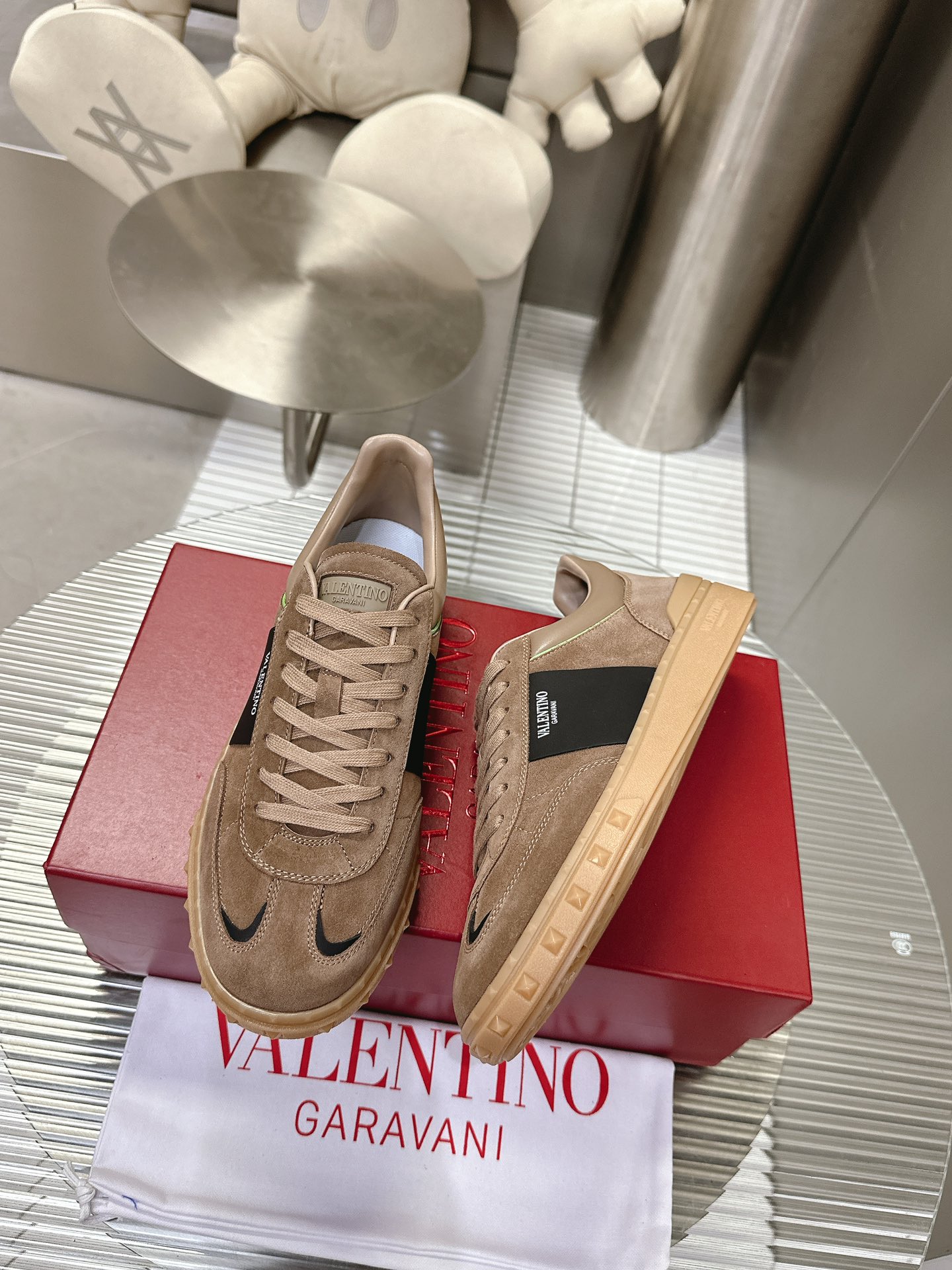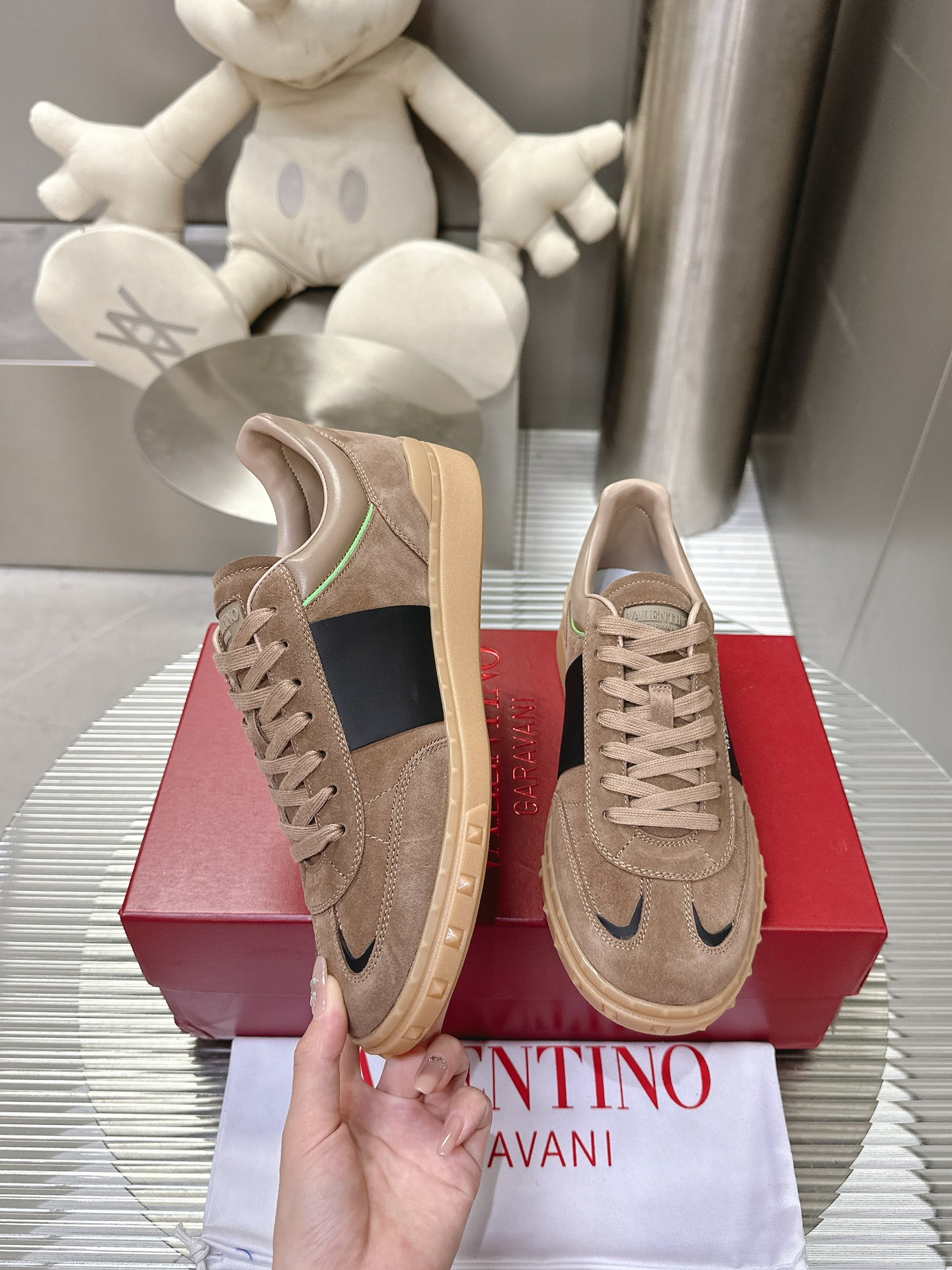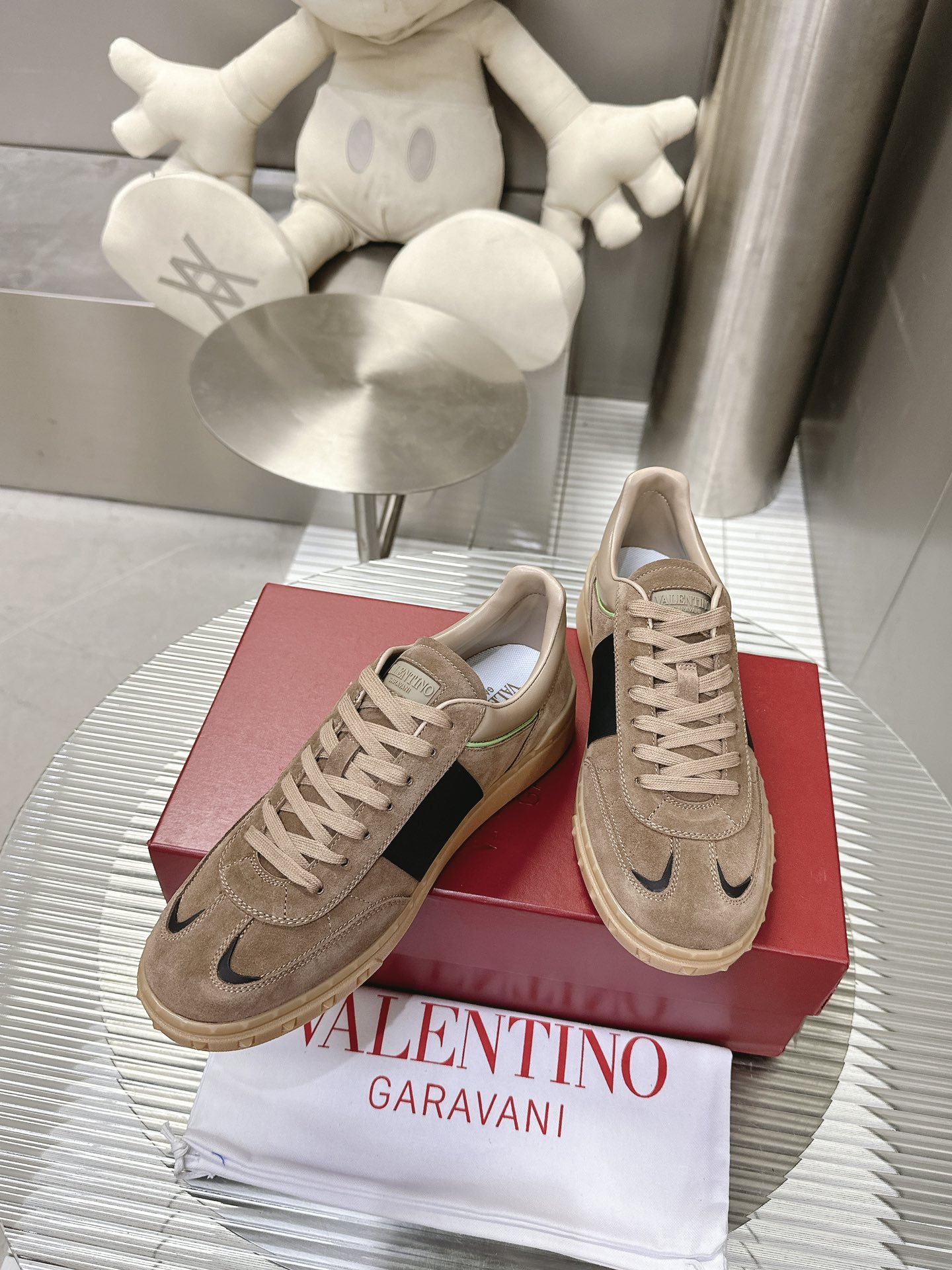 这款鞋子是AAAAA 1:1 质量 (非常棒). 使用了和原版一模一样的材料. 商标部分也保持了和华伦天奴/Valentino一样. 图片拍摄是实物鞋子拍摄, 您所收到的实物保证和我们图片一模一样.