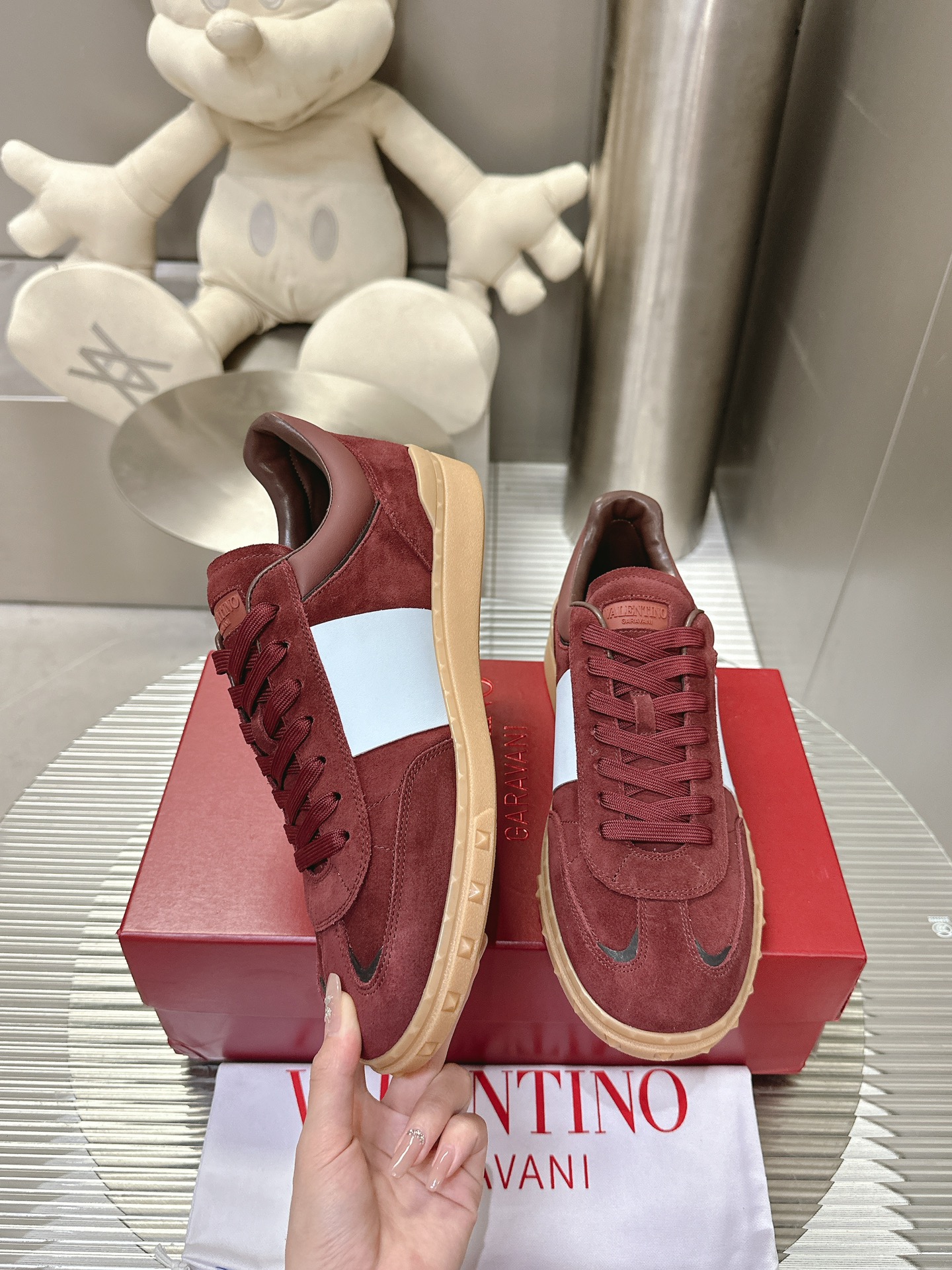 这款鞋子是AAAAA 1:1 质量 (非常棒). 使用了和原版一模一样的材料. 商标部分也保持了和华伦天奴/Valentino一样. 图片拍摄是实物鞋子拍摄, 您所收到的实物保证和我们图片一模一样.