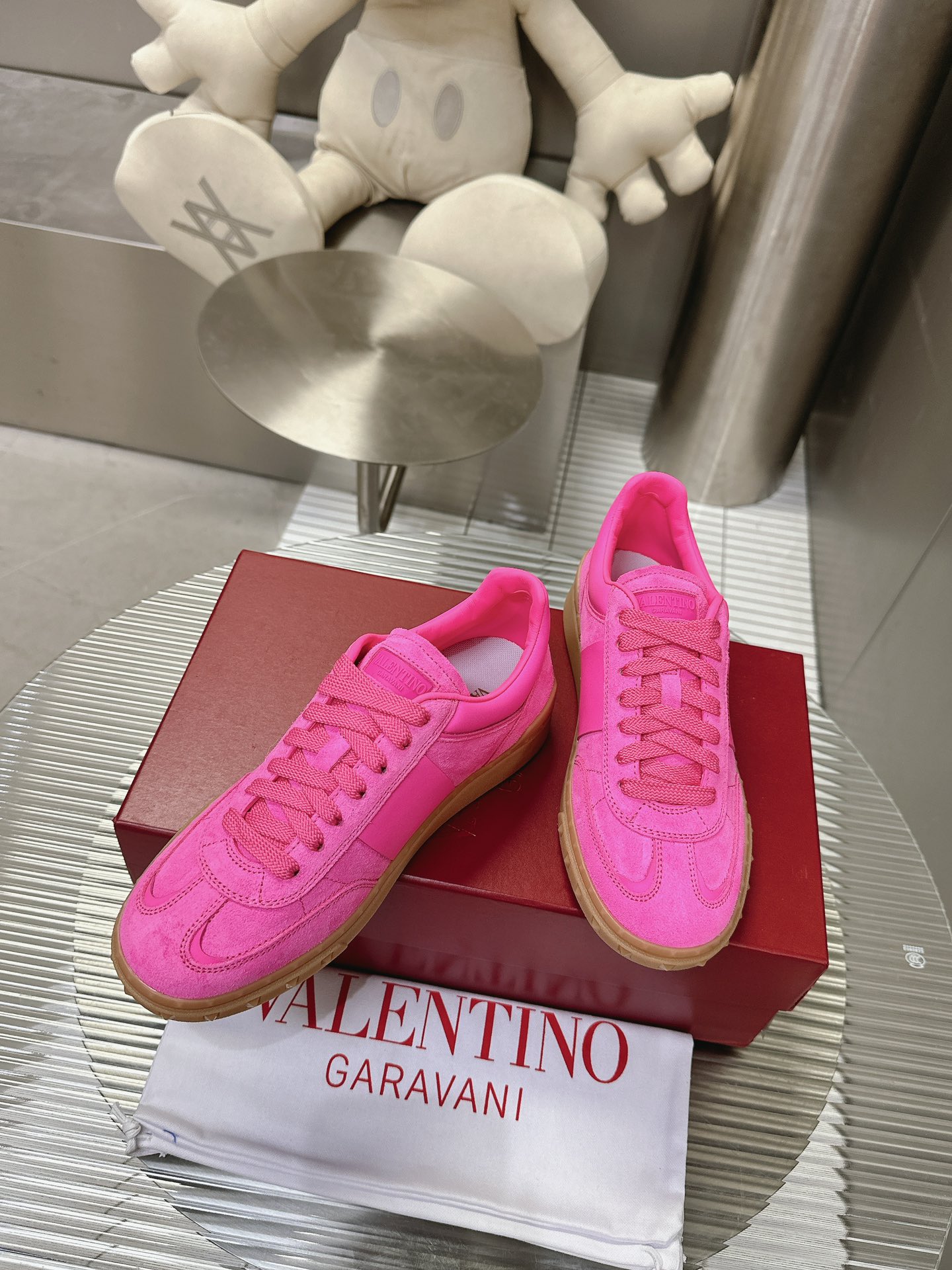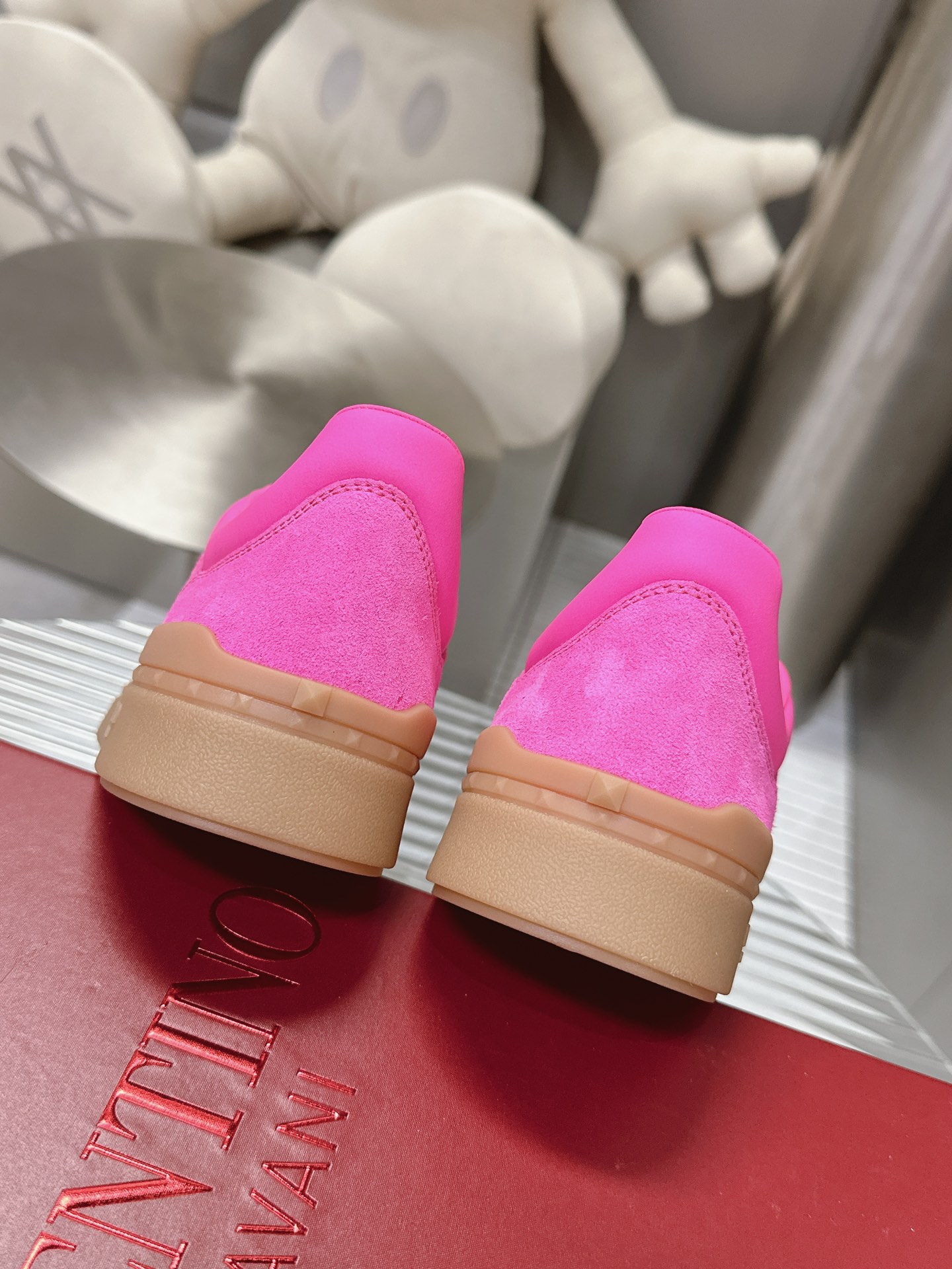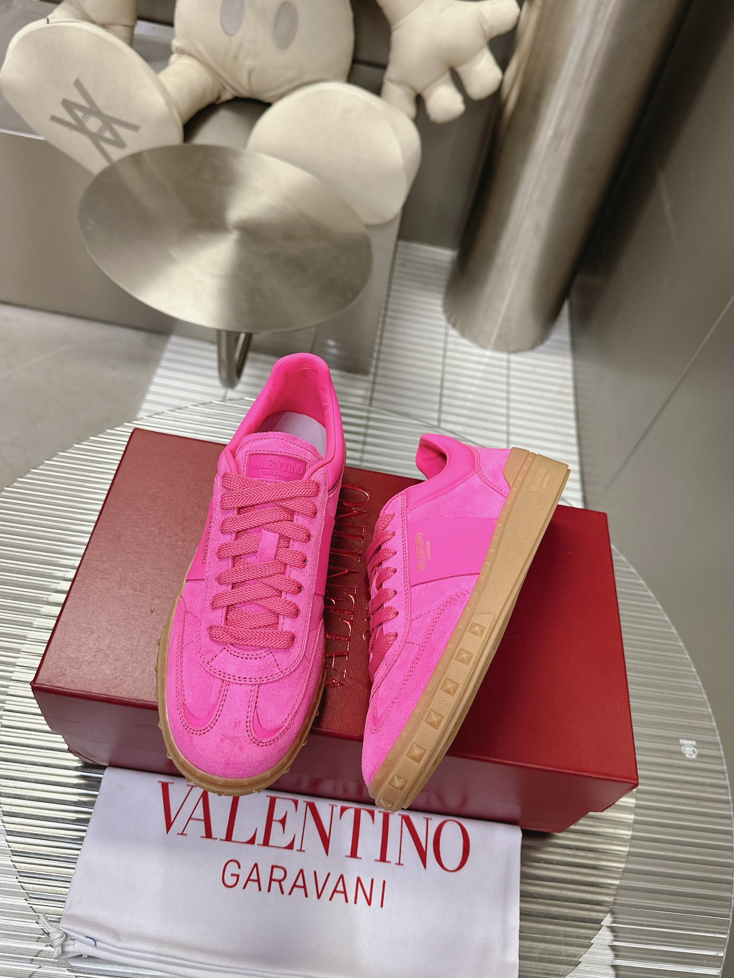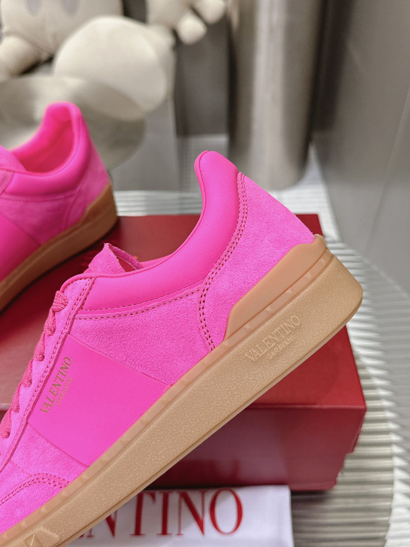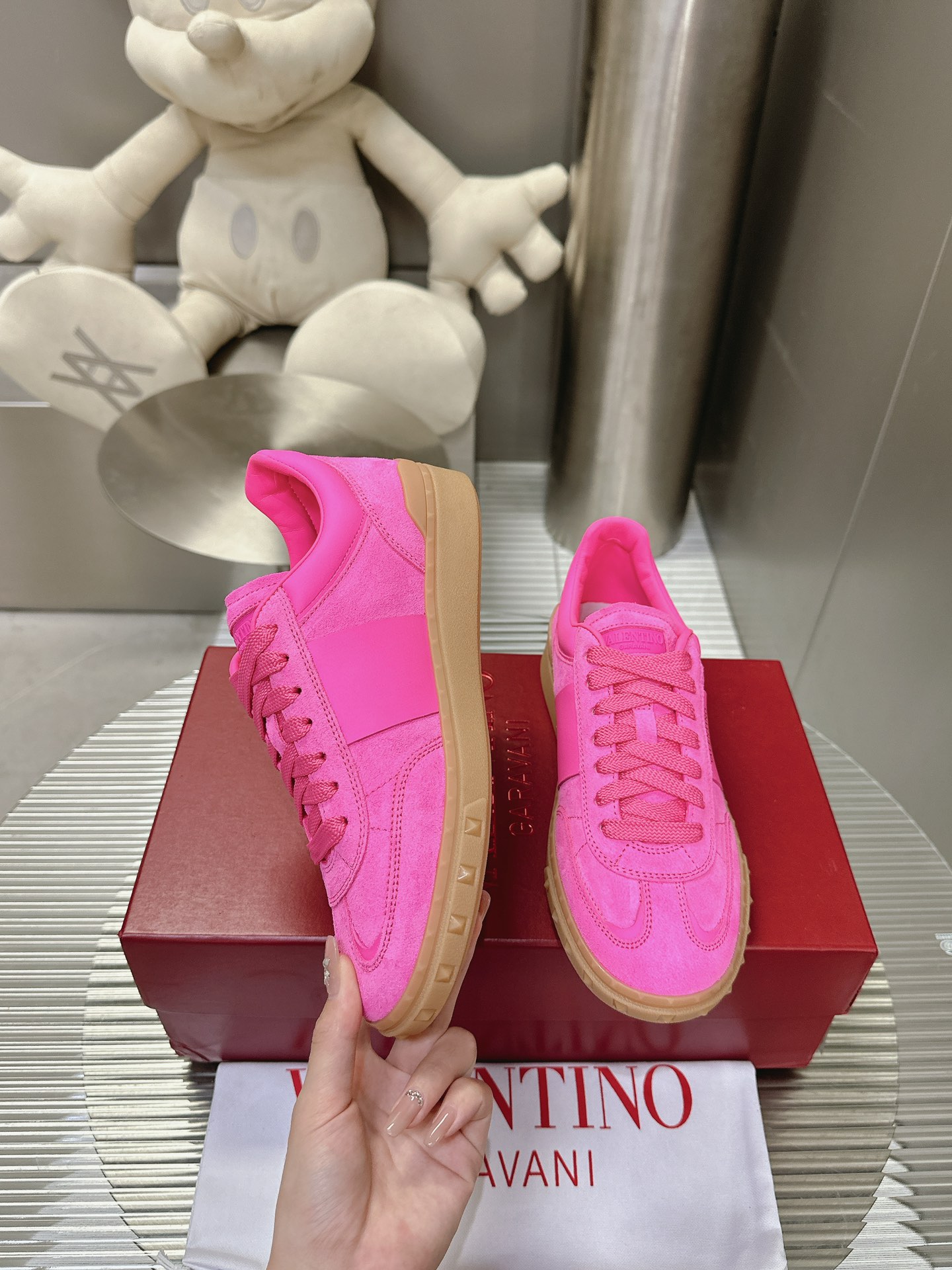 这款鞋子是AAAAA 1:1 质量 (非常棒). 使用了和原版一模一样的材料. 商标部分也保持了和华伦天奴/Valentino一样. 图片拍摄是实物鞋子拍摄, 您所收到的实物保证和我们图片一模一样.