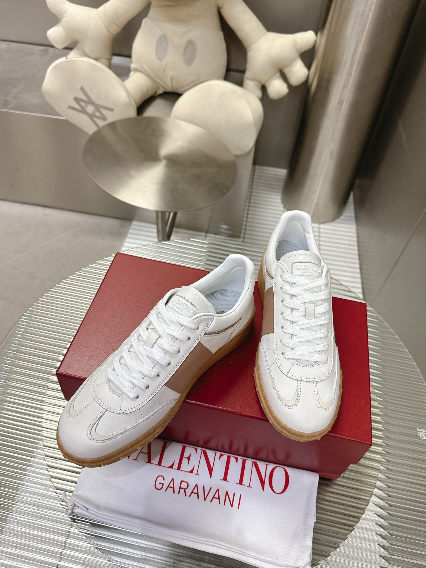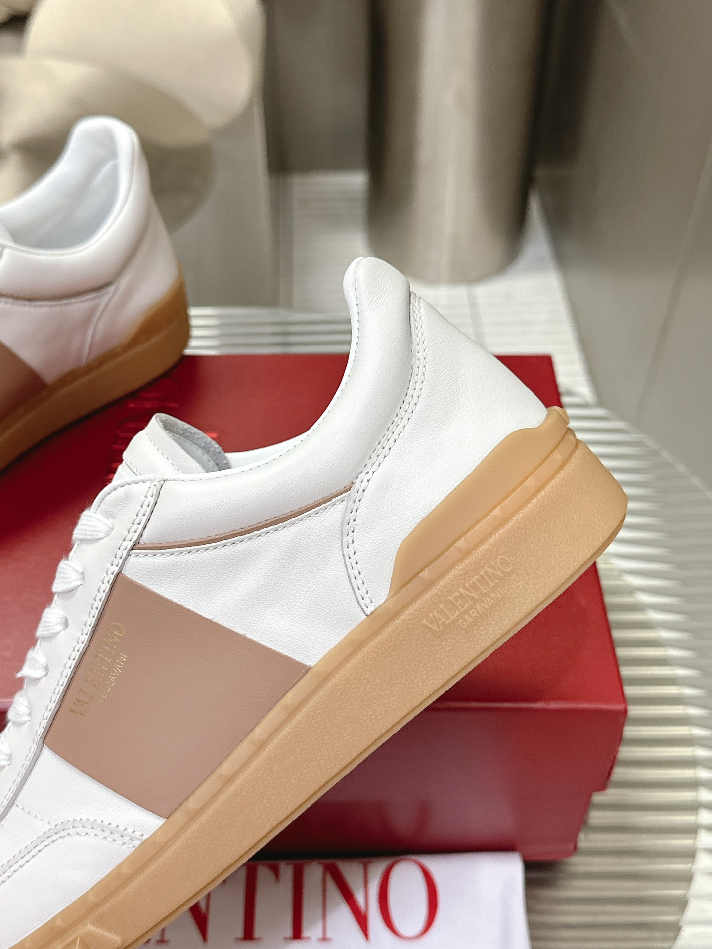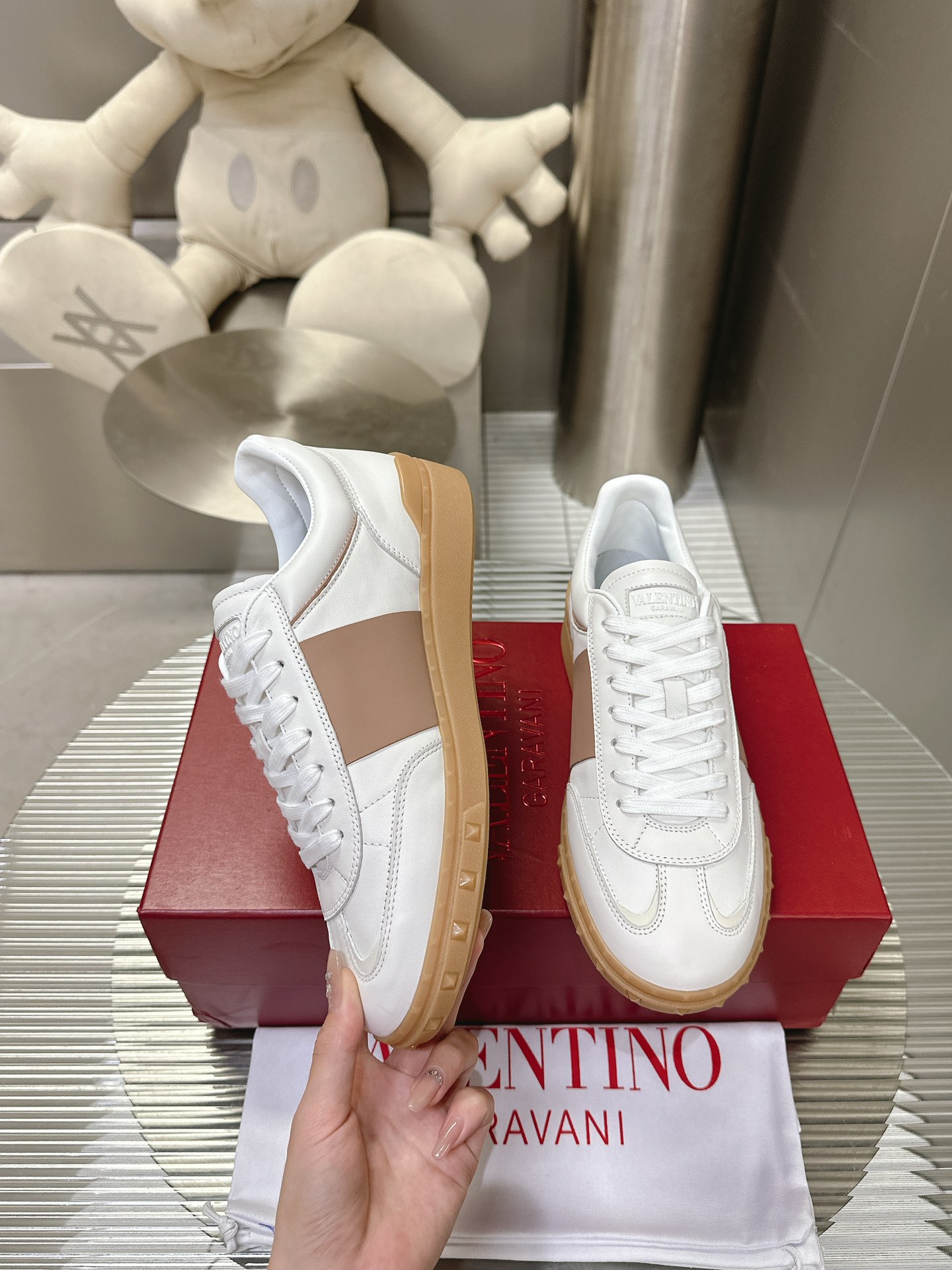 这款鞋子是AAAAA 1:1 质量 (非常棒). 使用了和原版一模一样的材料. 商标部分也保持了和华伦天奴/Valentino一样. 图片拍摄是实物鞋子拍摄, 您所收到的实物保证和我们图片一模一样.