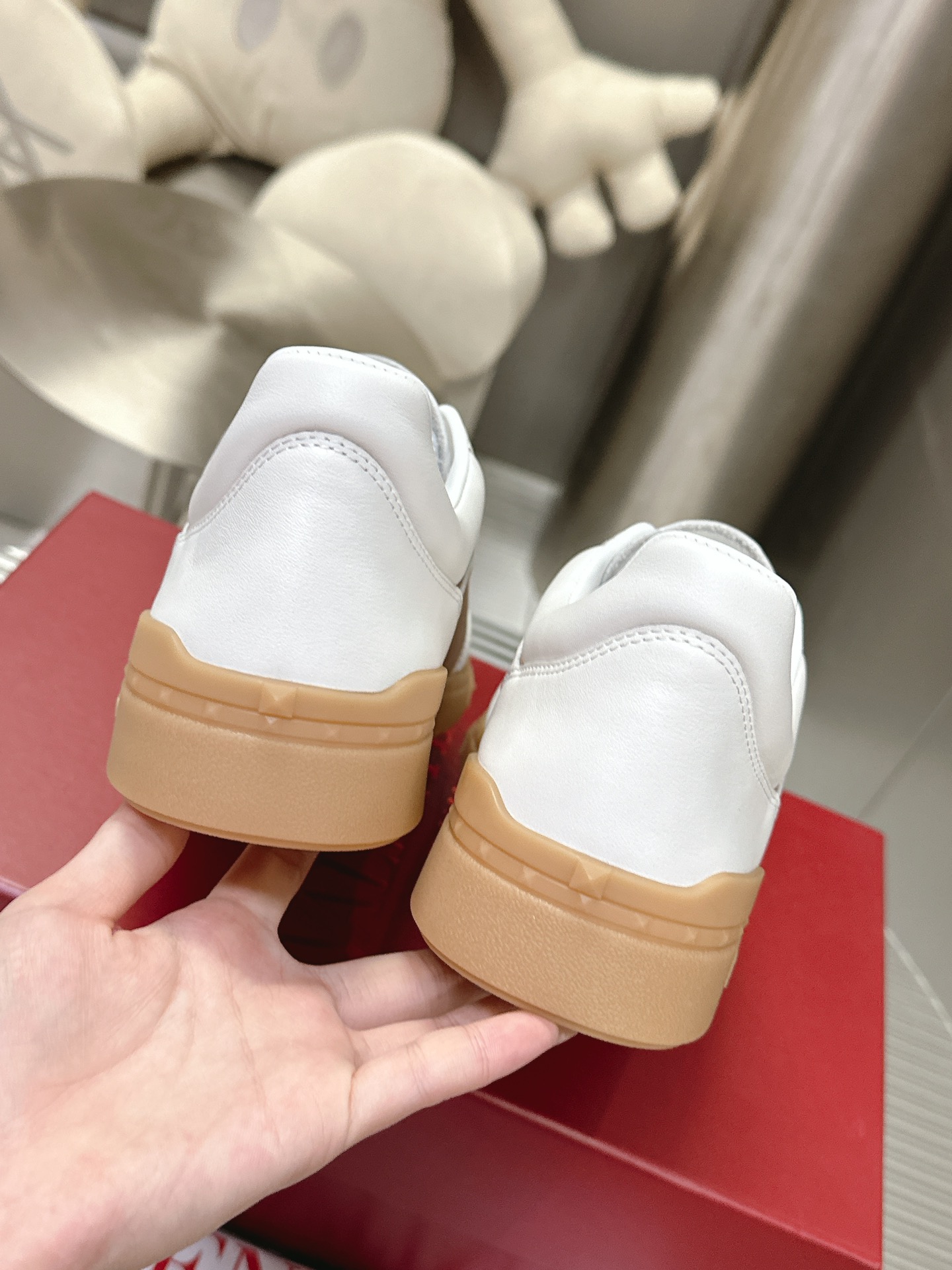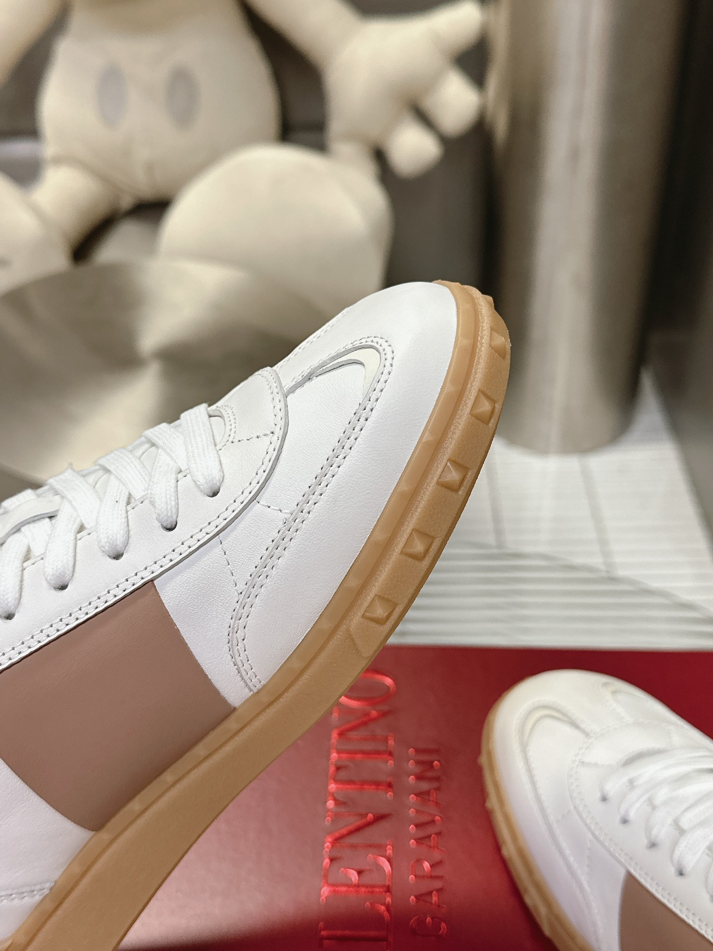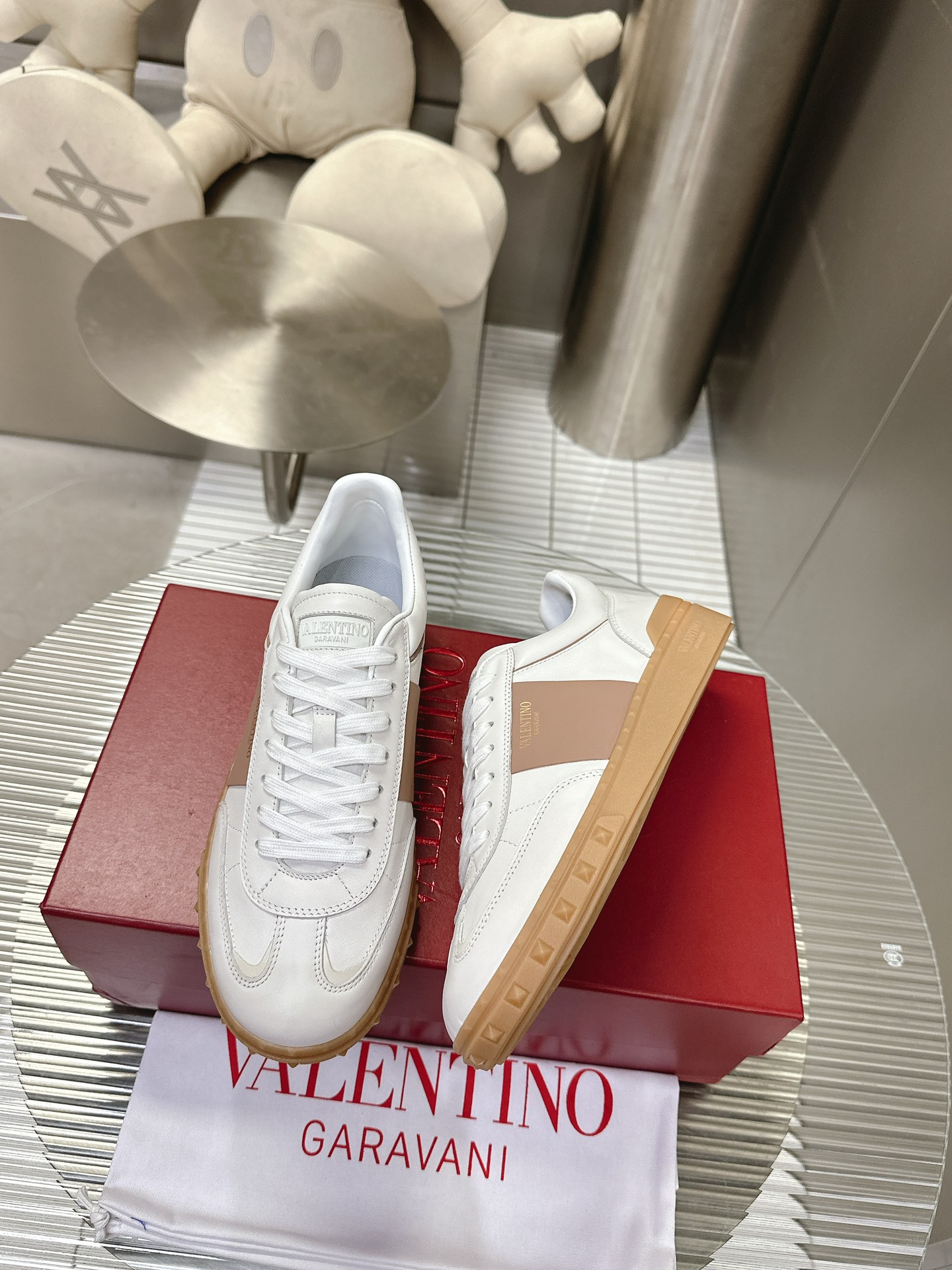 这款鞋子是AAAAA 1:1 质量 (非常棒). 使用了和原版一模一样的材料. 商标部分也保持了和华伦天奴/Valentino一样. 图片拍摄是实物鞋子拍摄, 您所收到的实物保证和我们图片一模一样.