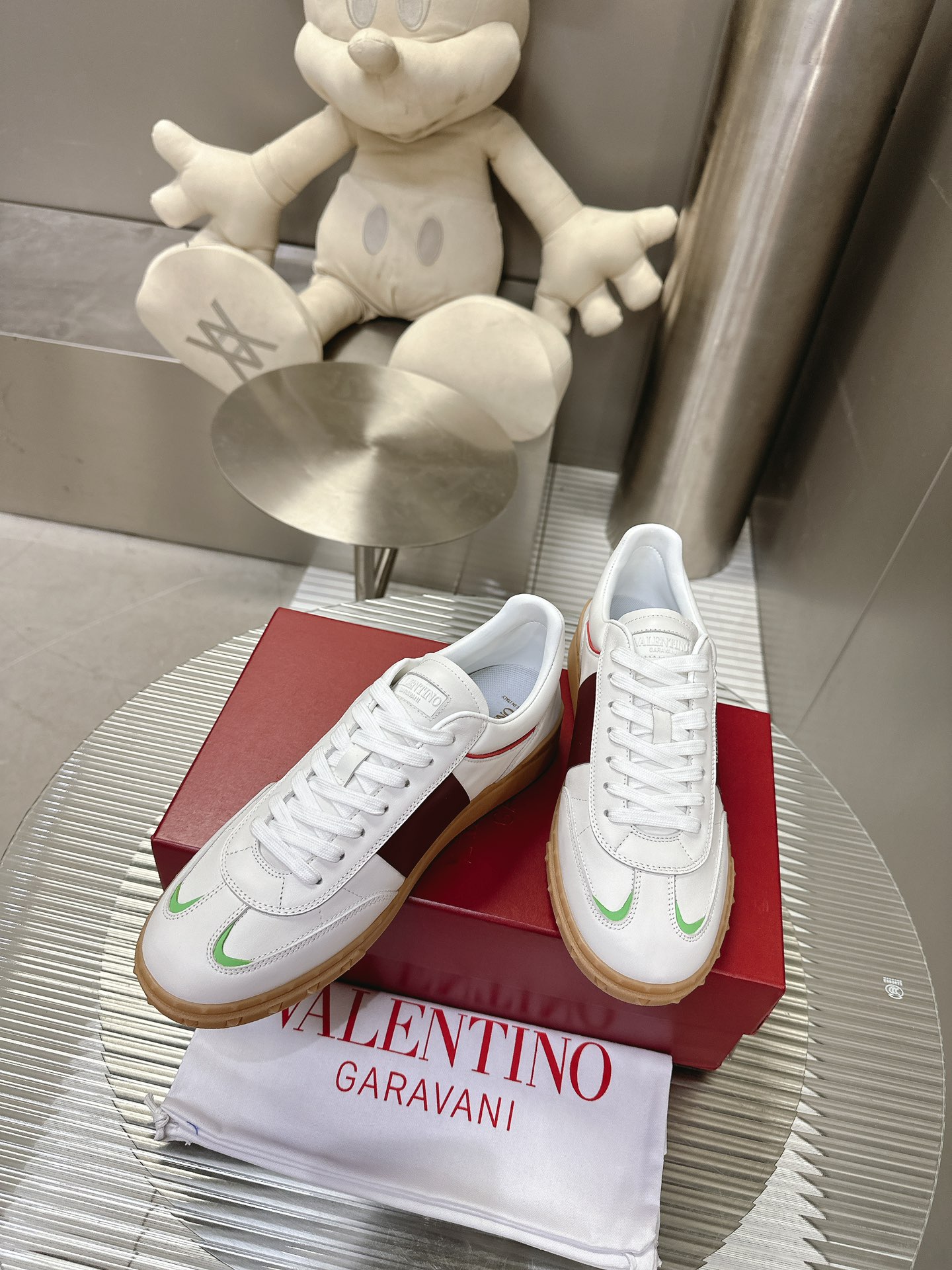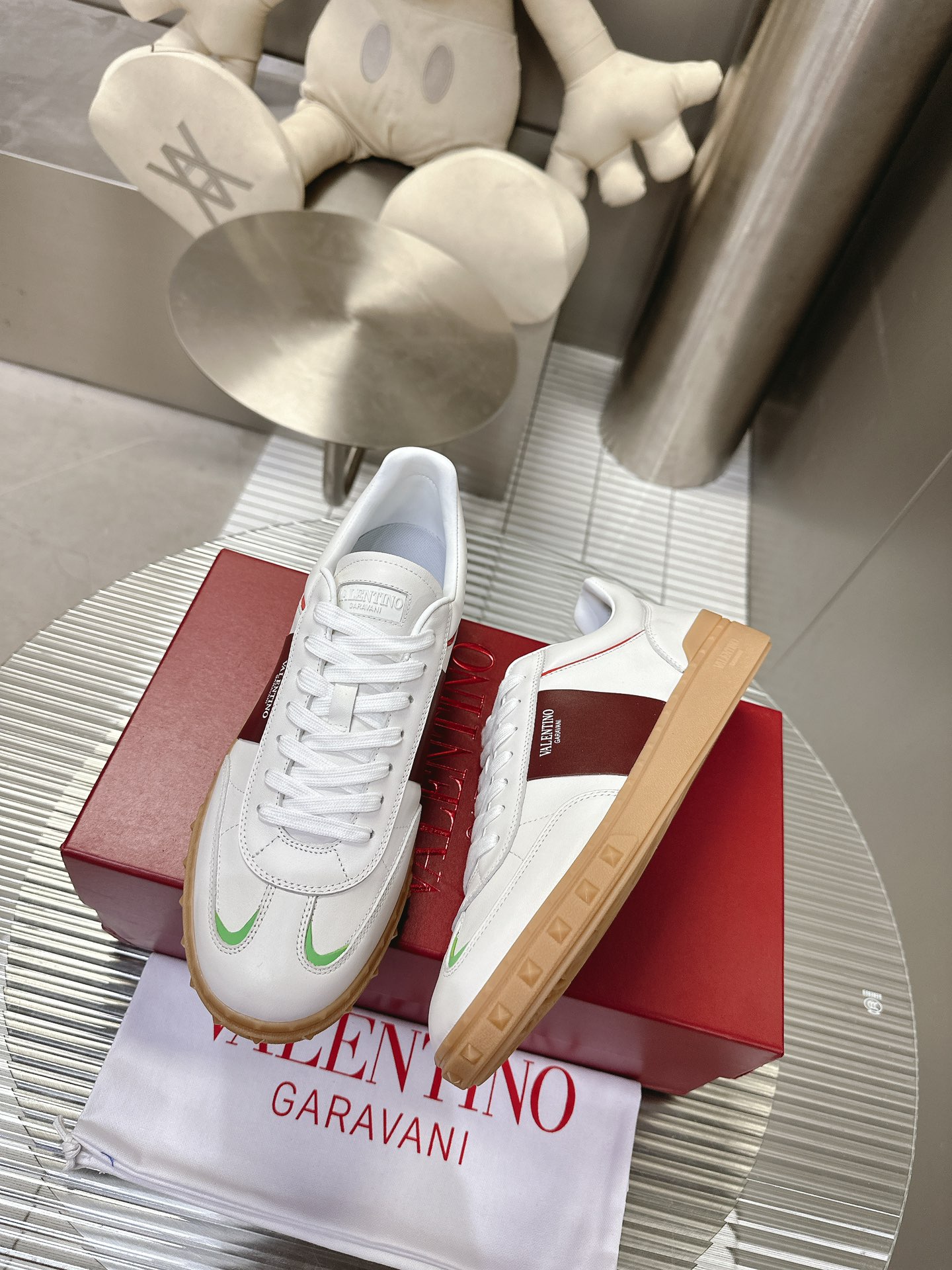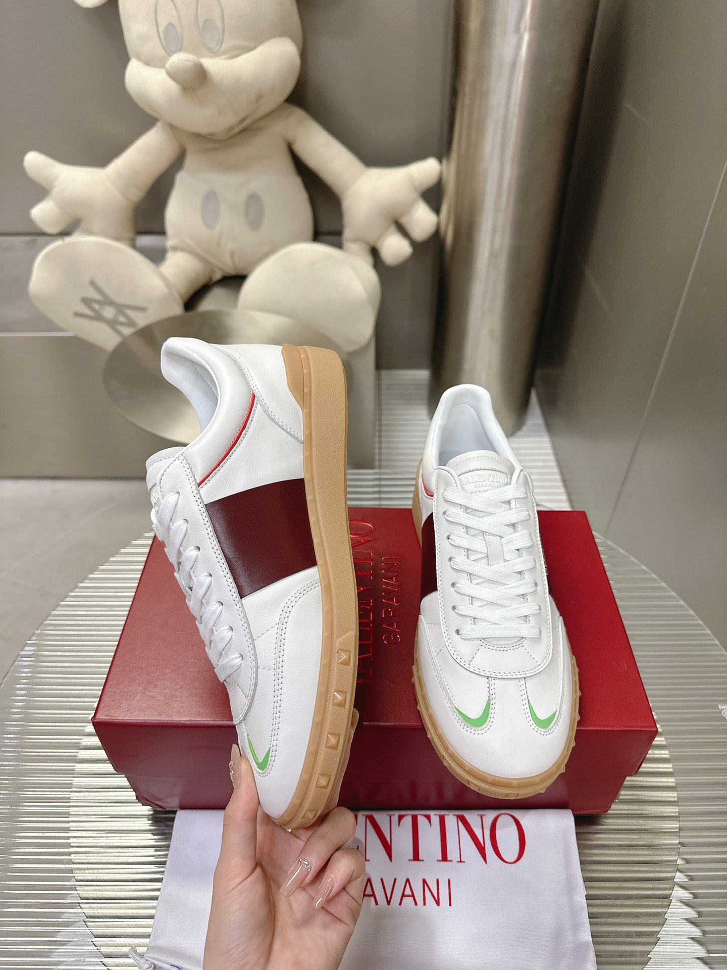 这款鞋子是AAAAA 1:1 质量 (非常棒). 使用了和原版一模一样的材料. 商标部分也保持了和华伦天奴/Valentino一样. 图片拍摄是实物鞋子拍摄, 您所收到的实物保证和我们图片一模一样.