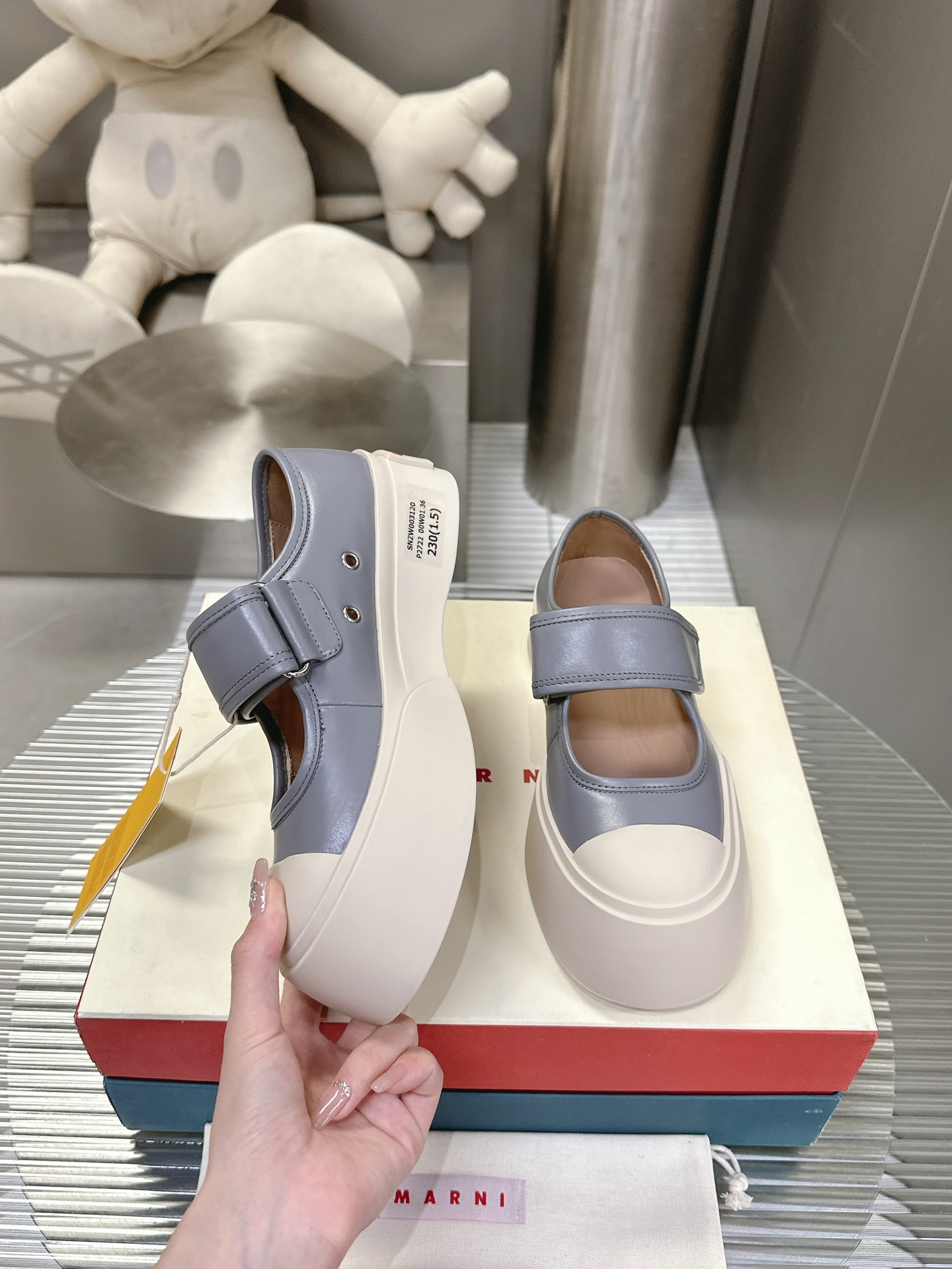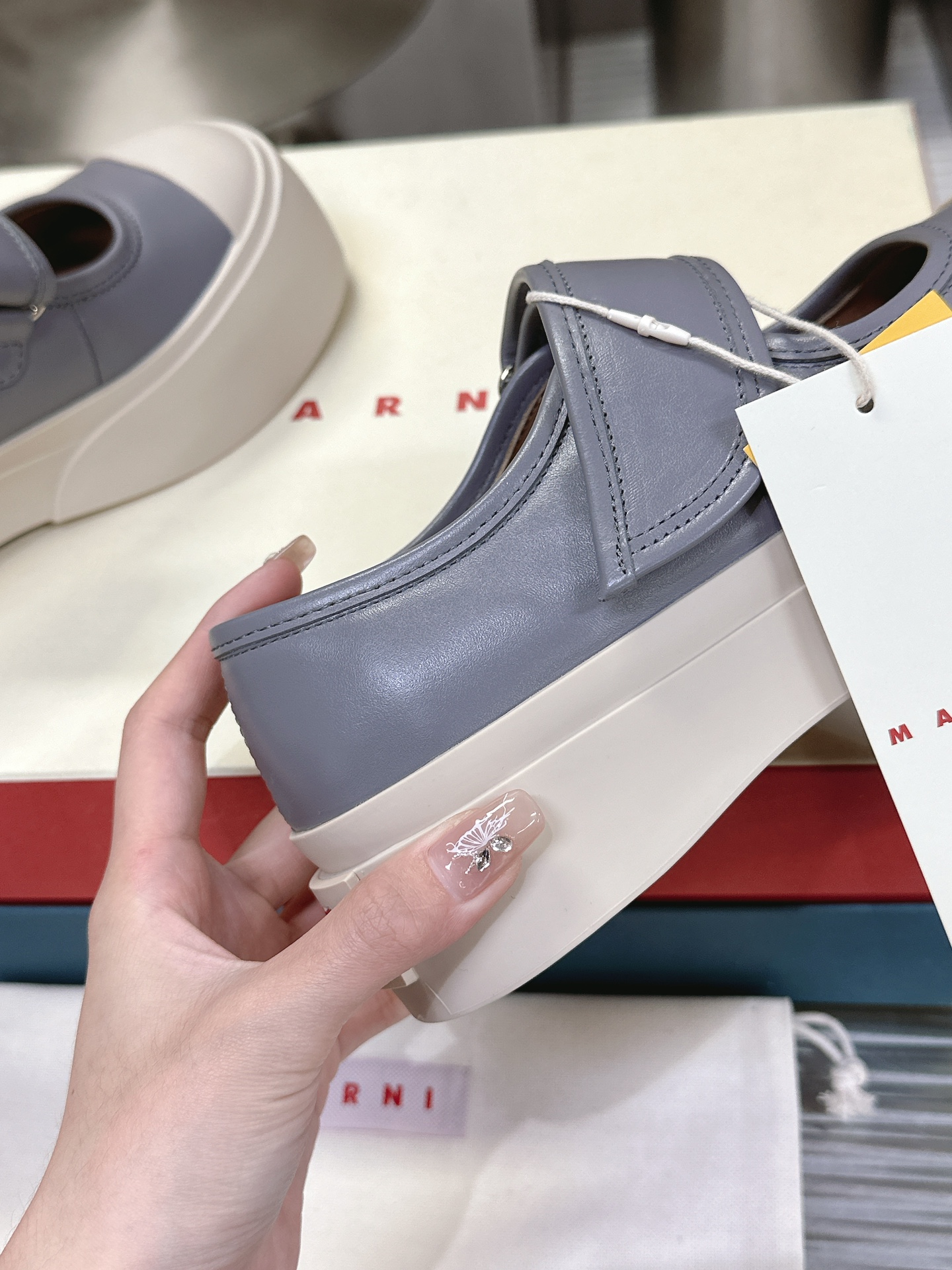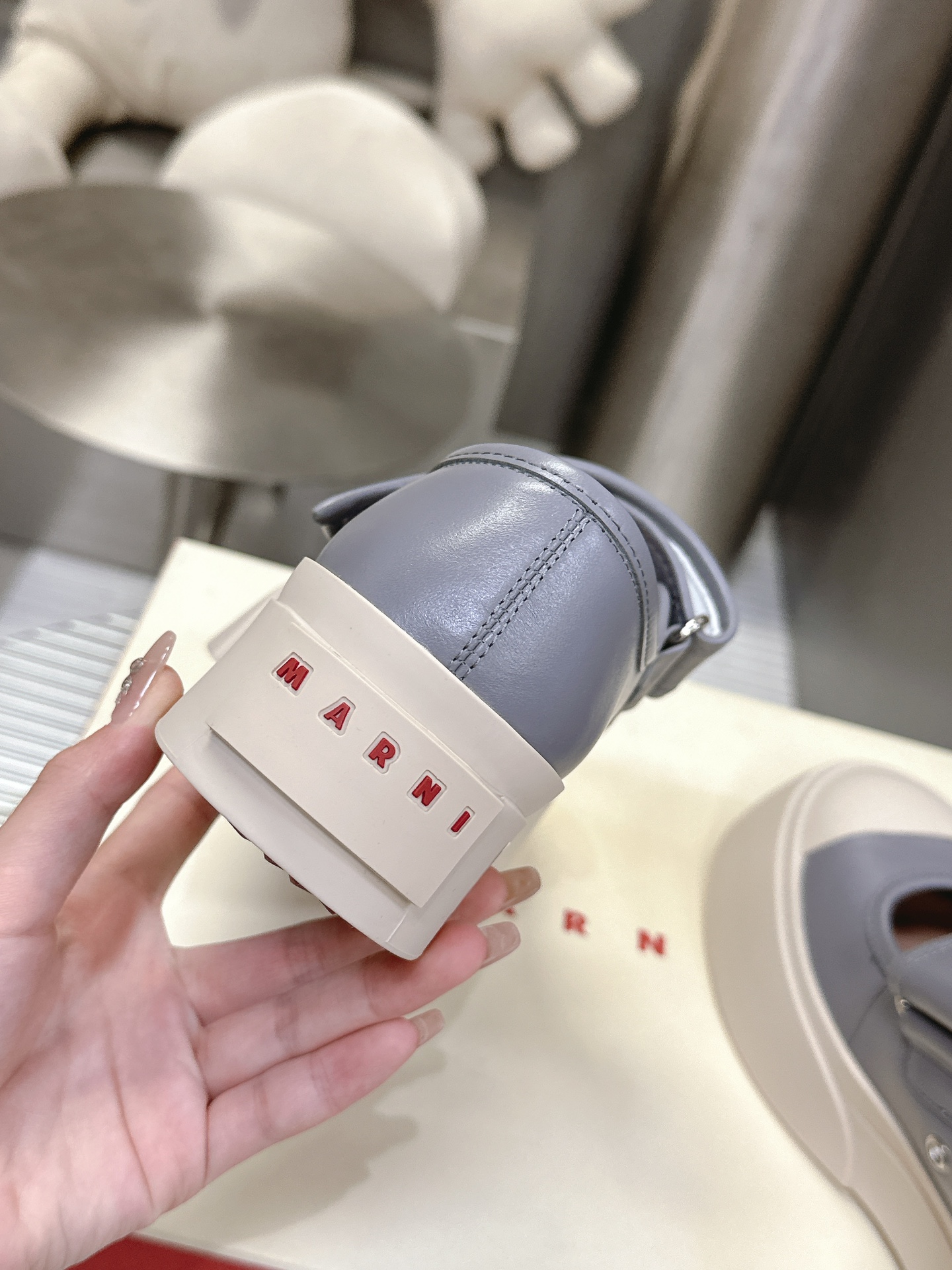 这款鞋子是AAAAA 1:1 质量 (非常棒). 使用了和原版一模一样的材料. 商标部分也保持了和马尔尼/Marni一样. 图片拍摄是实物鞋子拍摄, 您所收到的实物保证和我们图片一模一样.