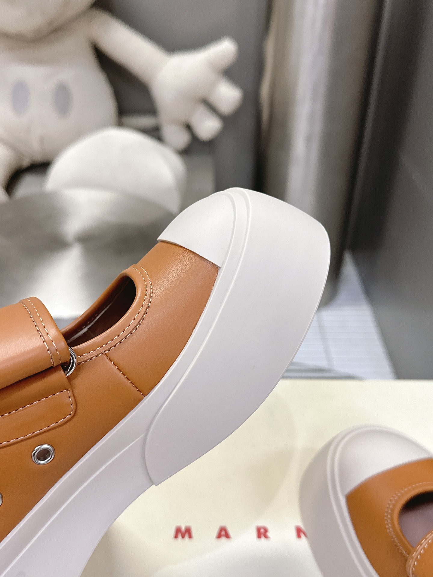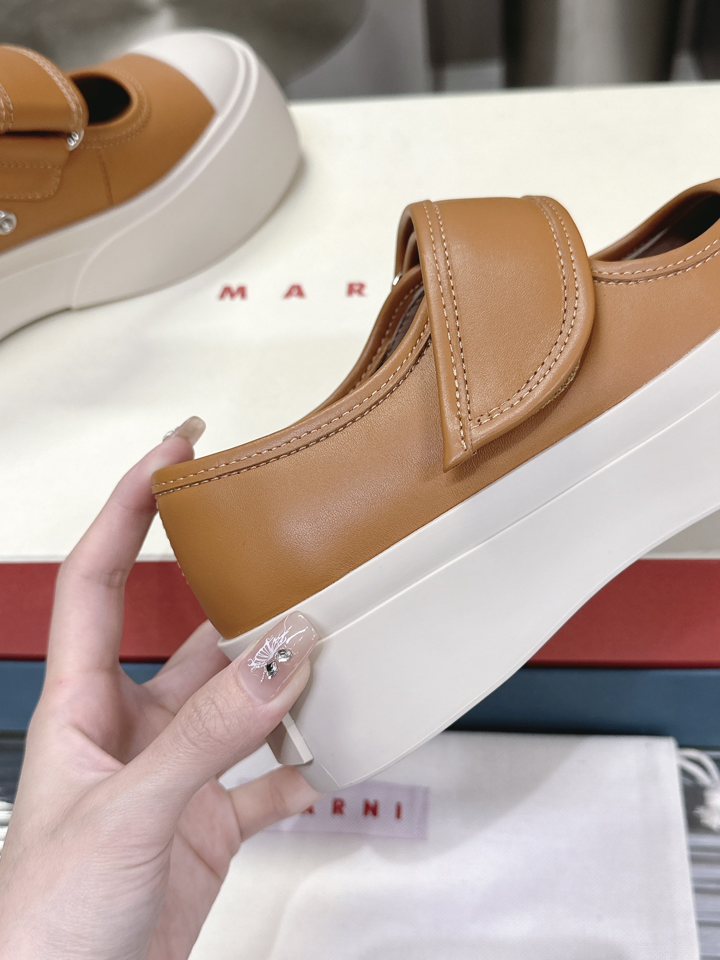 这款鞋子是AAAAA 1:1 质量 (非常棒). 使用了和原版一模一样的材料. 商标部分也保持了和马尔尼/Marni一样. 图片拍摄是实物鞋子拍摄, 您所收到的实物保证和我们图片一模一样.
