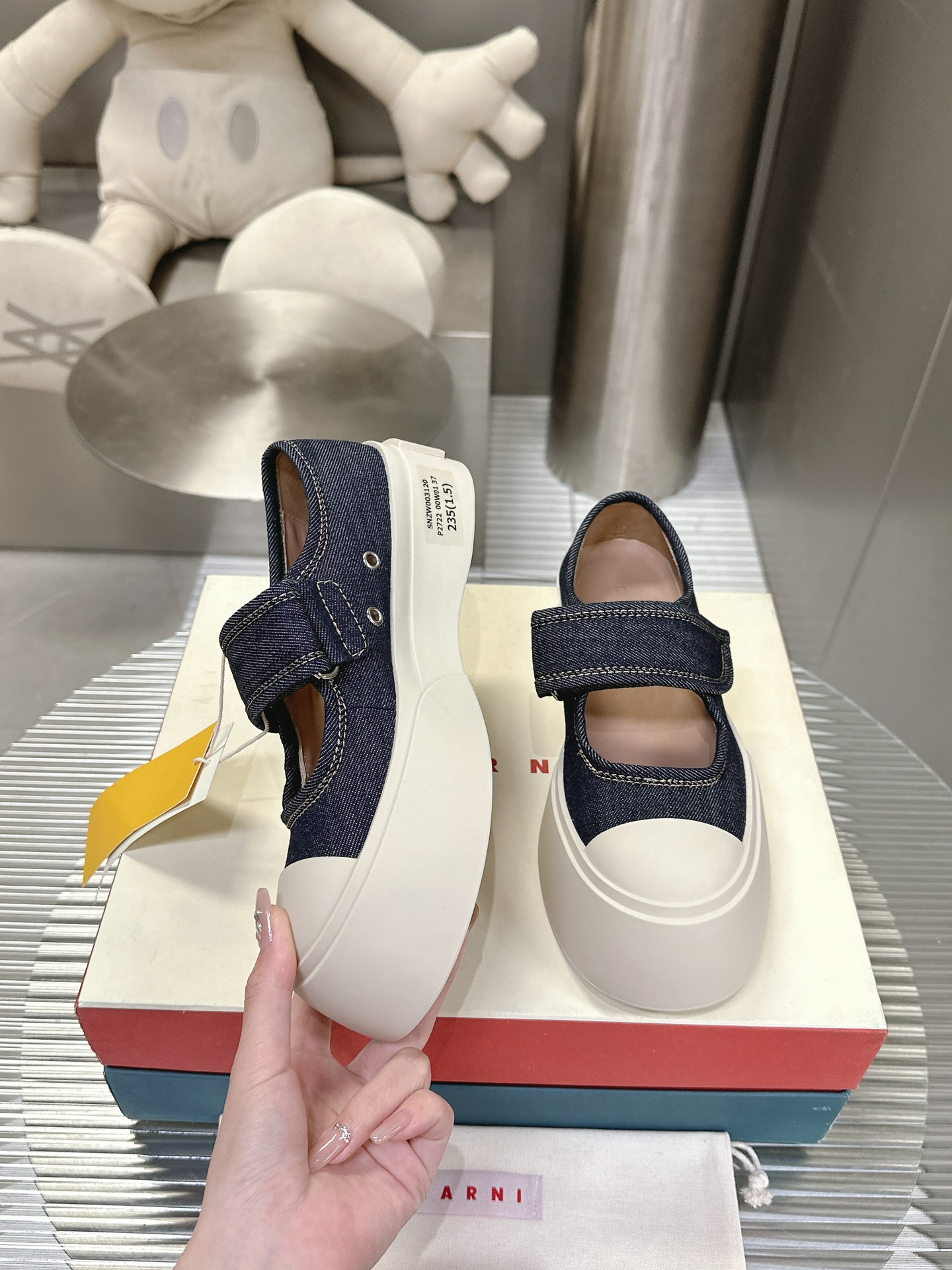 这款鞋子是AAAAA 1:1 质量 (非常棒). 使用了和原版一模一样的材料. 商标部分也保持了和马尔尼/Marni一样. 图片拍摄是实物鞋子拍摄, 您所收到的实物保证和我们图片一模一样.