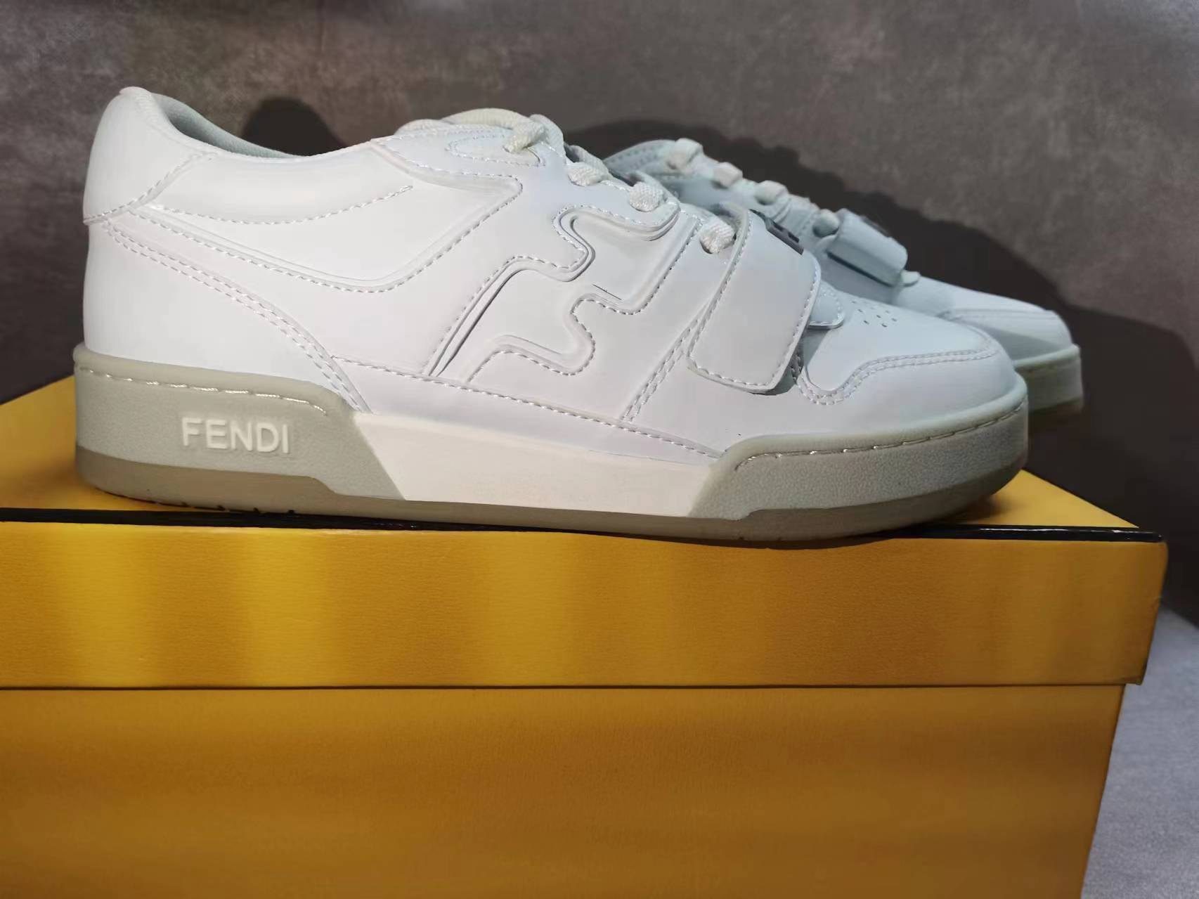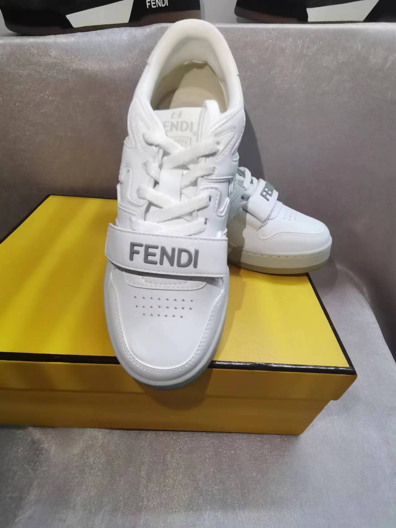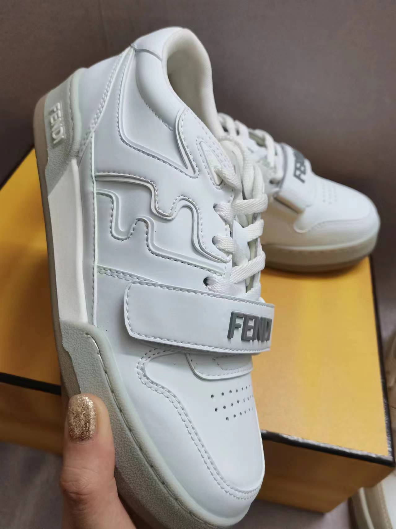 这款鞋子是AAAAA 1:1 质量 (非常棒). 使用了和原版一模一样的材料. 商标部分也保持了和芬迪/Fendi一样. 图片拍摄是实物鞋子拍摄, 您所收到的实物保证和我们图片一模一样.