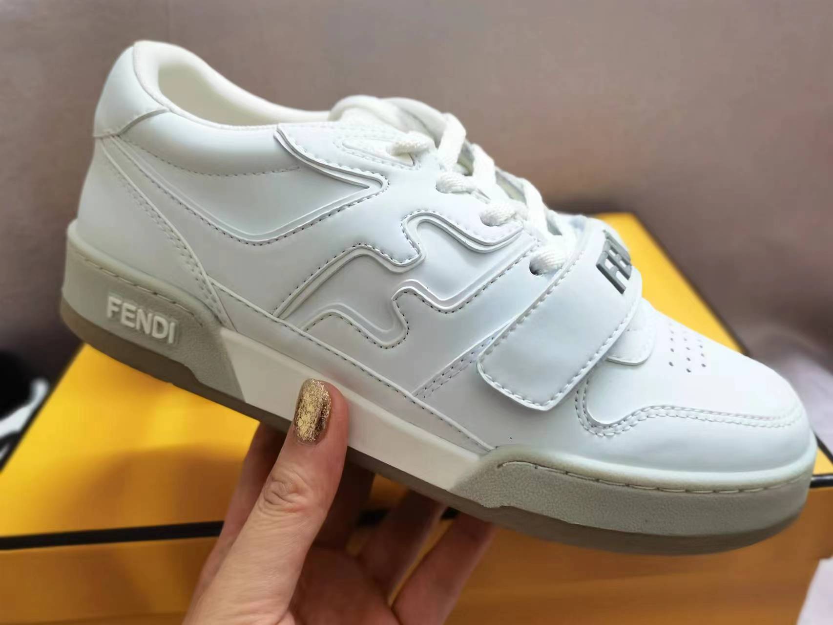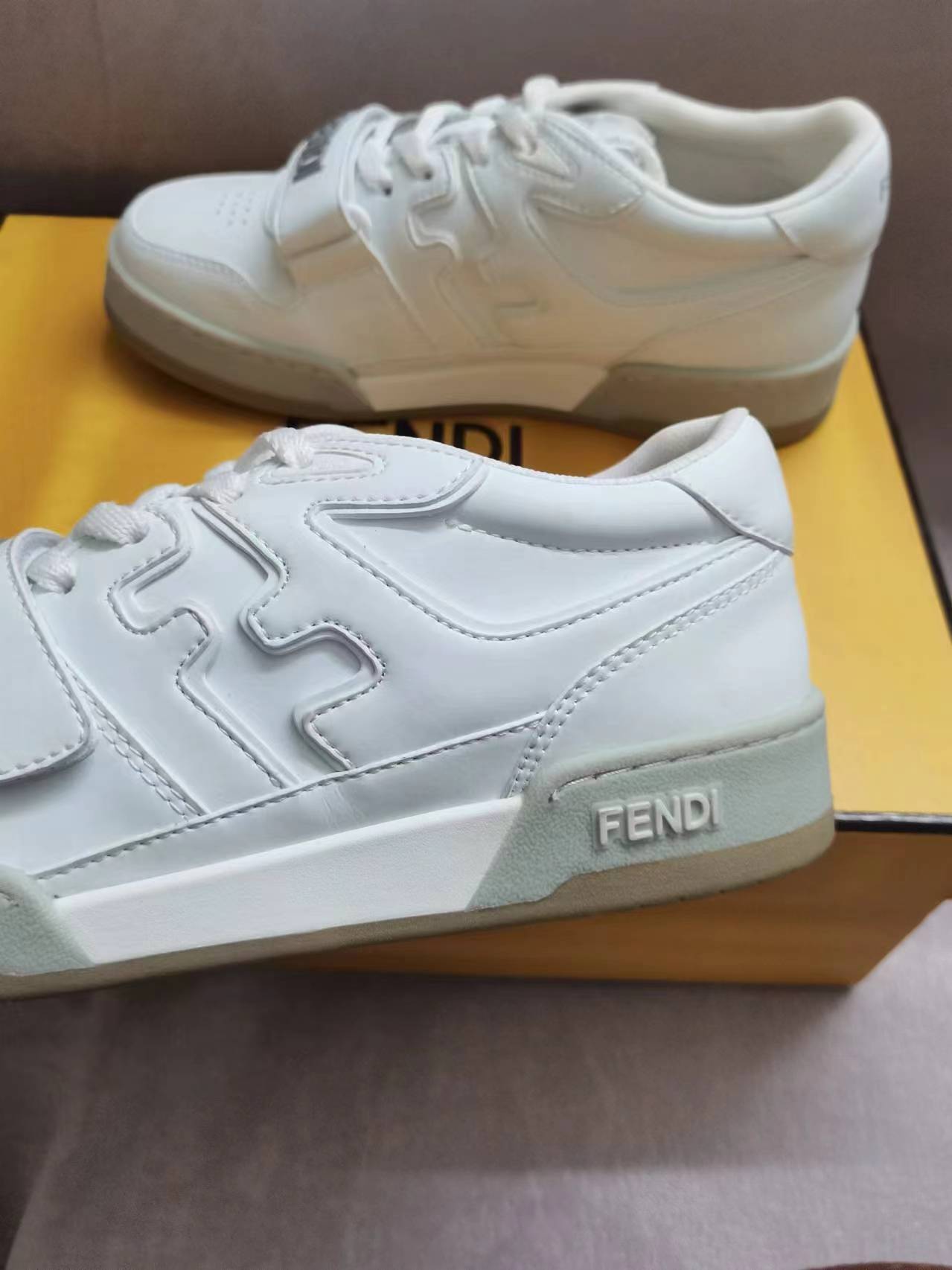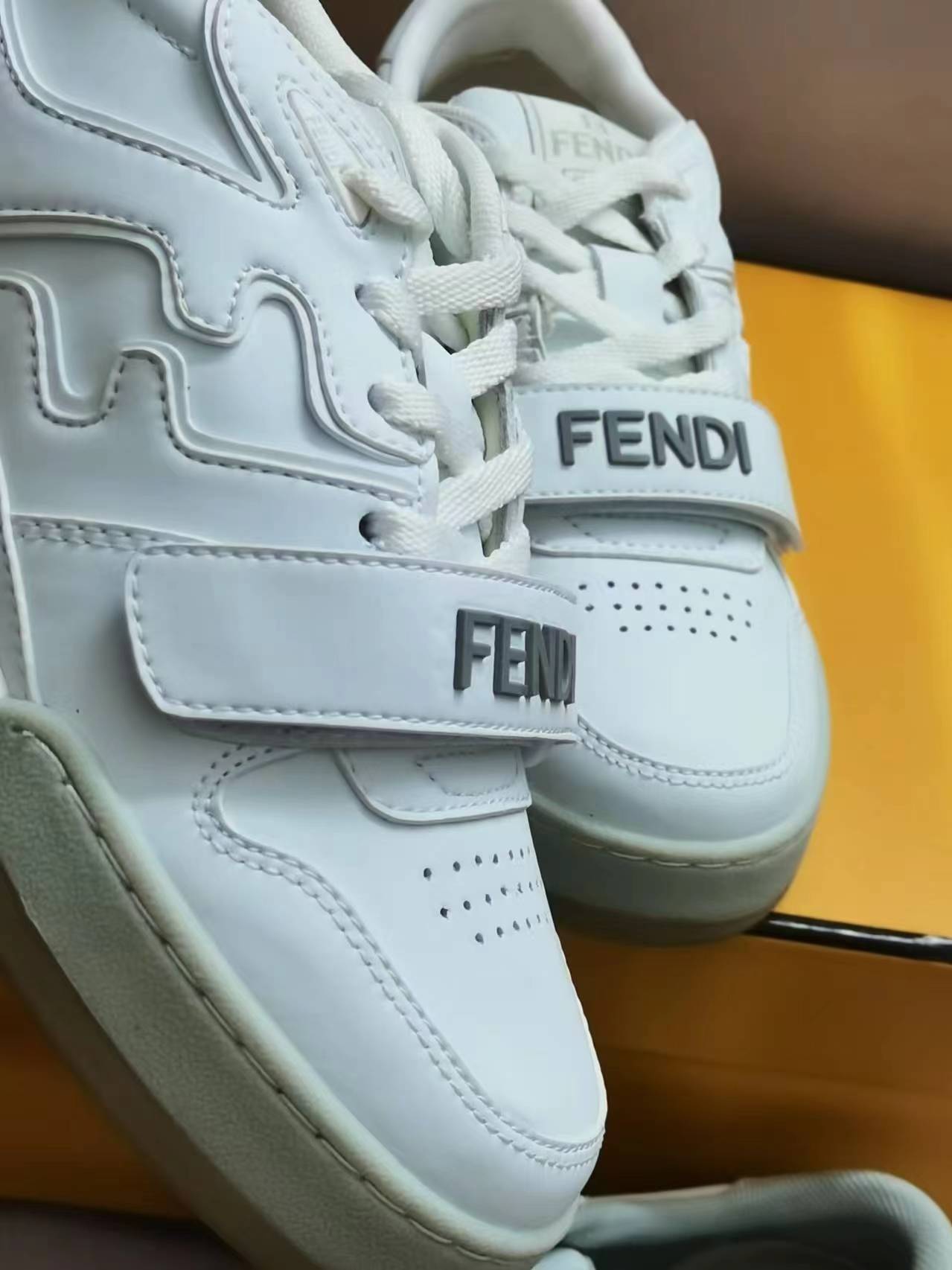 这款鞋子是AAAAA 1:1 质量 (非常棒). 使用了和原版一模一样的材料. 商标部分也保持了和芬迪/Fendi一样. 图片拍摄是实物鞋子拍摄, 您所收到的实物保证和我们图片一模一样.