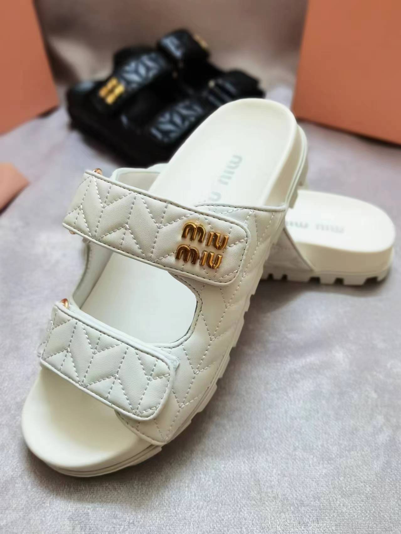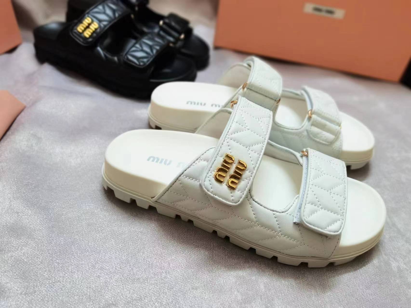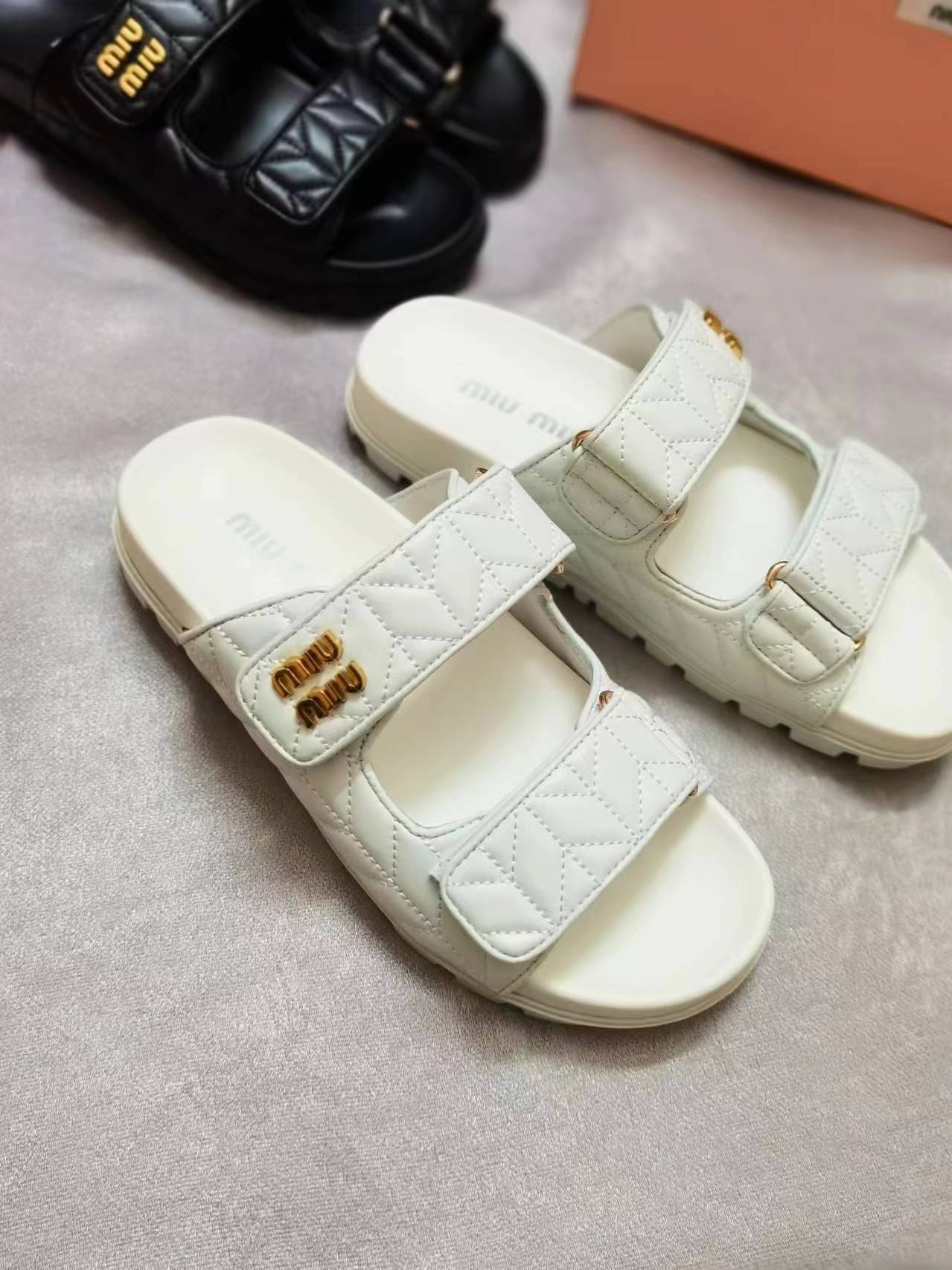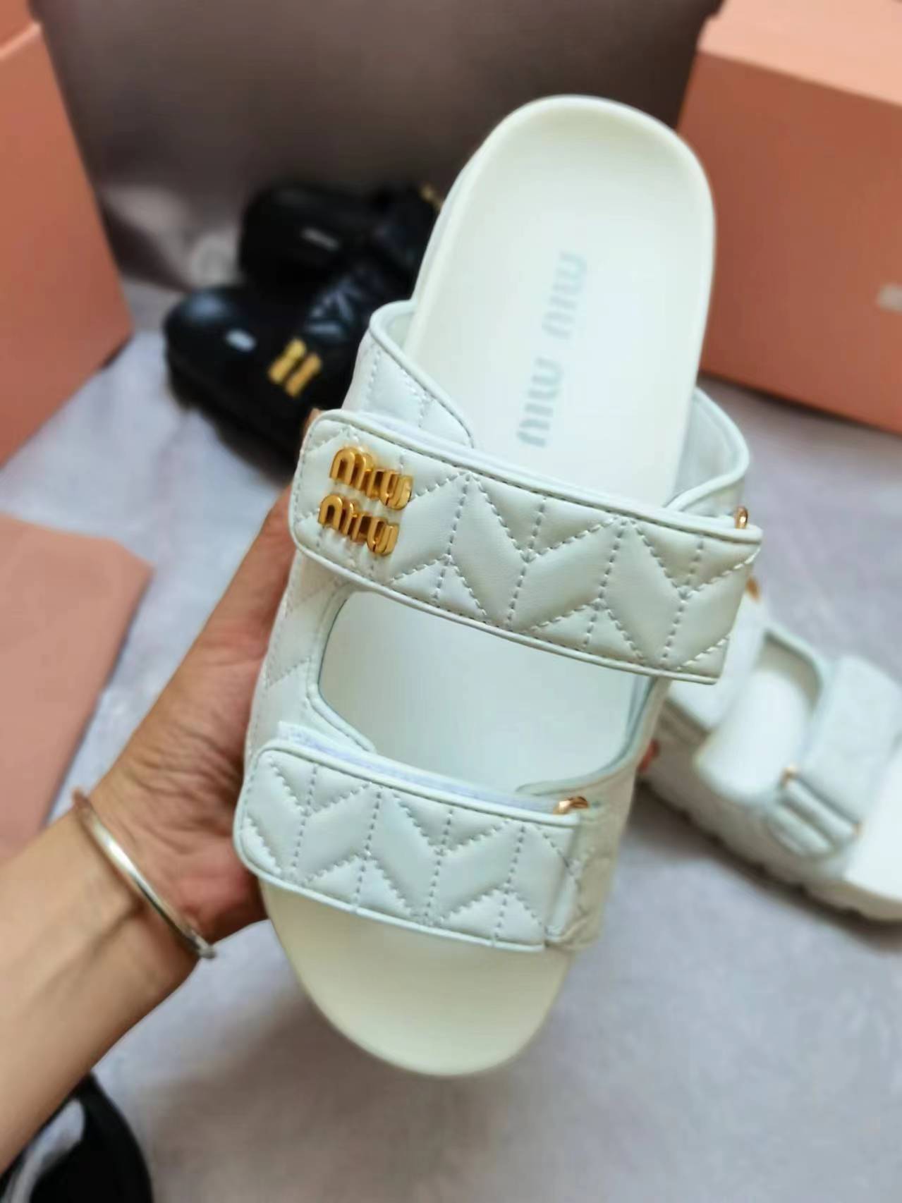 这款鞋子是AAAAA 1:1 质量 (非常棒). 使用了和原版一模一样的材料. 商标部分也保持了和缪缪/Miu Miu一样. 图片拍摄是实物鞋子拍摄, 您所收到的实物保证和我们图片一模一样.