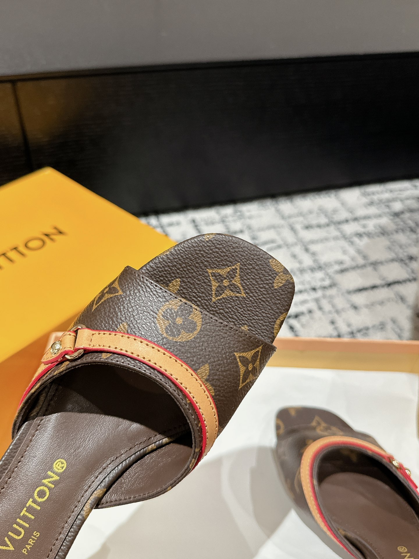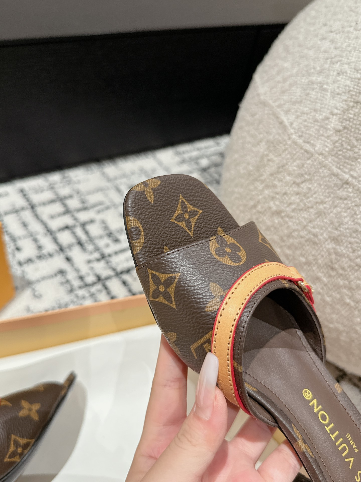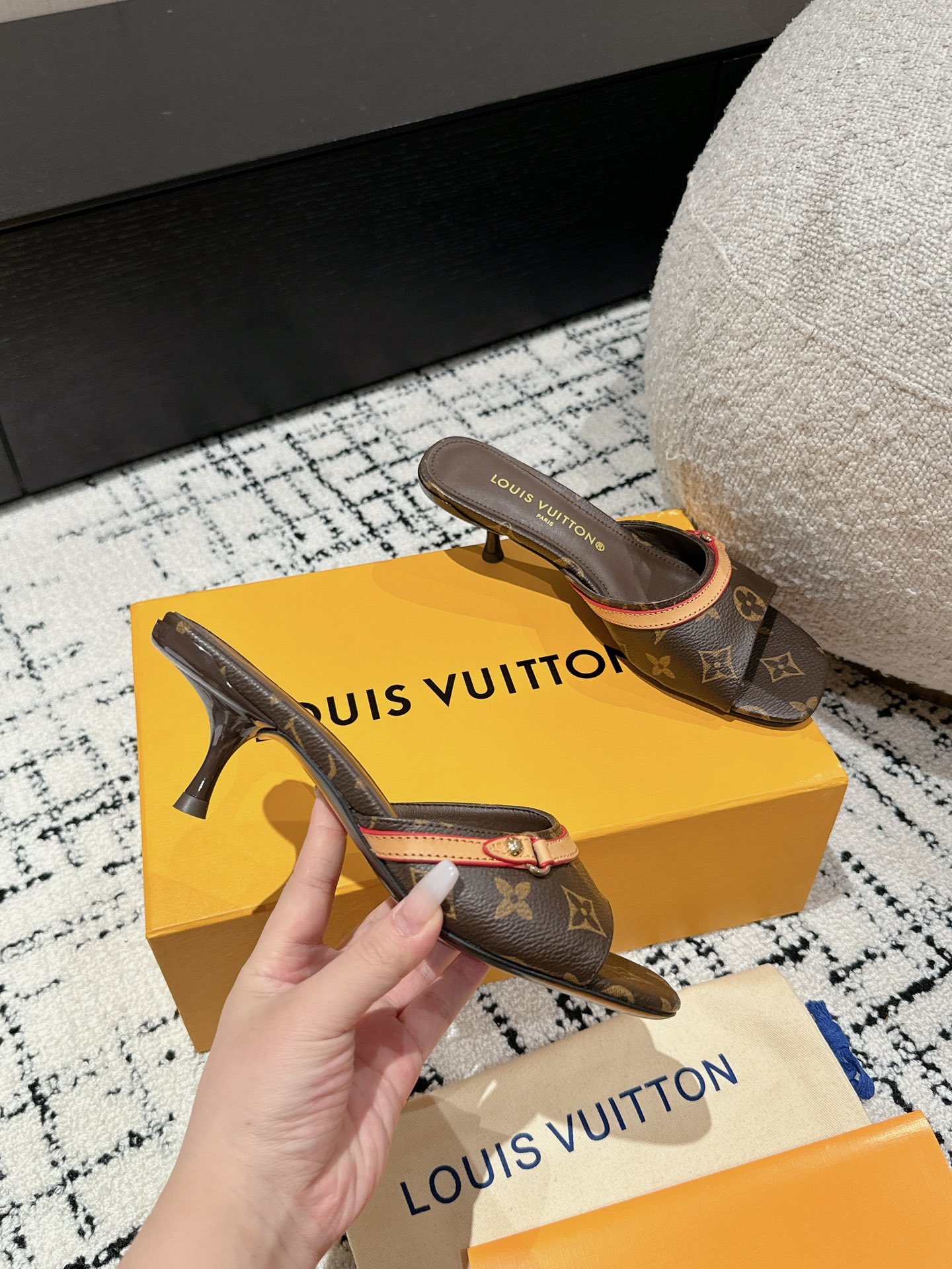 这款鞋子是AAAAA 1:1 质量 (非常棒). 使用了和原版一模一样的材料. 商标部分也保持了和路易威登/Louis Vuitton一样. 图片拍摄是实物鞋子拍摄, 您所收到的实物保证和我们图片一模一样.