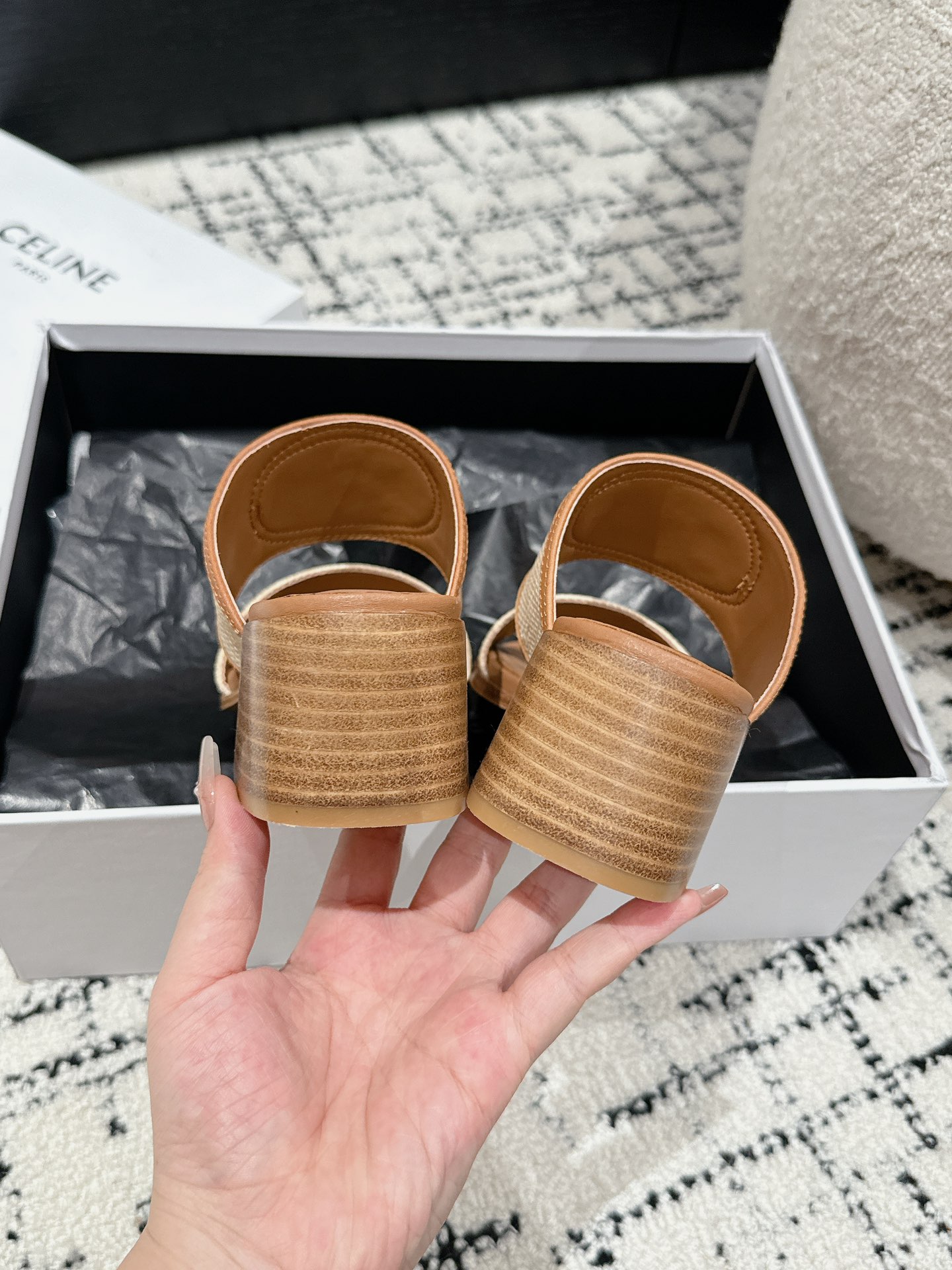 这款鞋子是AAAAA 1:1 质量 (非常棒). 使用了和原版一模一样的材料. 商标部分也保持了和思琳/Celine一样. 图片拍摄是实物鞋子拍摄, 您所收到的实物保证和我们图片一模一样.
