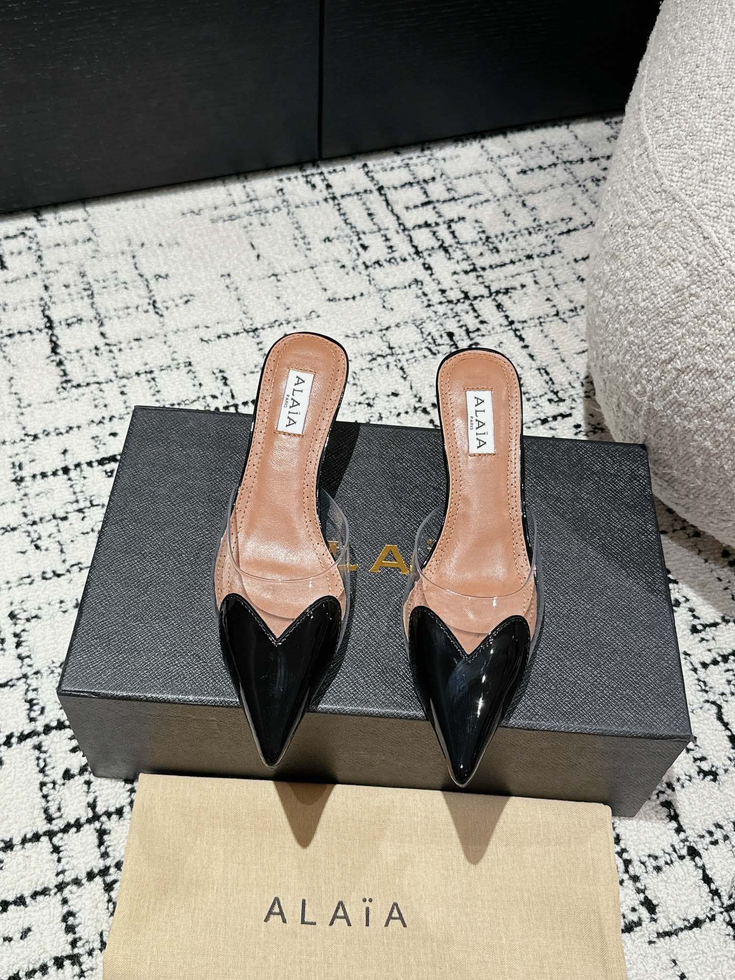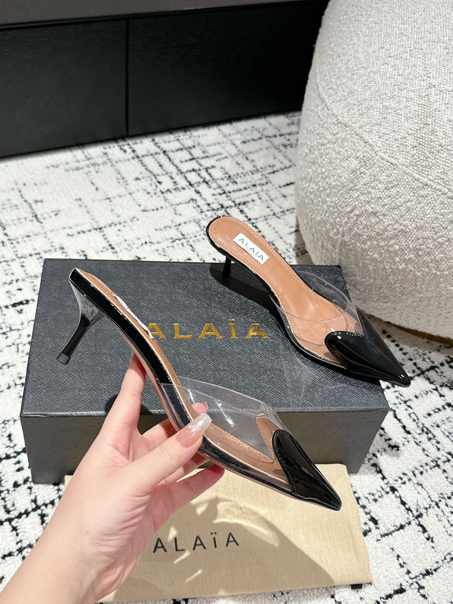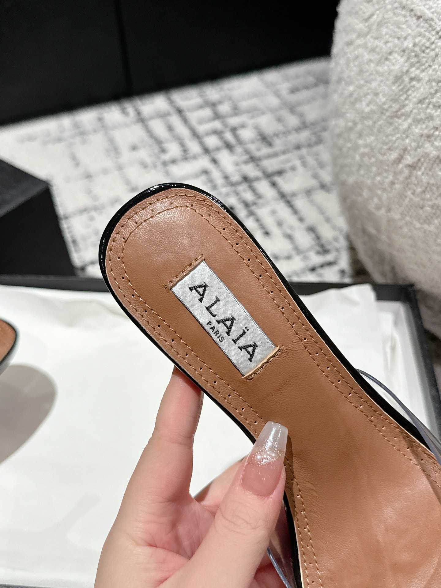 这款鞋子是AAAAA 1:1 质量 (非常棒). 使用了和原版一模一样的材料. 商标部分也保持了和Alaia一样. 图片拍摄是实物鞋子拍摄, 您所收到的实物保证和我们图片一模一样.