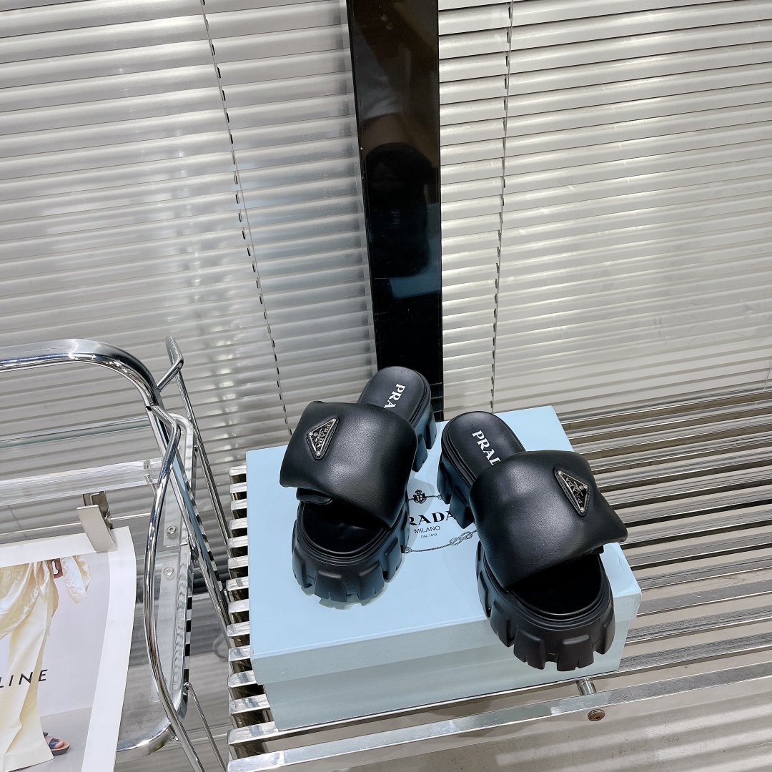 这款鞋子是AAAAA 1:1 质量 (非常棒). 使用了和原版一模一样的材料. 商标部分也保持了和普拉达/Prada一样. 图片拍摄是实物鞋子拍摄, 您所收到的实物保证和我们图片一模一样.