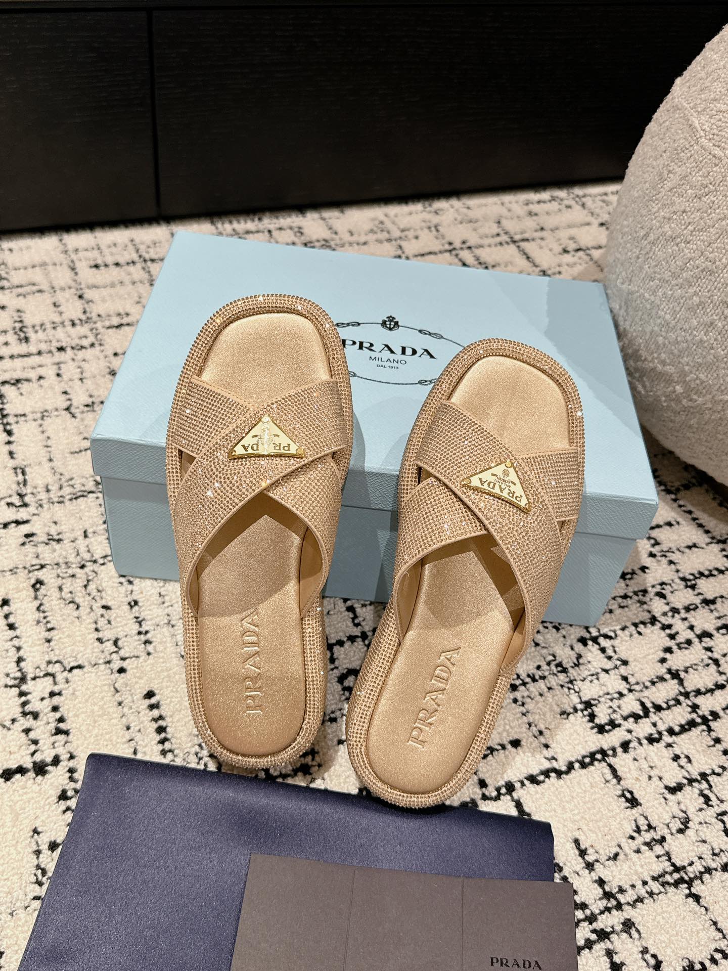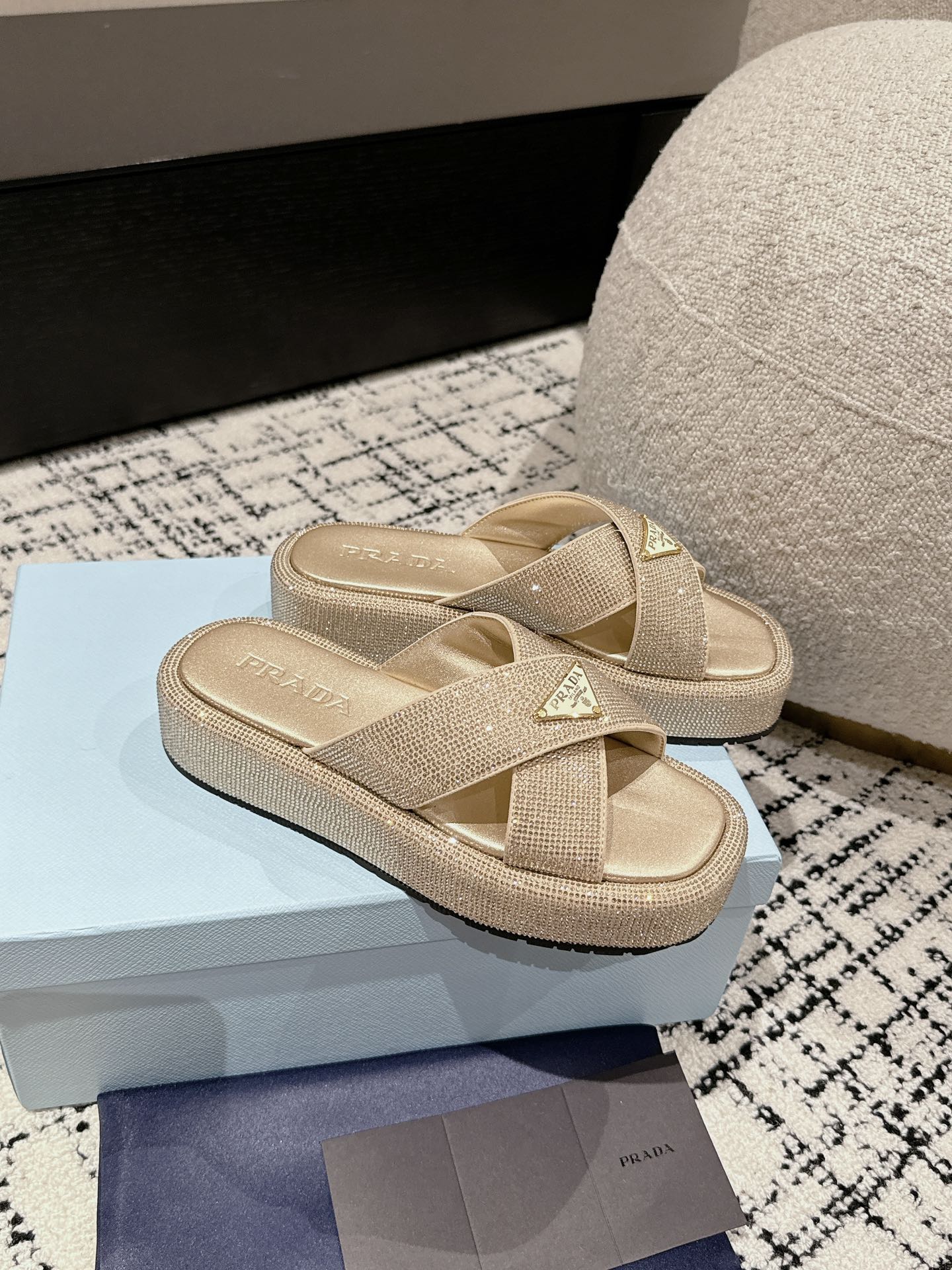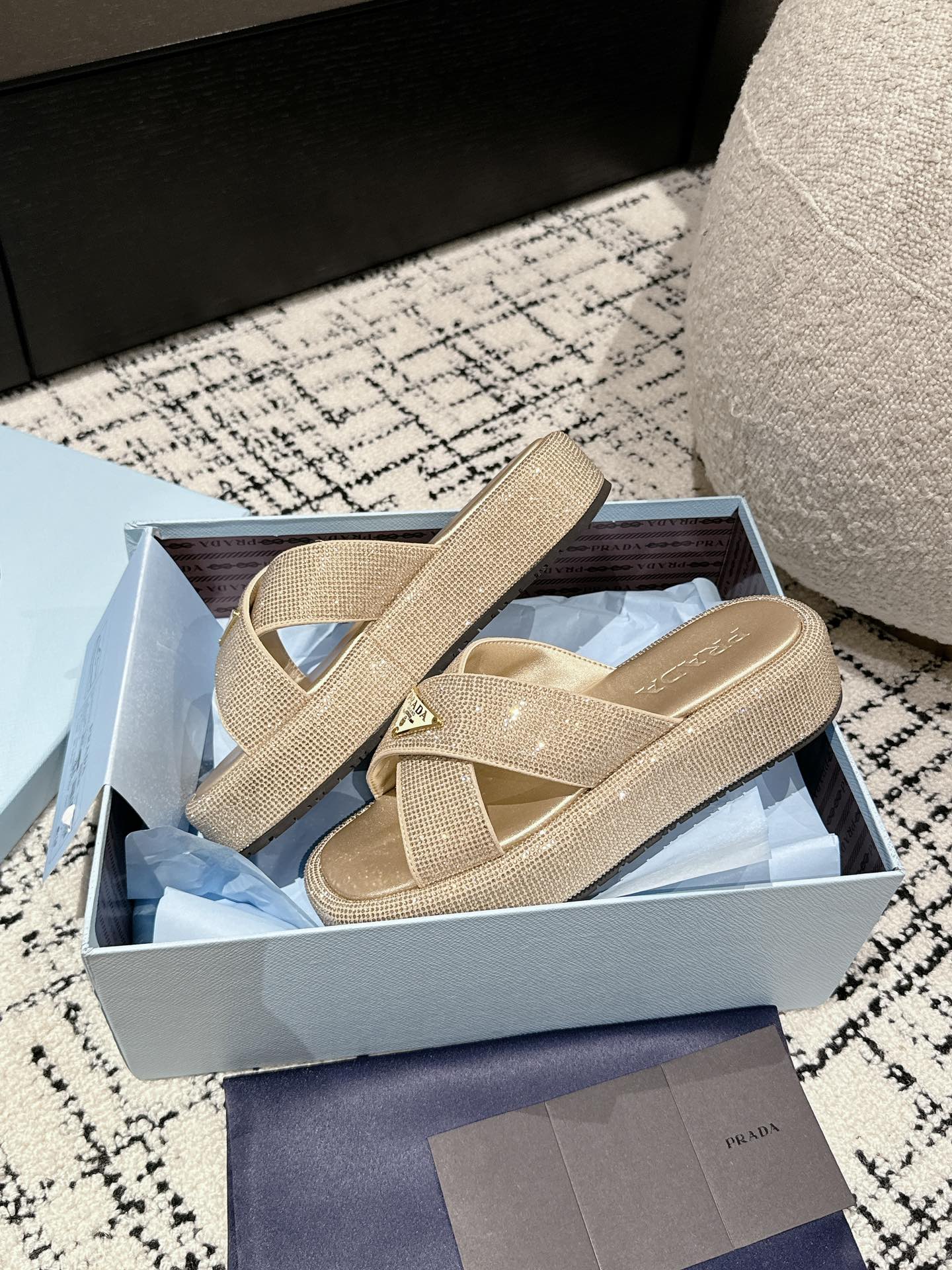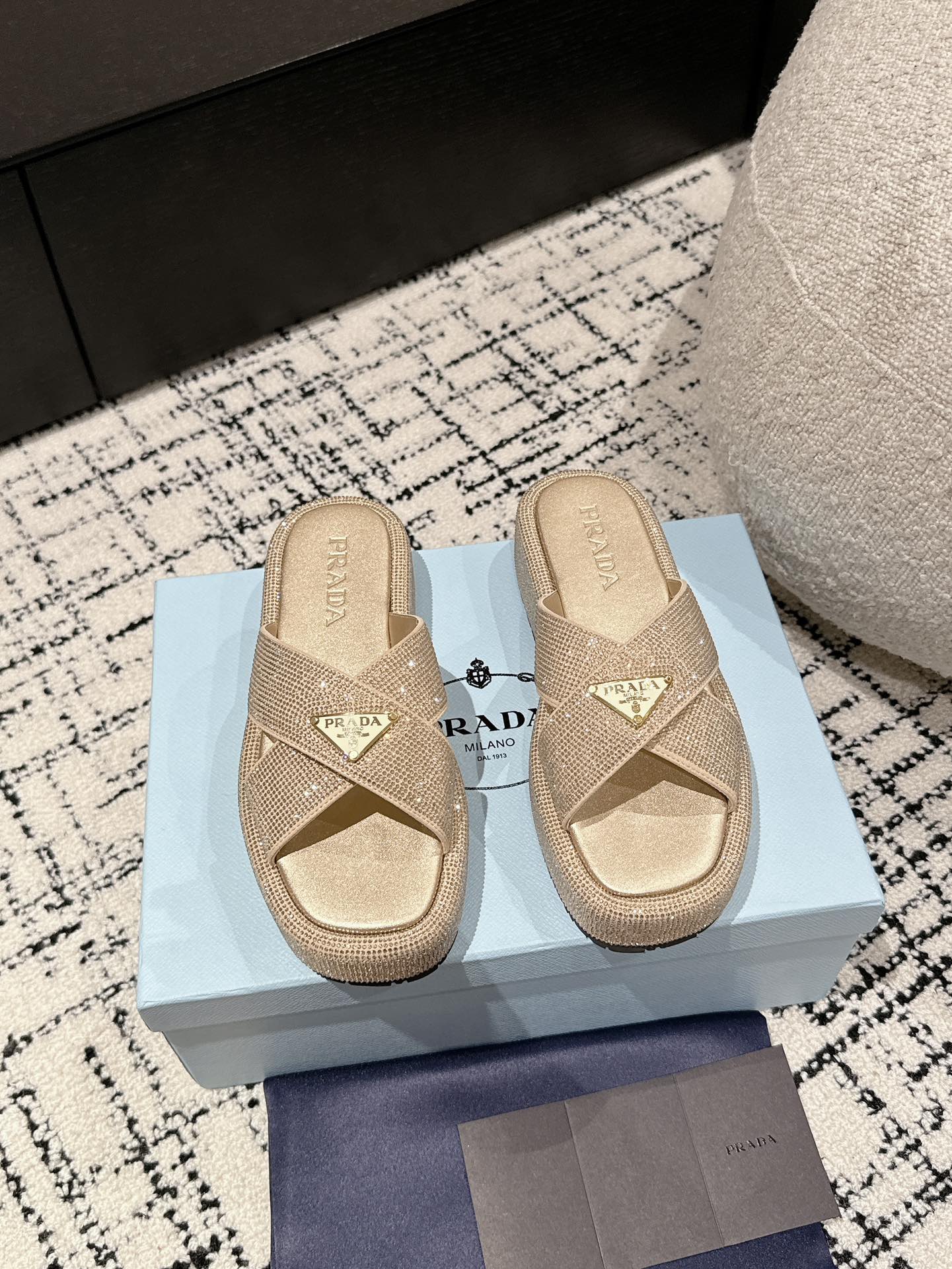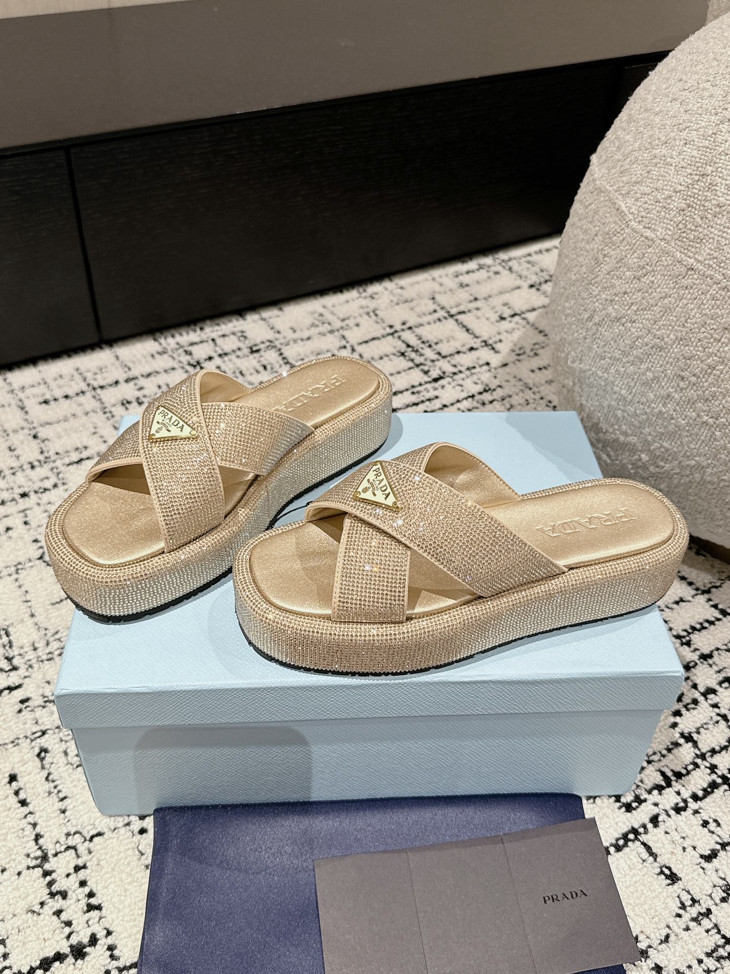 这款鞋子是AAAAA 1:1 质量 (非常棒). 使用了和原版一模一样的材料. 商标部分也保持了和普拉达/Prada一样. 图片拍摄是实物鞋子拍摄, 您所收到的实物保证和我们图片一模一样.
