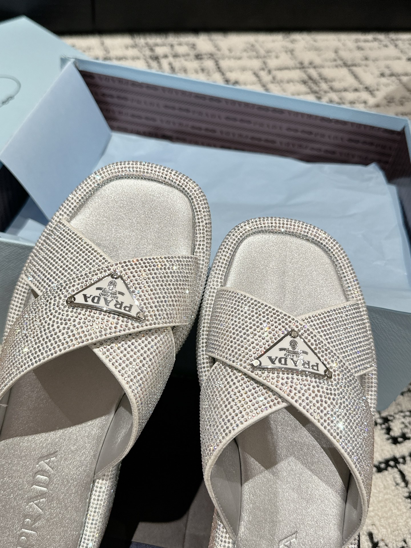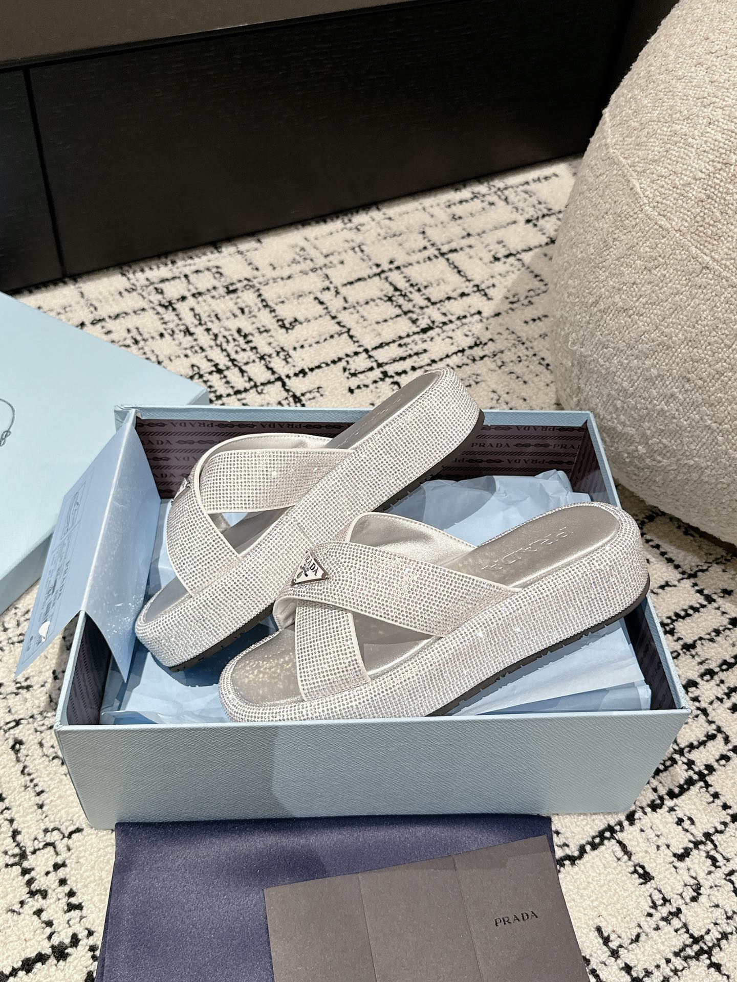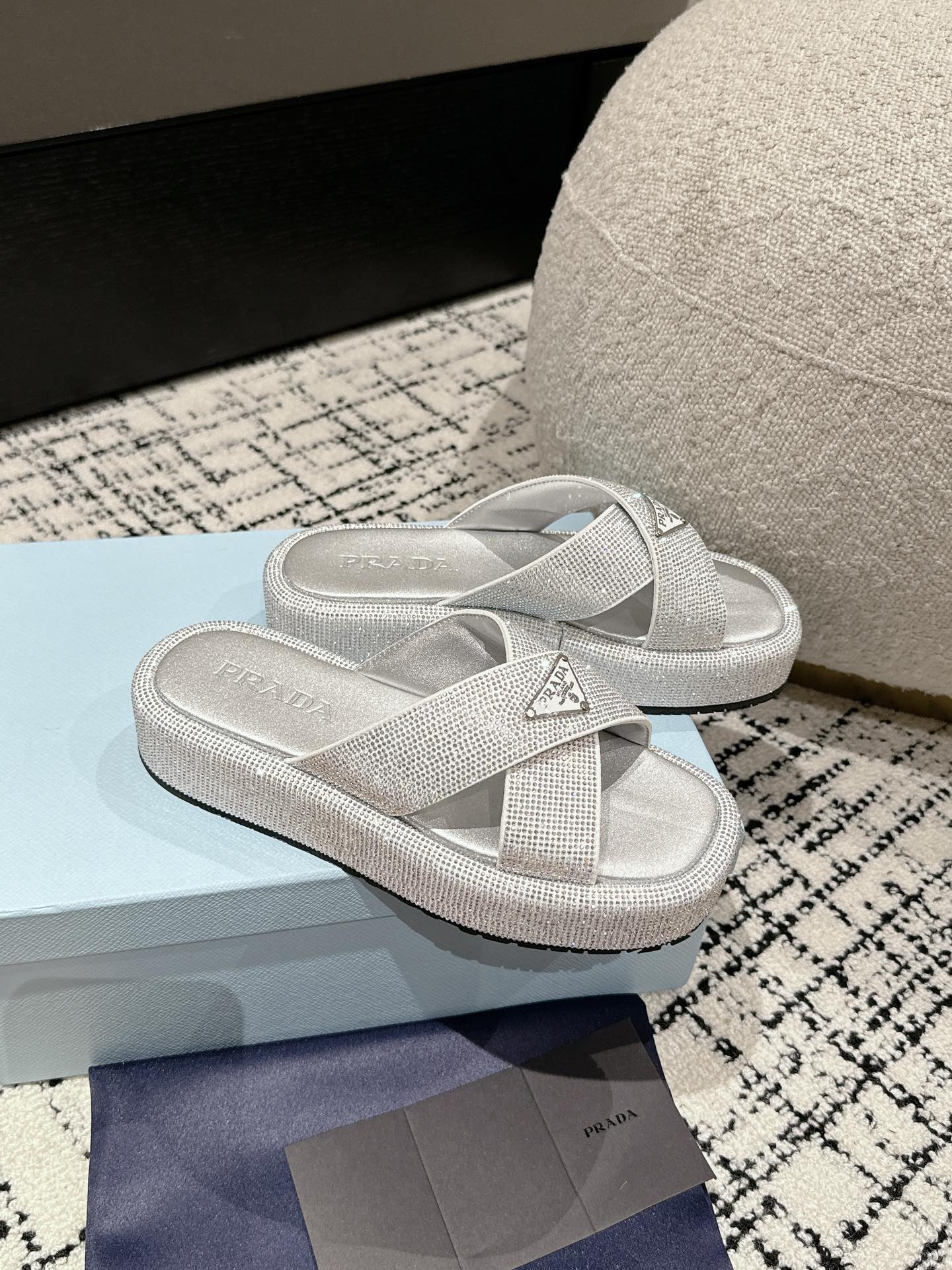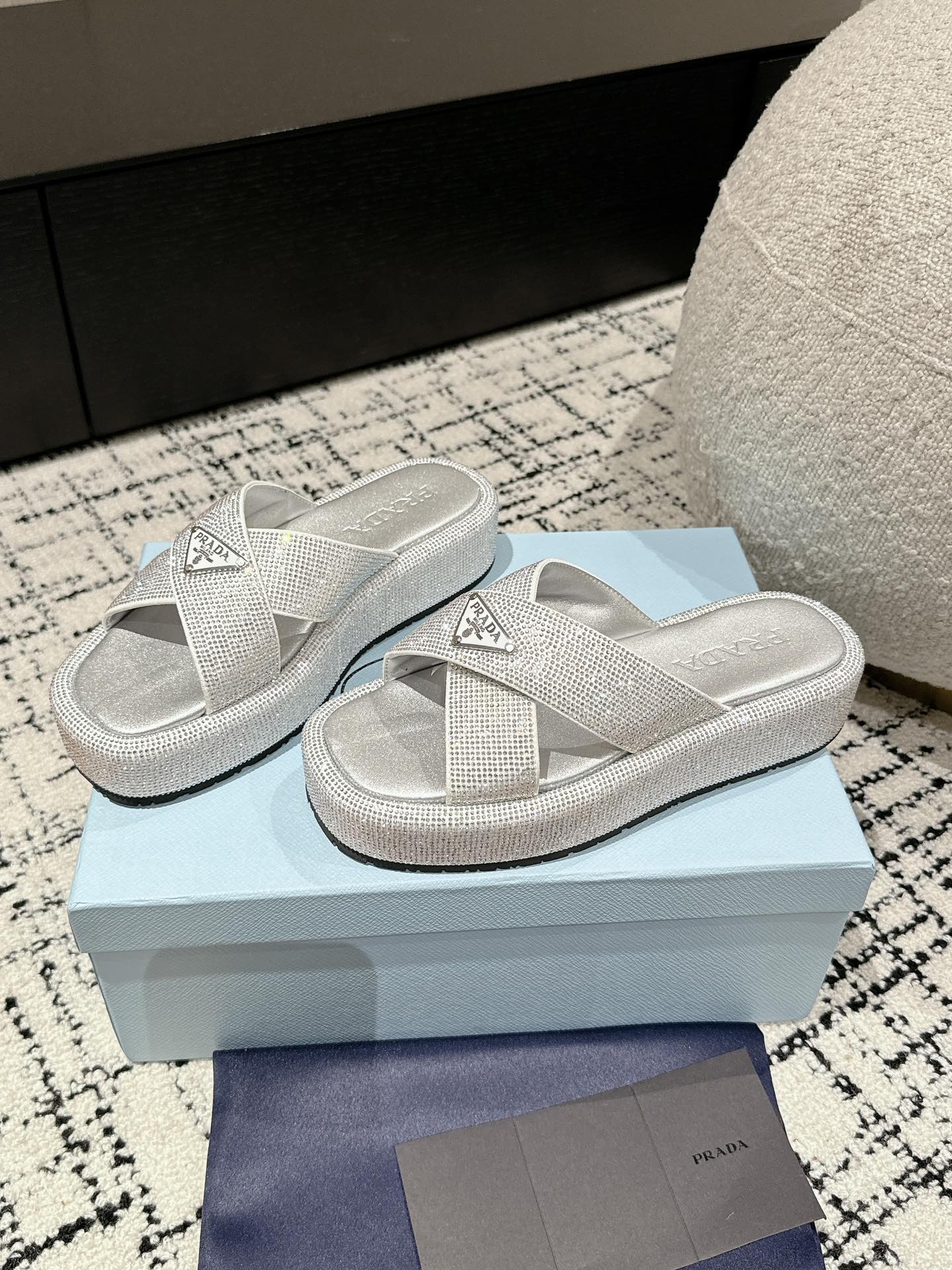 这款鞋子是AAAAA 1:1 质量 (非常棒). 使用了和原版一模一样的材料. 商标部分也保持了和普拉达/Prada一样. 图片拍摄是实物鞋子拍摄, 您所收到的实物保证和我们图片一模一样.