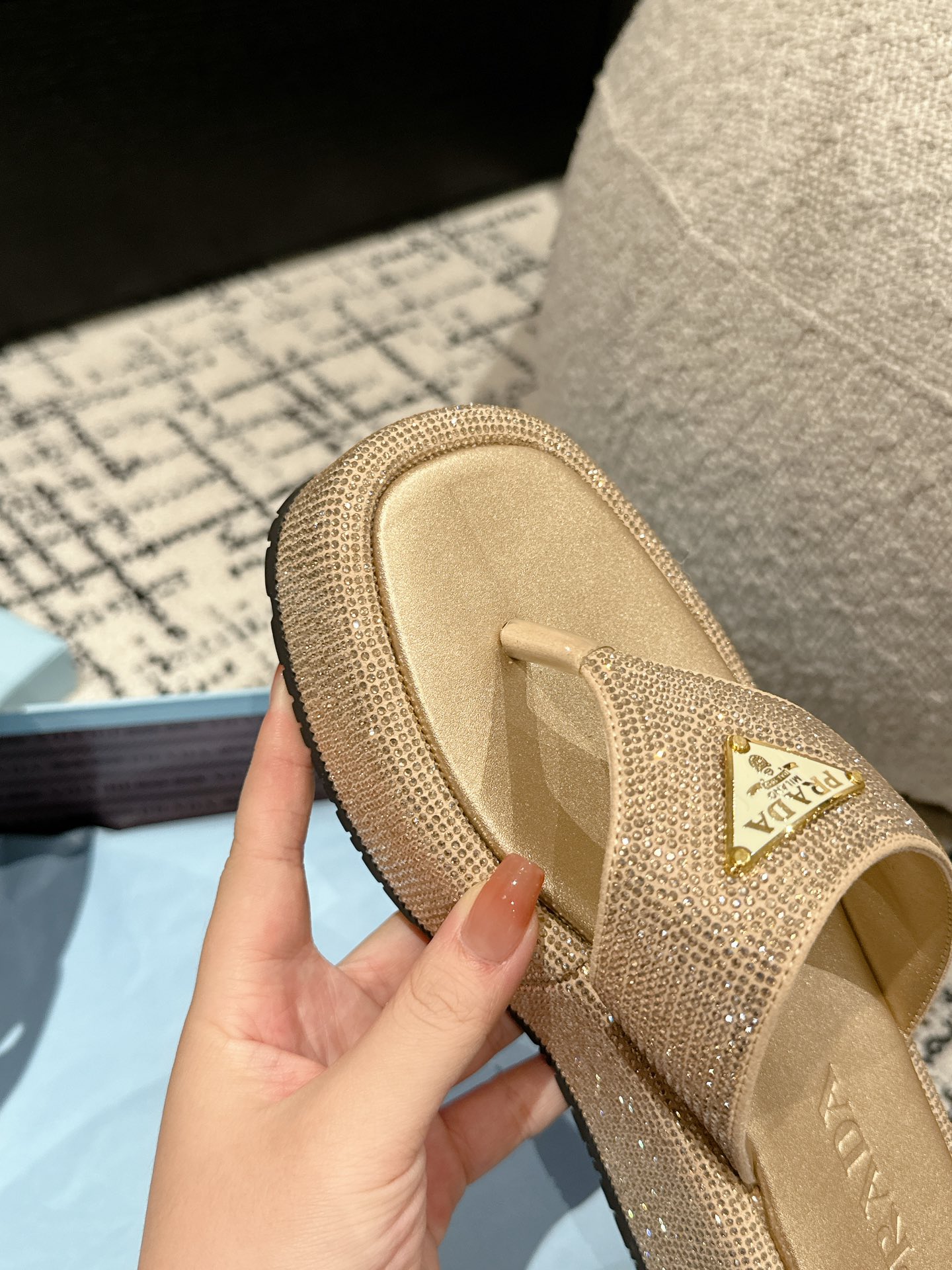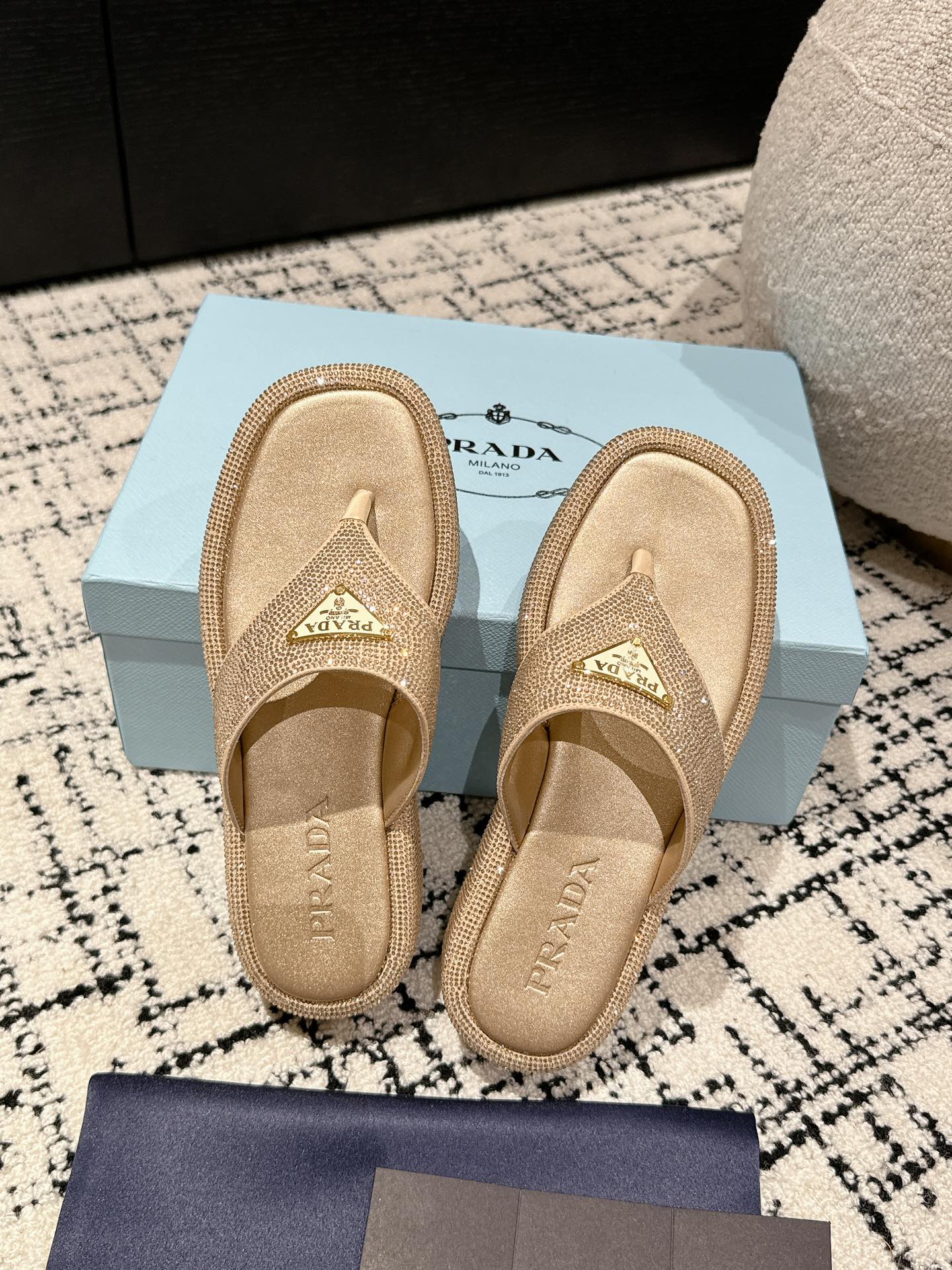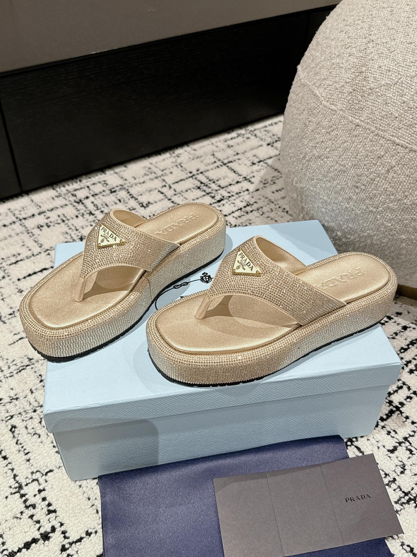 这款鞋子是AAAAA 1:1 质量 (非常棒). 使用了和原版一模一样的材料. 商标部分也保持了和普拉达/Prada一样. 图片拍摄是实物鞋子拍摄, 您所收到的实物保证和我们图片一模一样.