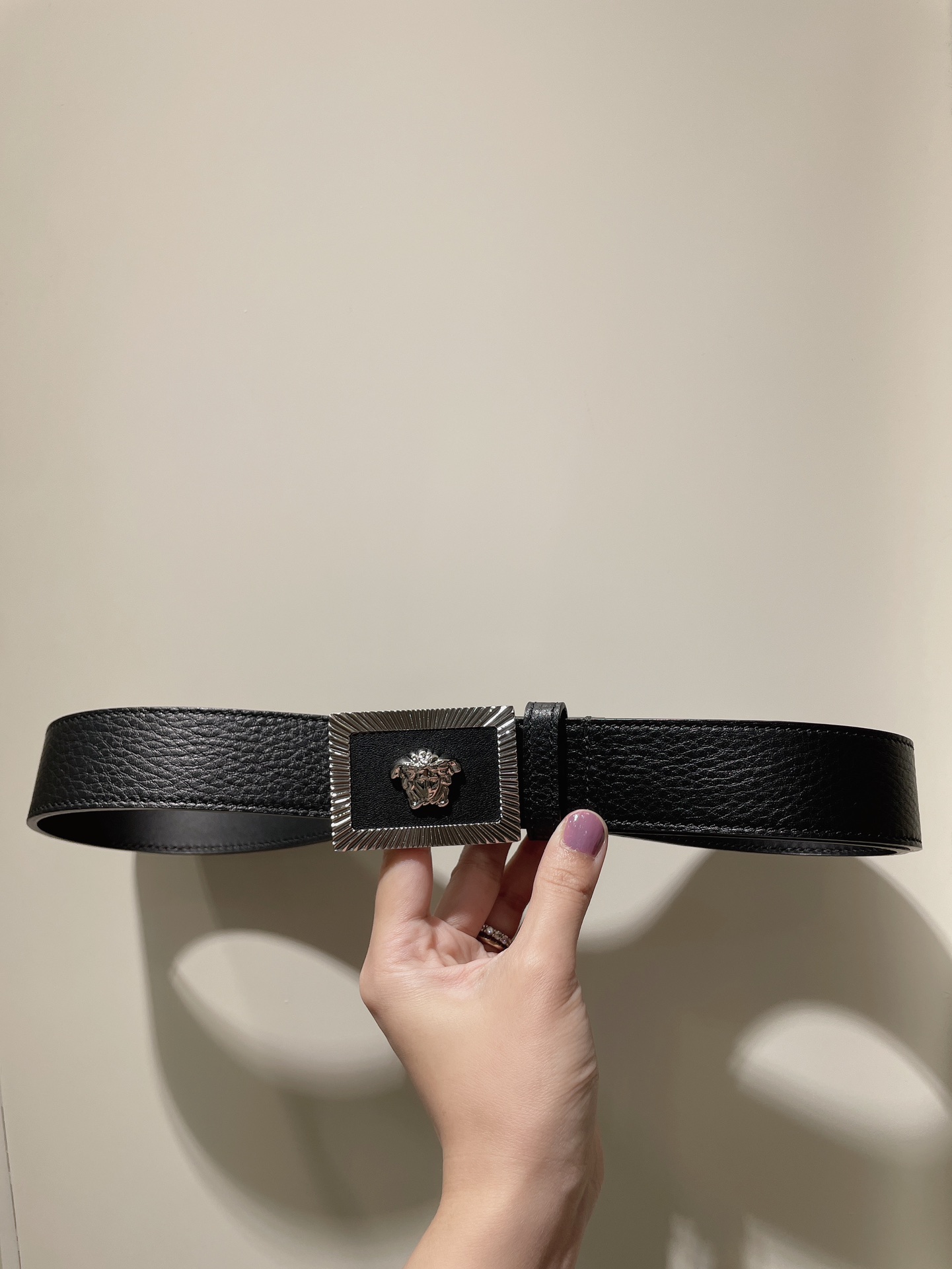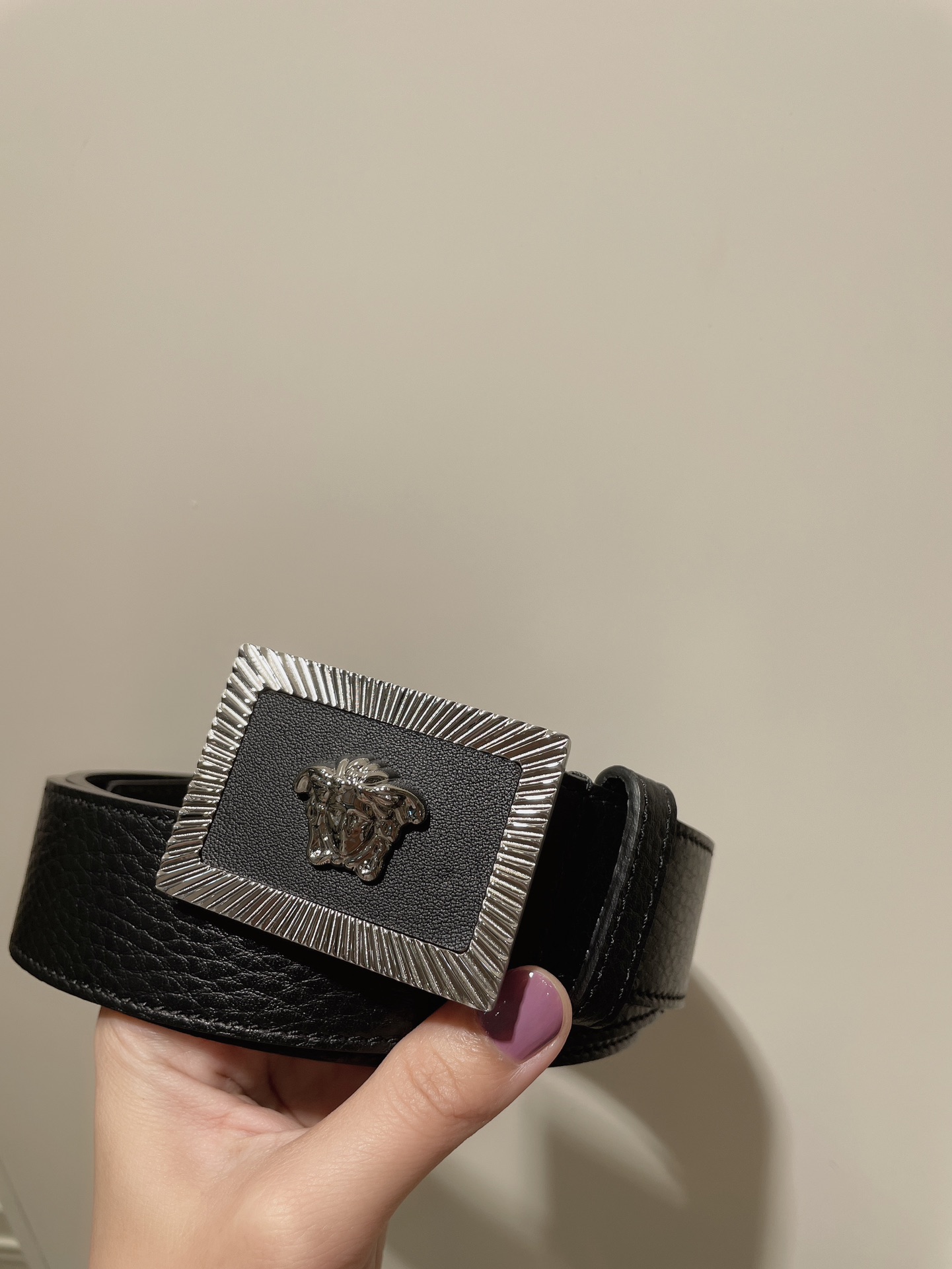 这款皮带是AAAAA 1:1 质量 (非常棒). 使用了和原版一模一样的材料. 商标部分也保持了和范思哲/Versace一样. 图片拍摄是实物皮带拍摄, 您所收到的实物保证和我们图片一模一样.