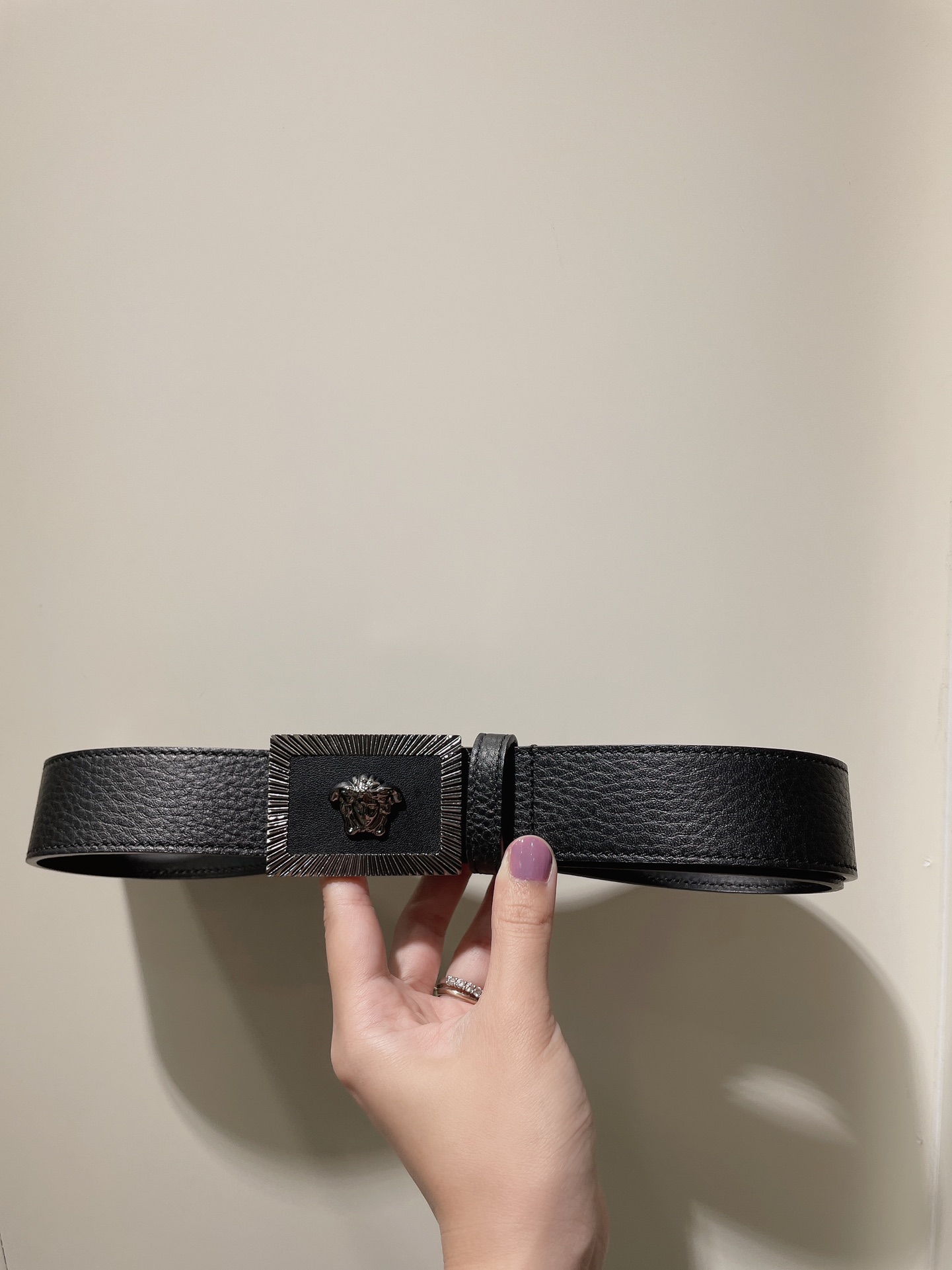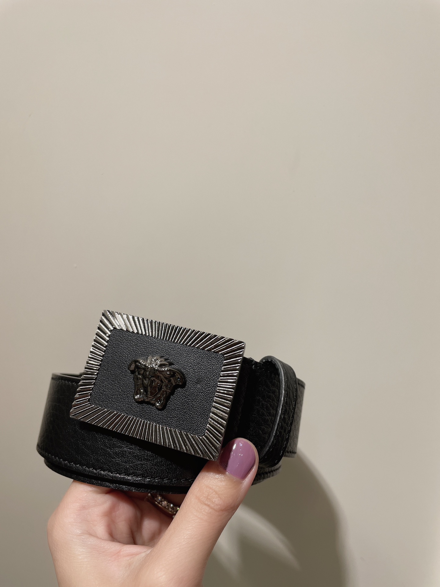 这款皮带是AAAAA 1:1 质量 (非常棒). 使用了和原版一模一样的材料. 商标部分也保持了和范思哲/Versace一样. 图片拍摄是实物皮带拍摄, 您所收到的实物保证和我们图片一模一样.