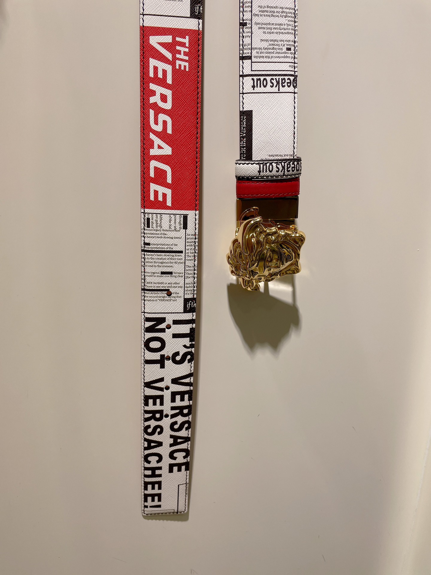 这款皮带是AAAAA 1:1 质量 (非常棒). 使用了和原版一模一样的材料. 商标部分也保持了和范思哲/Versace一样. 图片拍摄是实物皮带拍摄, 您所收到的实物保证和我们图片一模一样.