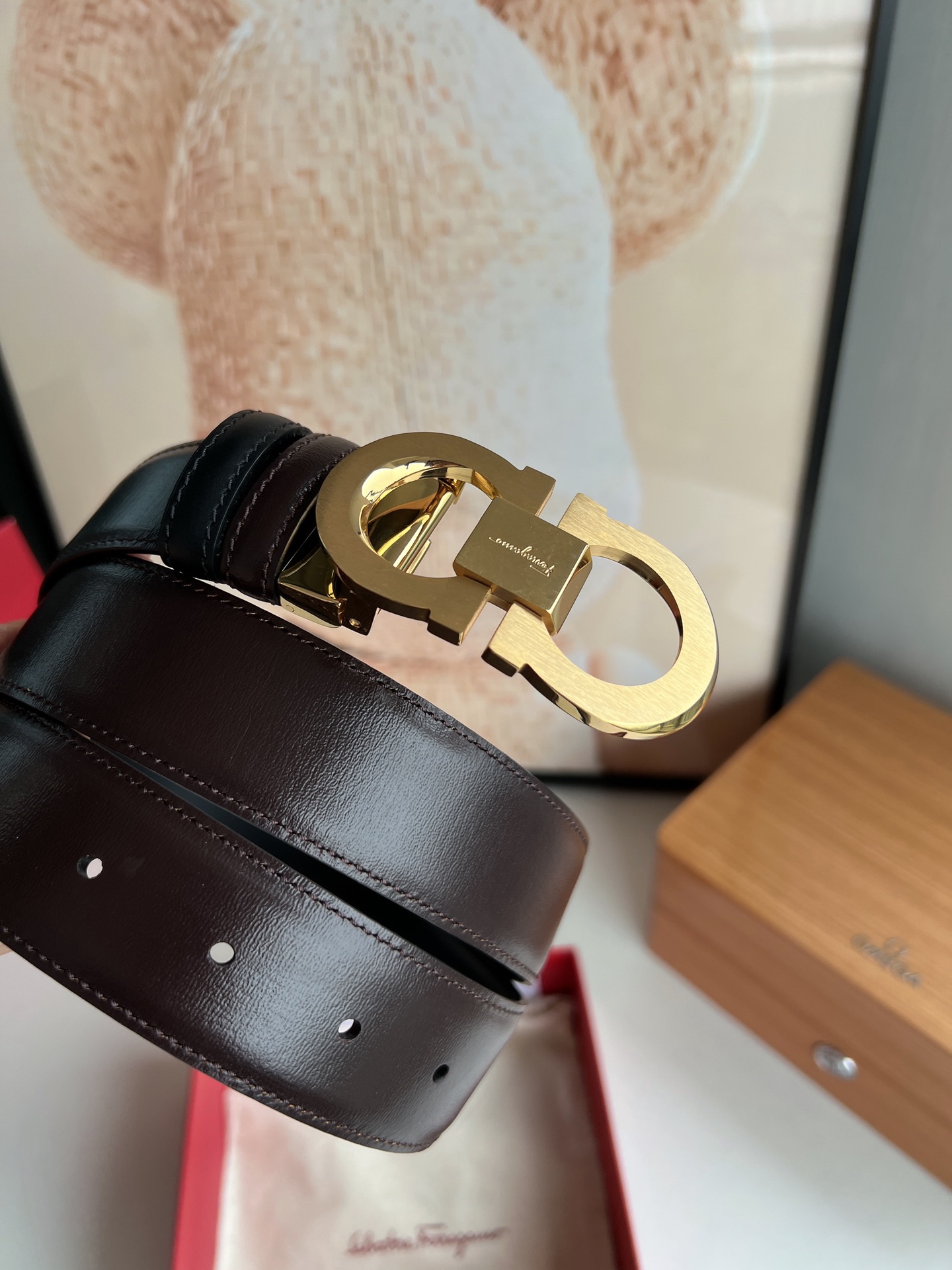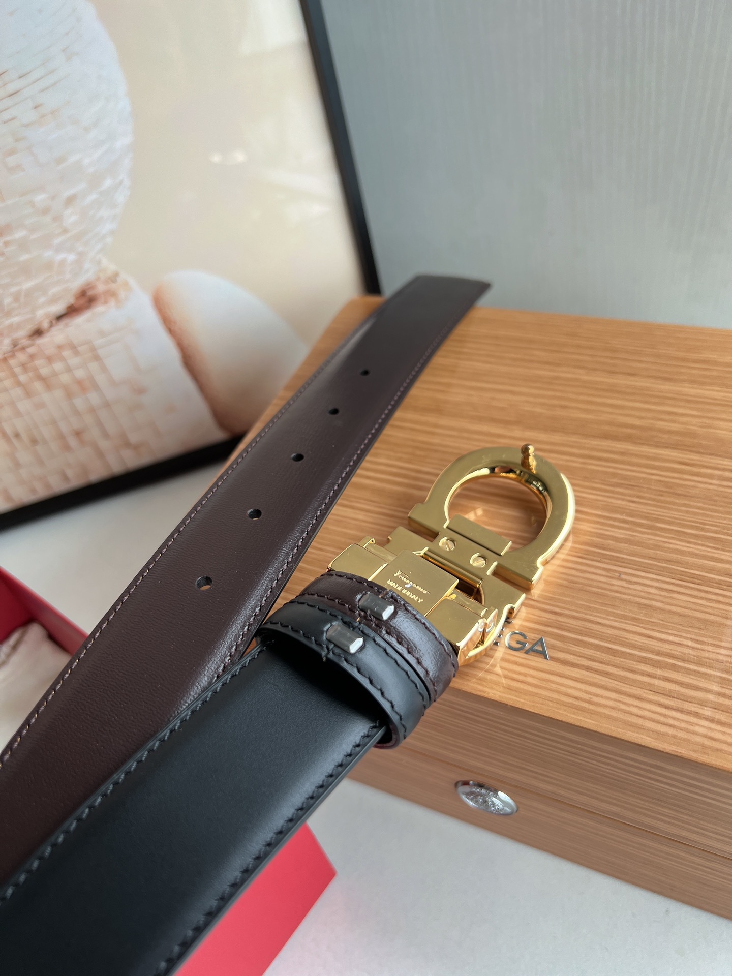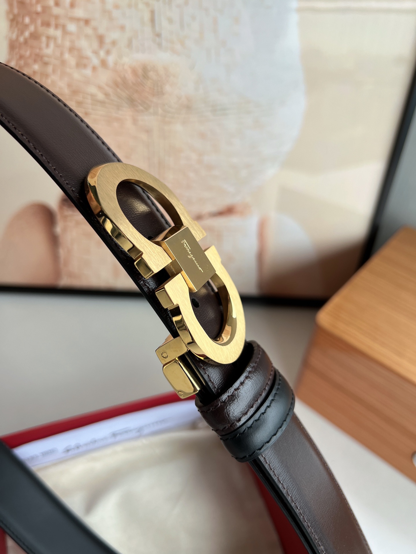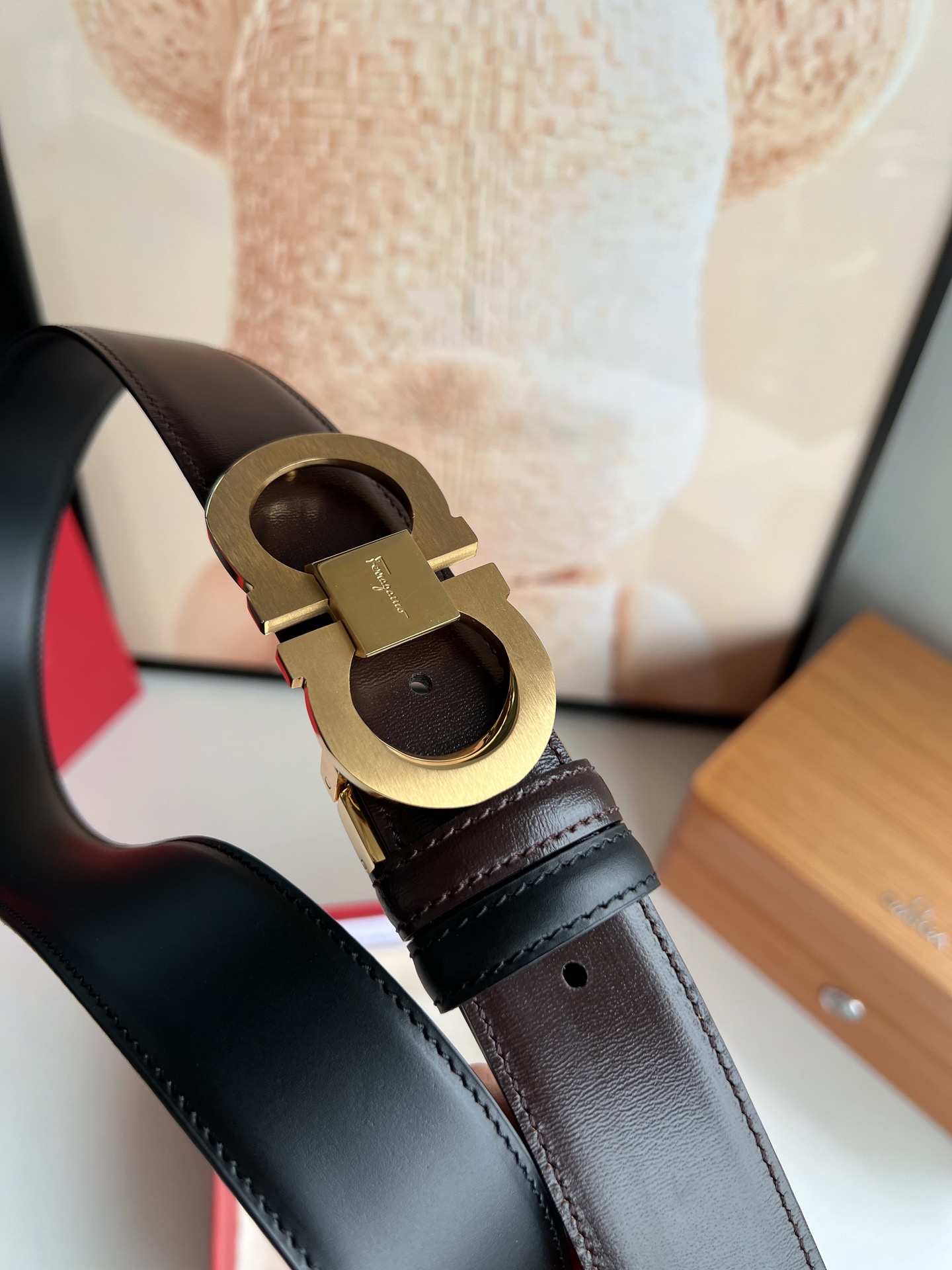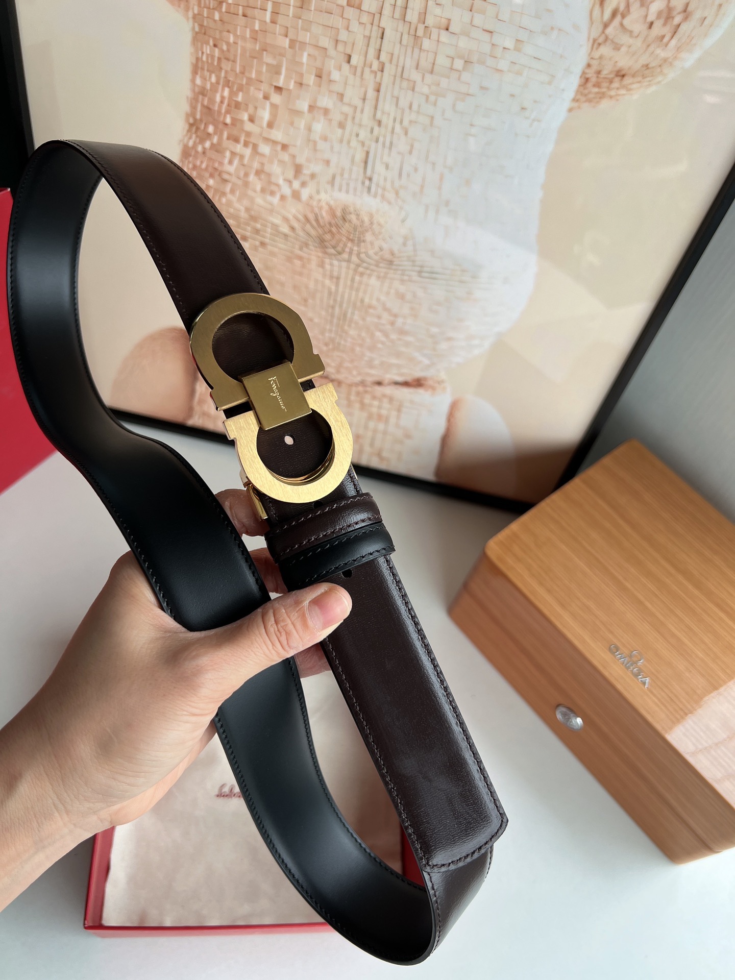 这款皮带是AAAAA 1:1 质量 (非常棒). 使用了和原版一模一样的材料. 商标部分也保持了和菲拉格慕/Salvatore Ferragamo一样. 图片拍摄是实物皮带拍摄, 您所收到的实物保证和我们图片一模一样.