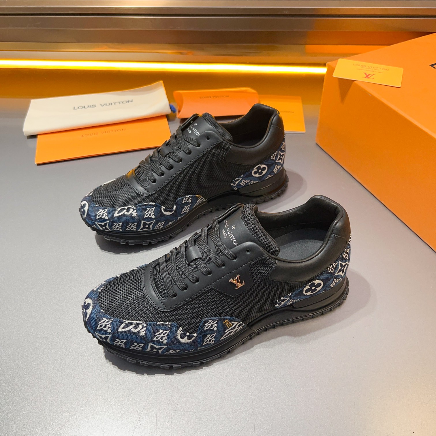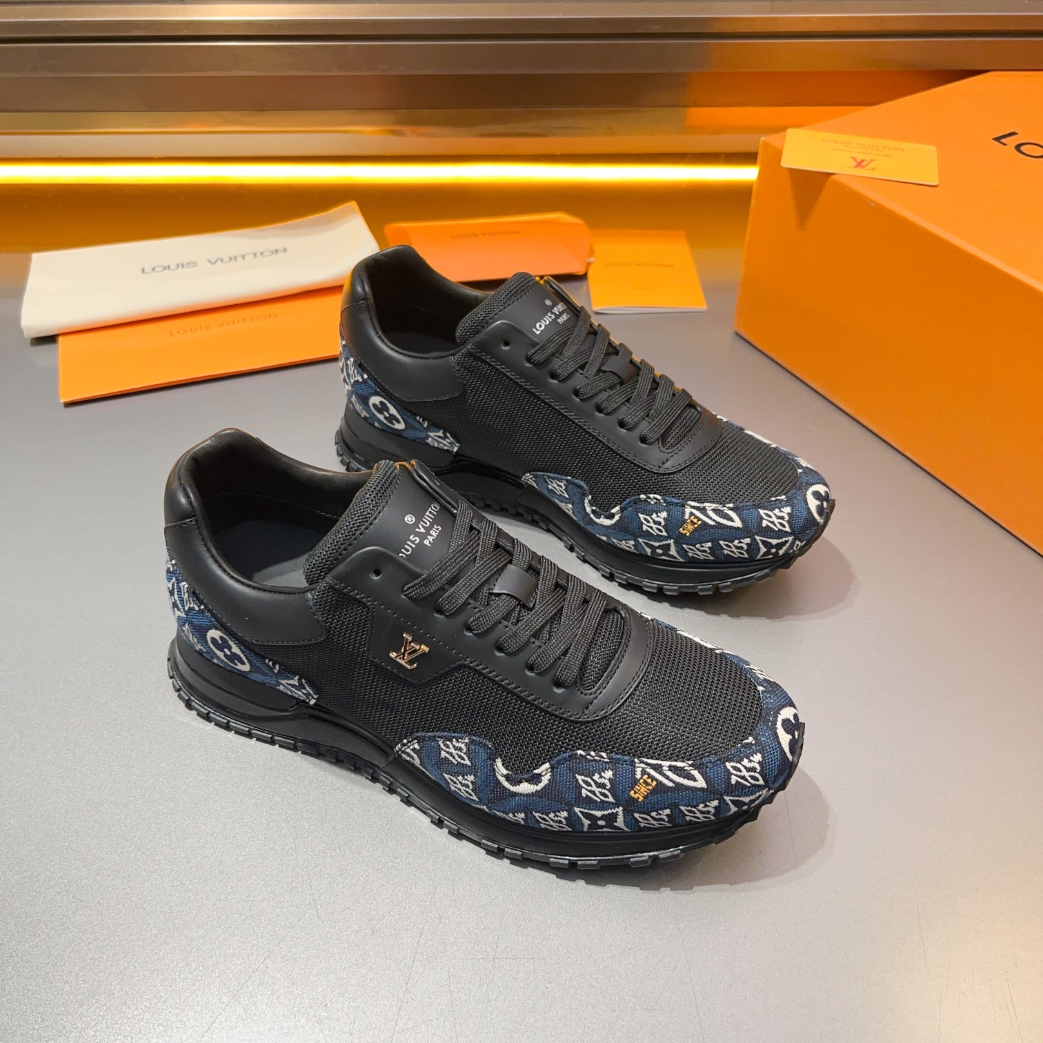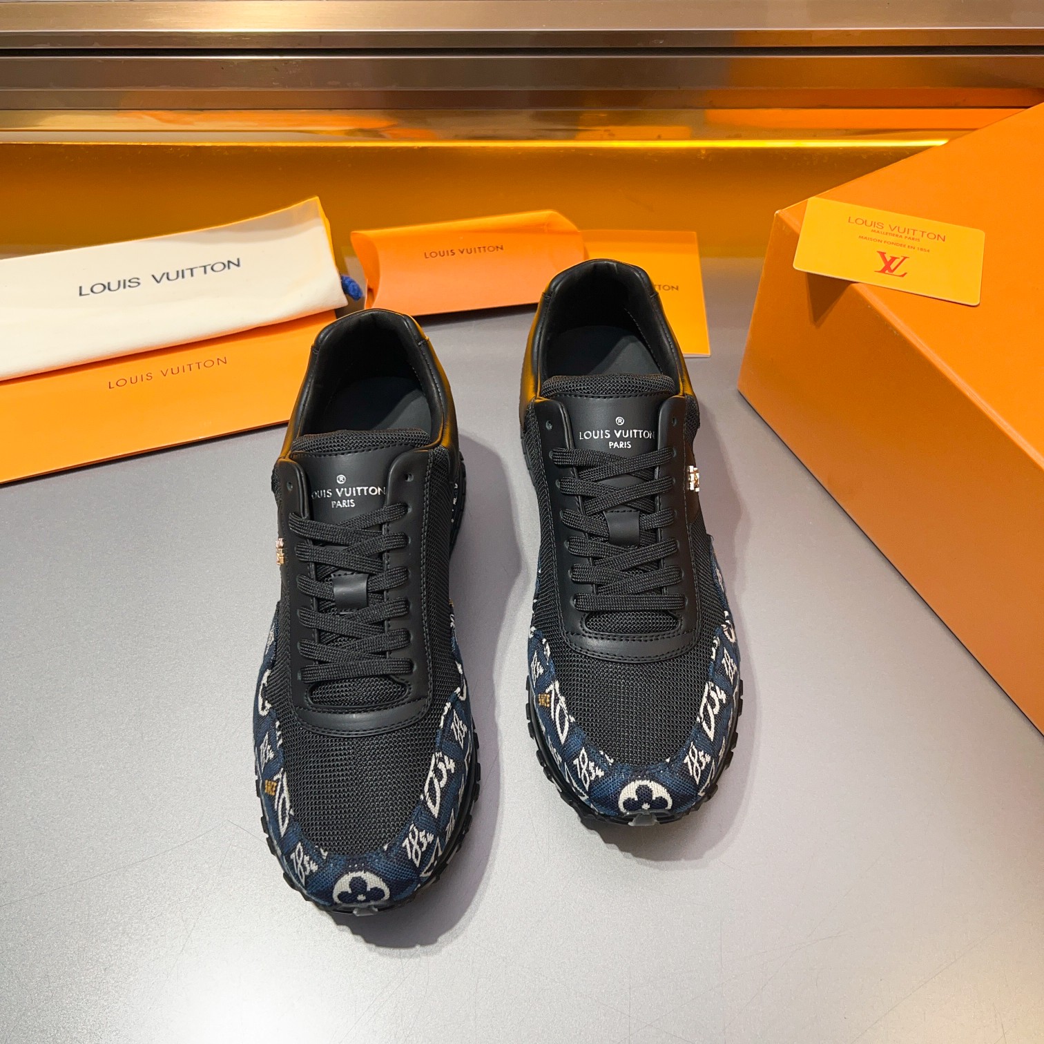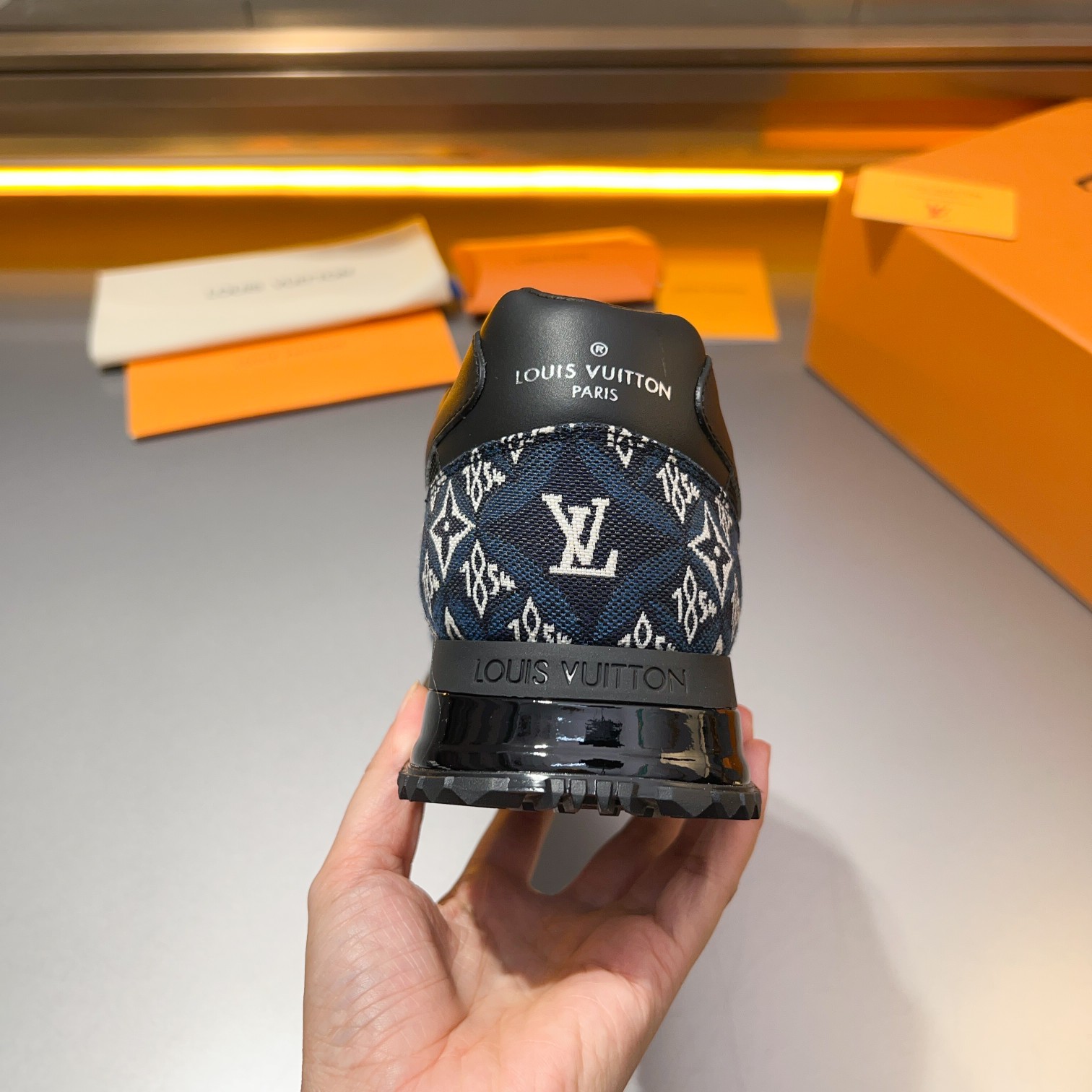 这款鞋子是AAAAA 1:1 质量 (非常棒). 使用了和原版一模一样的材料. 商标部分也保持了和路易威登/Louis Vuitton一样. 图片拍摄是实物鞋子拍摄, 您所收到的实物保证和我们图片一模一样.