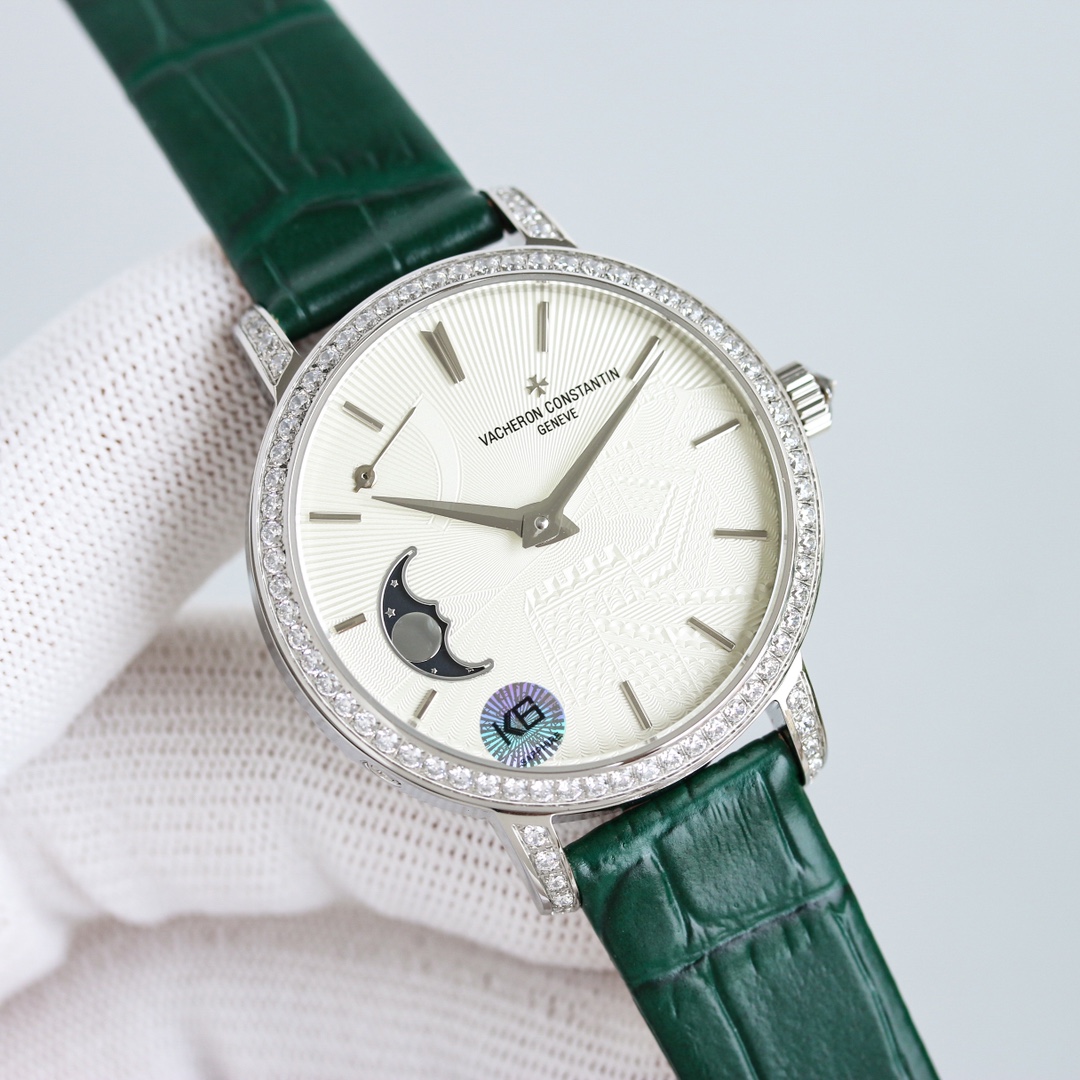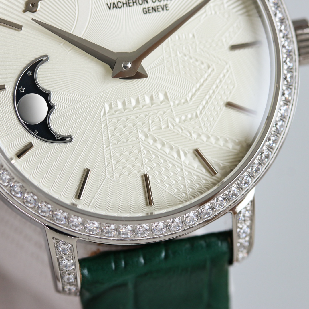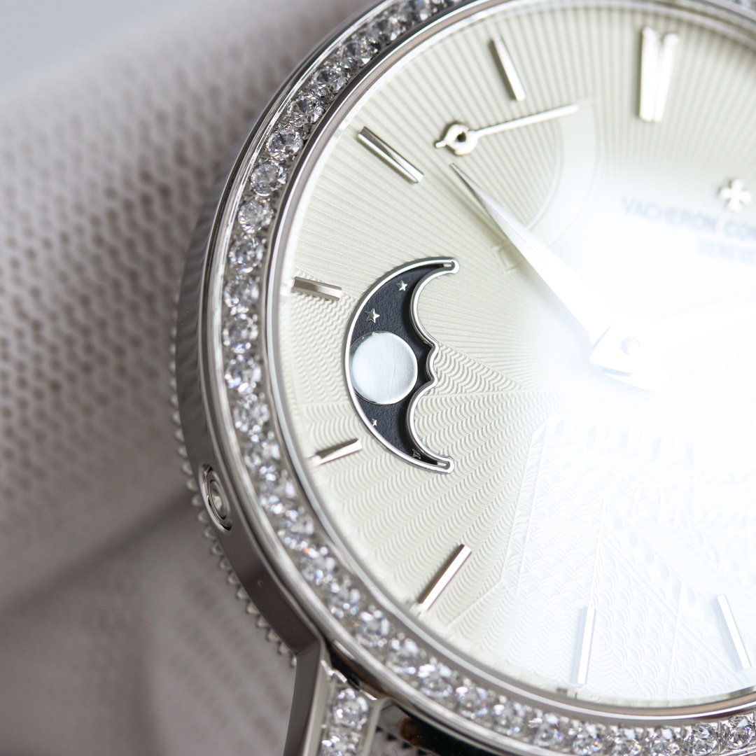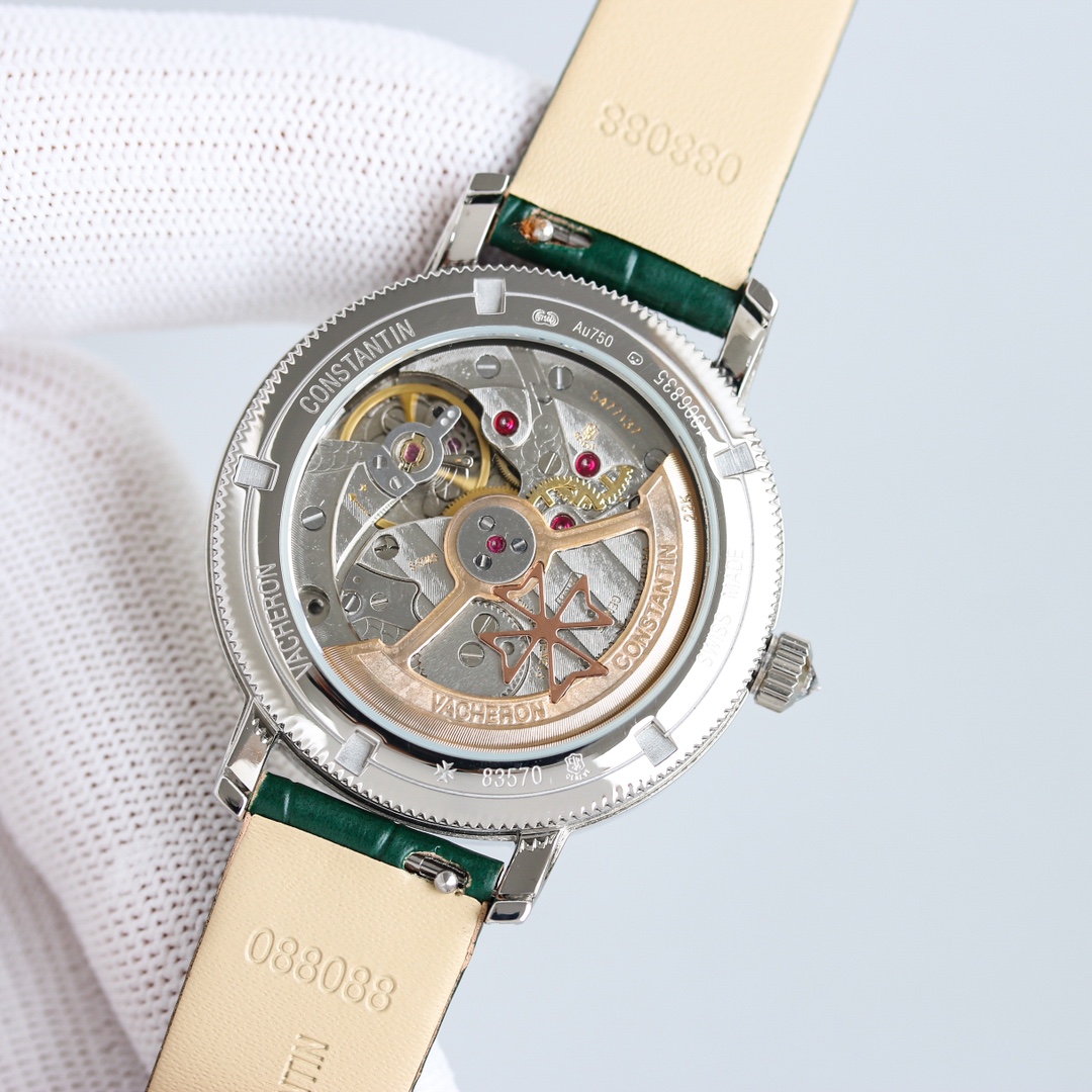 这款手表是AAAAA 1:1 质量 (非常棒). 使用了和原版一模一样的材料. 商标部分也保持了和江诗丹顿/Vacheron Constantin一样. 图片拍摄是实物手表拍摄, 您所收到的实物保证和我们图片一模一样.
