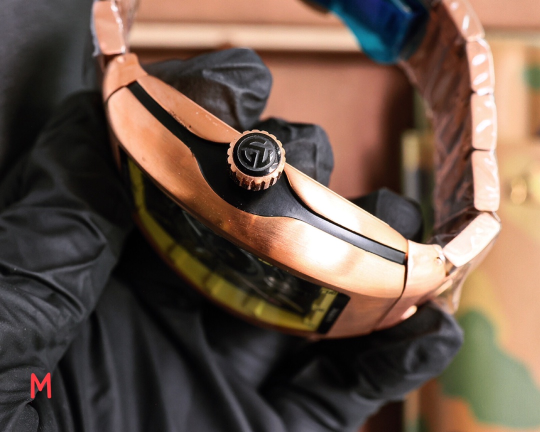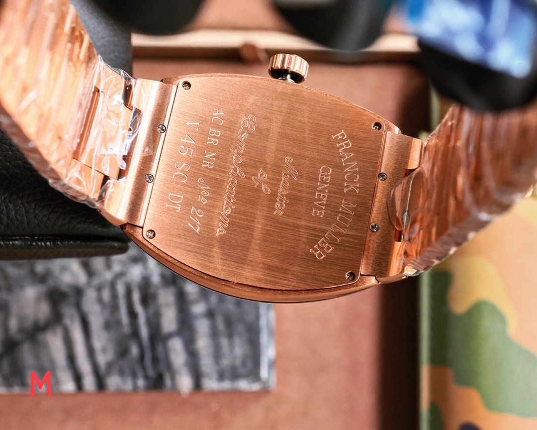 这款手表是AAAAA 1:1 质量 (非常棒). 使用了和原版一模一样的材料. 商标部分也保持了和Franck Mulle一样. 图片拍摄是实物手表拍摄, 您所收到的实物保证和我们图片一模一样.