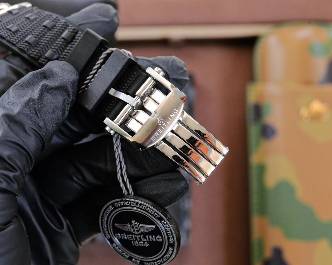 这款手表是AAAAA 1:1 质量 (非常棒). 使用了和原版一模一样的材料. 商标部分也保持了和Breitling一样. 图片拍摄是实物手表拍摄, 您所收到的实物保证和我们图片一模一样.