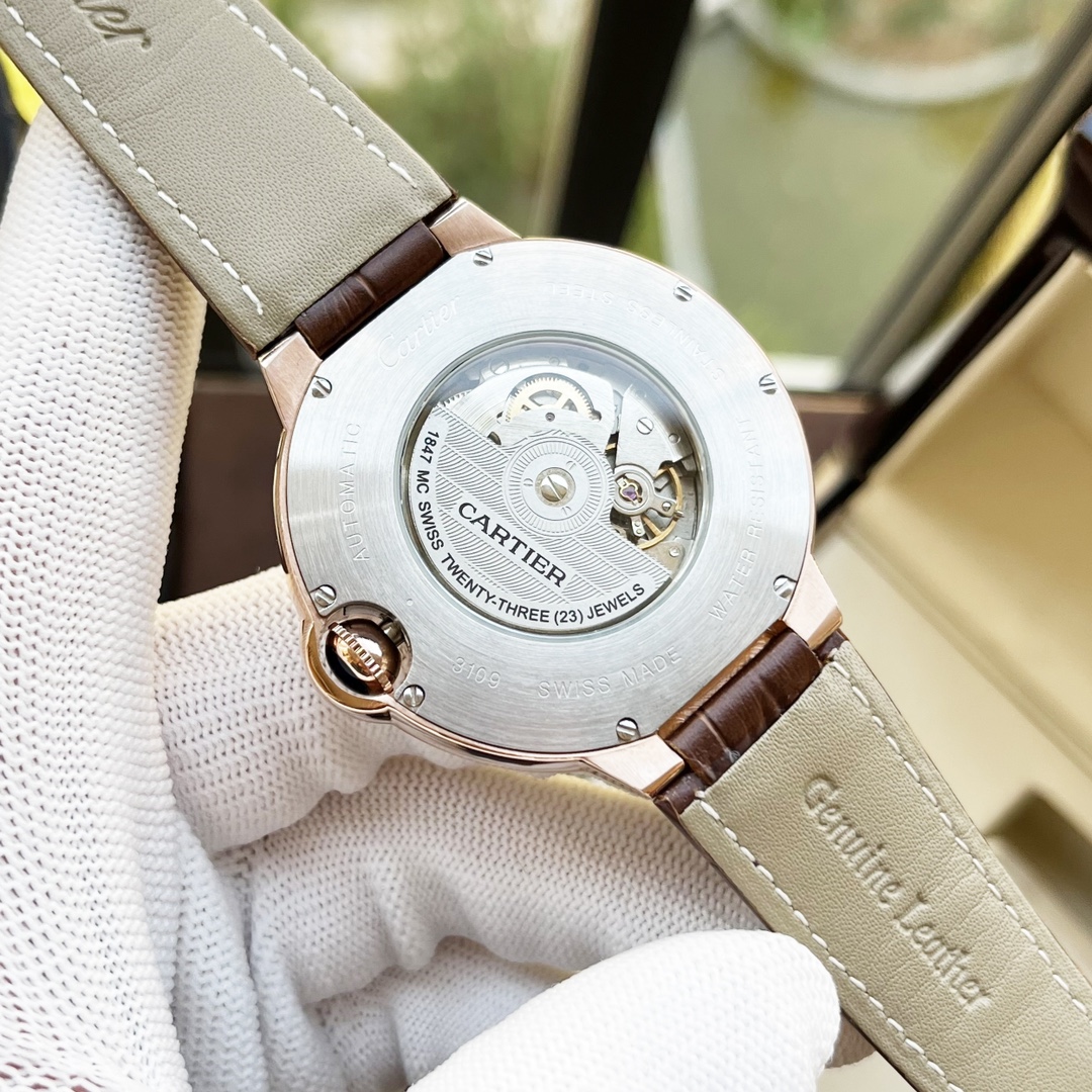 这款手表是AAAAA 1:1 质量 (非常棒). 使用了和原版一模一样的材料. 商标部分也保持了和卡地亚/Cartier一样. 图片拍摄是实物手表拍摄, 您所收到的实物保证和我们图片一模一样.