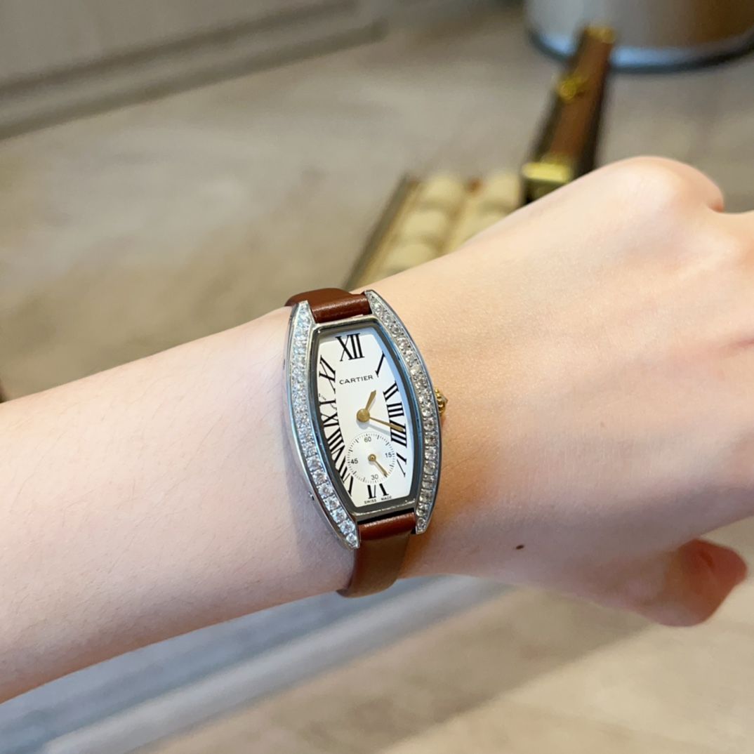 这款手表是AAAAA 1:1 质量 (非常棒). 使用了和原版一模一样的材料. 商标部分也保持了和卡地亚/Cartier一样. 图片拍摄是实物手表拍摄, 您所收到的实物保证和我们图片一模一样.