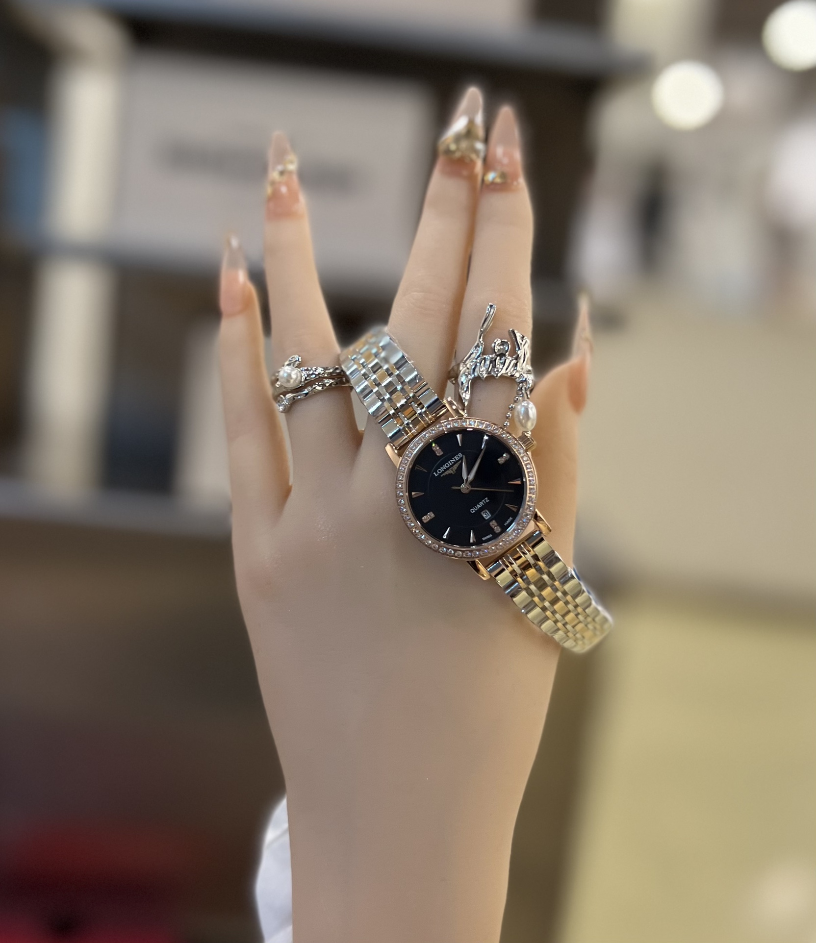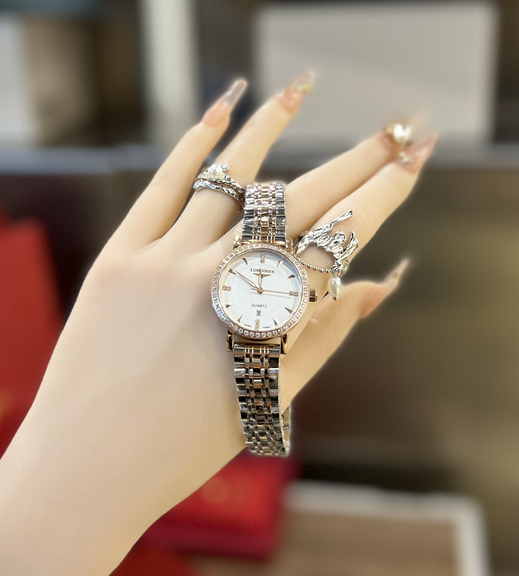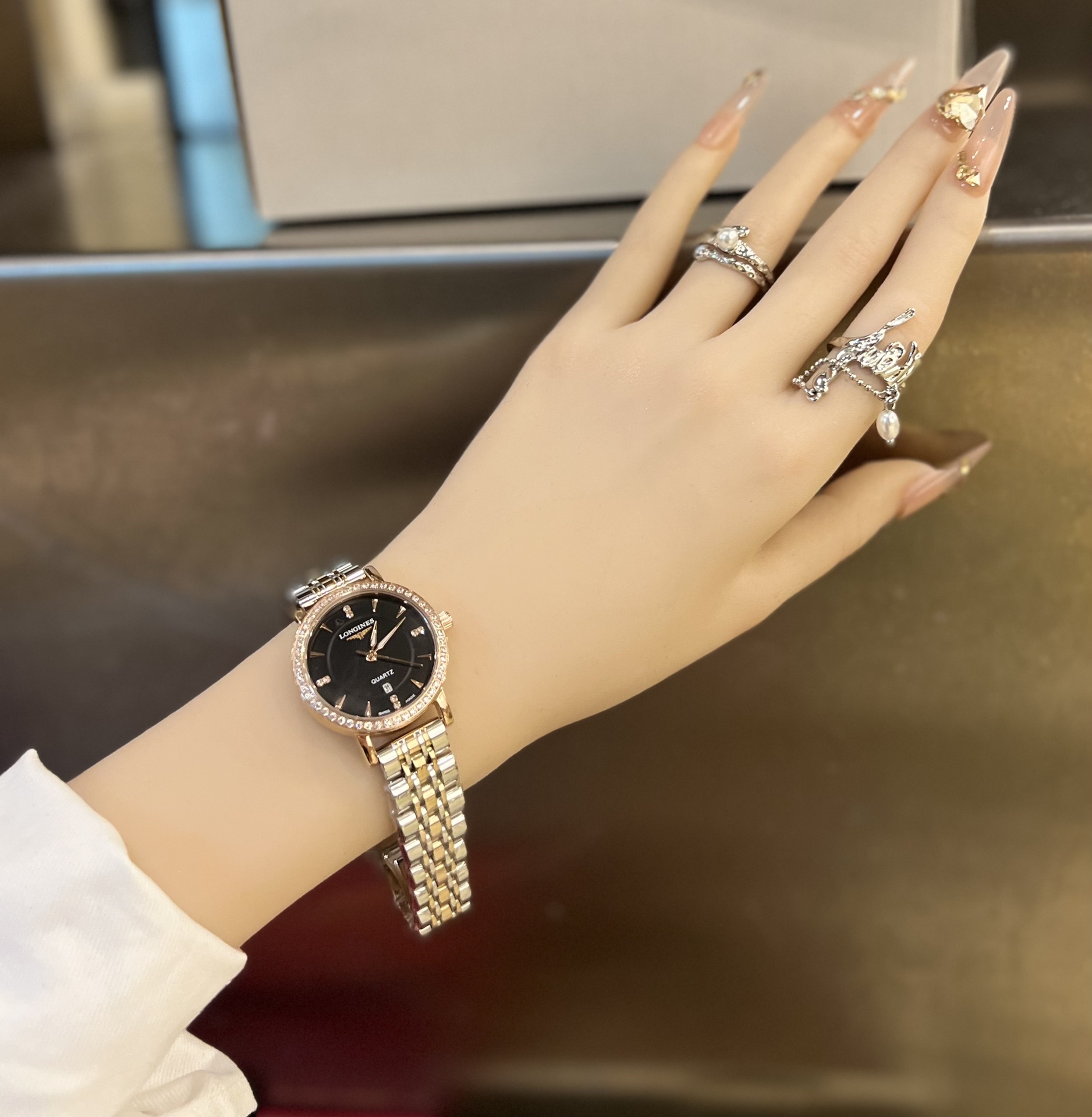 这款手表是AAAAA 1:1 质量 (非常棒). 使用了和原版一模一样的材料. 商标部分也保持了和浪琴/Longines一样. 图片拍摄是实物手表拍摄, 您所收到的实物保证和我们图片一模一样.