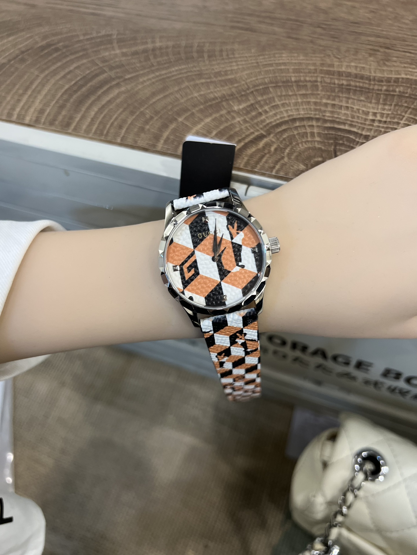 这款手表是AAAAA 1:1 质量 (非常棒). 使用了和原版一模一样的材料. 商标部分也保持了和古奇/Gucci一样. 图片拍摄是实物手表拍摄, 您所收到的实物保证和我们图片一模一样.