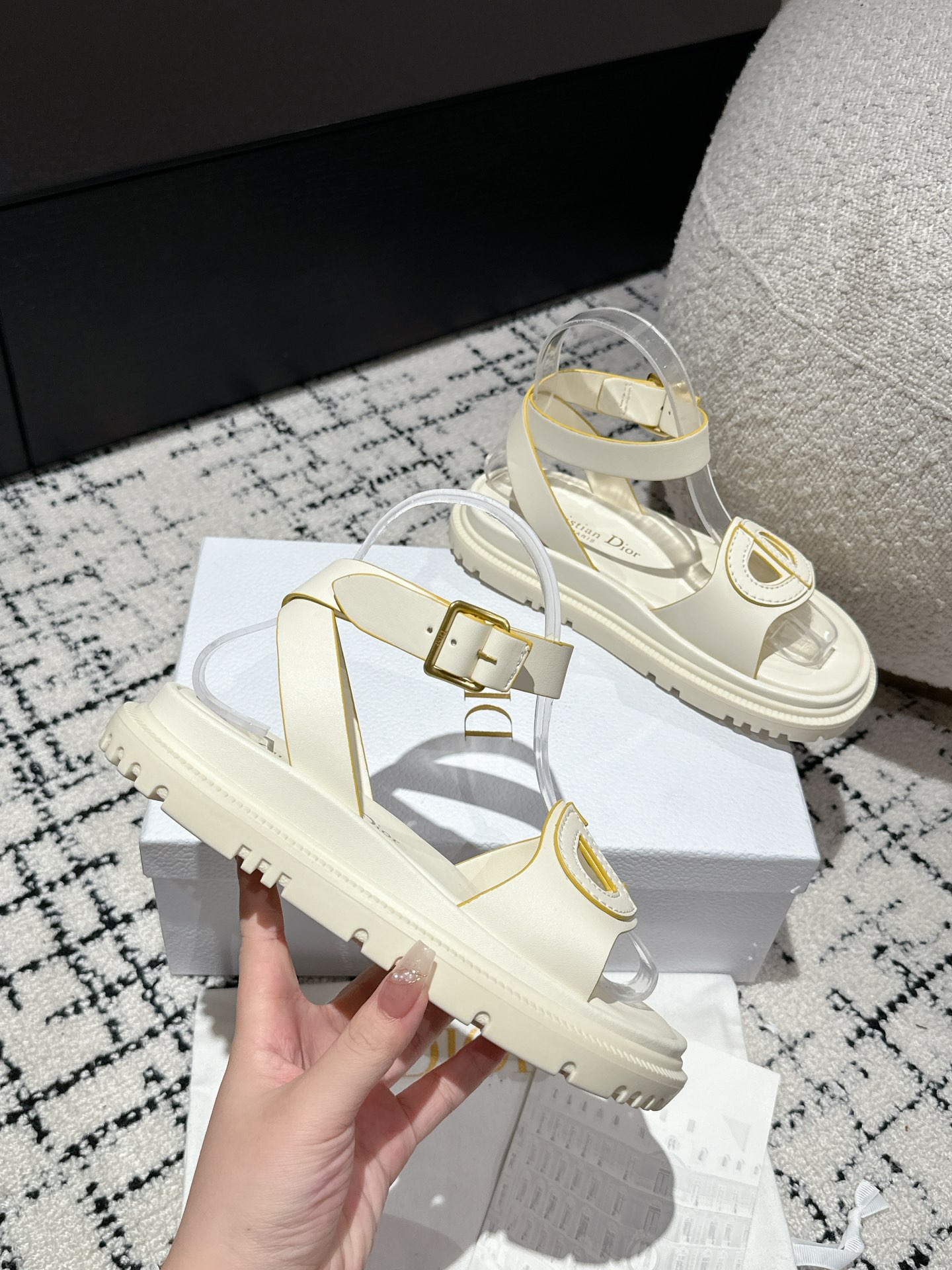 这款鞋子是AAAAA 1:1 质量 (非常棒). 使用了和原版一模一样的材料. 商标部分也保持了和迪奥/Dior一样. 图片拍摄是实物鞋子拍摄, 您所收到的实物保证和我们图片一模一样.