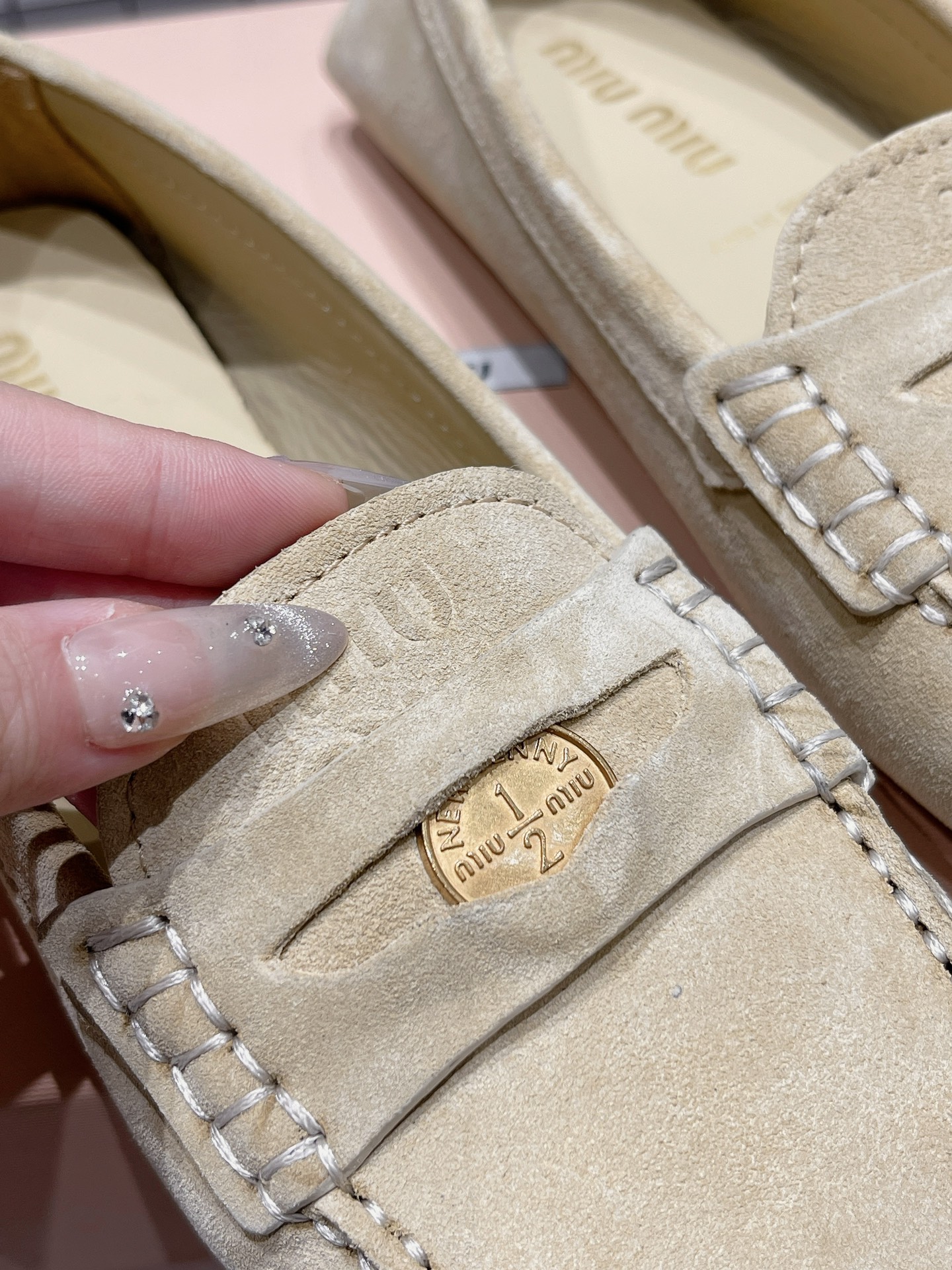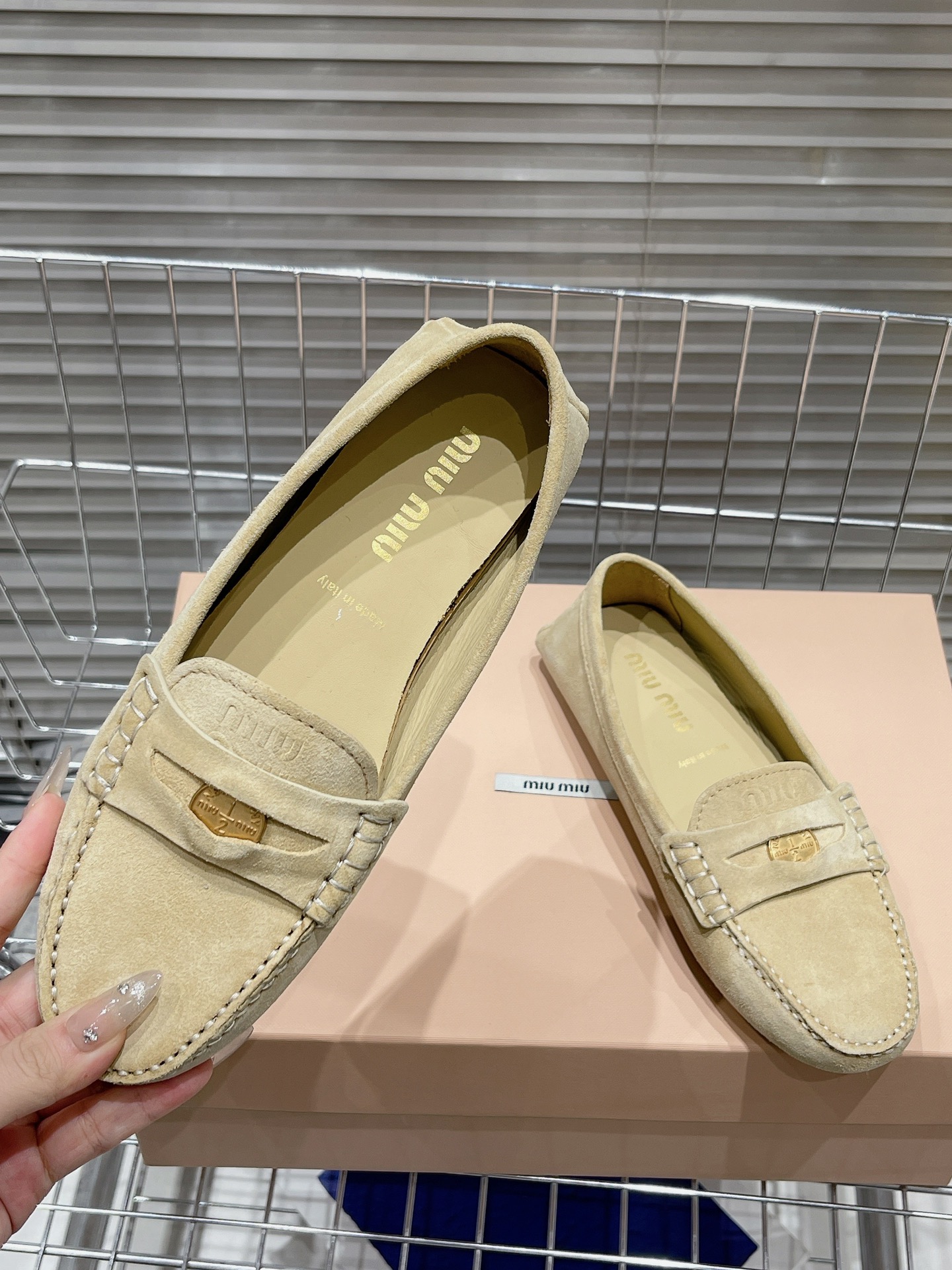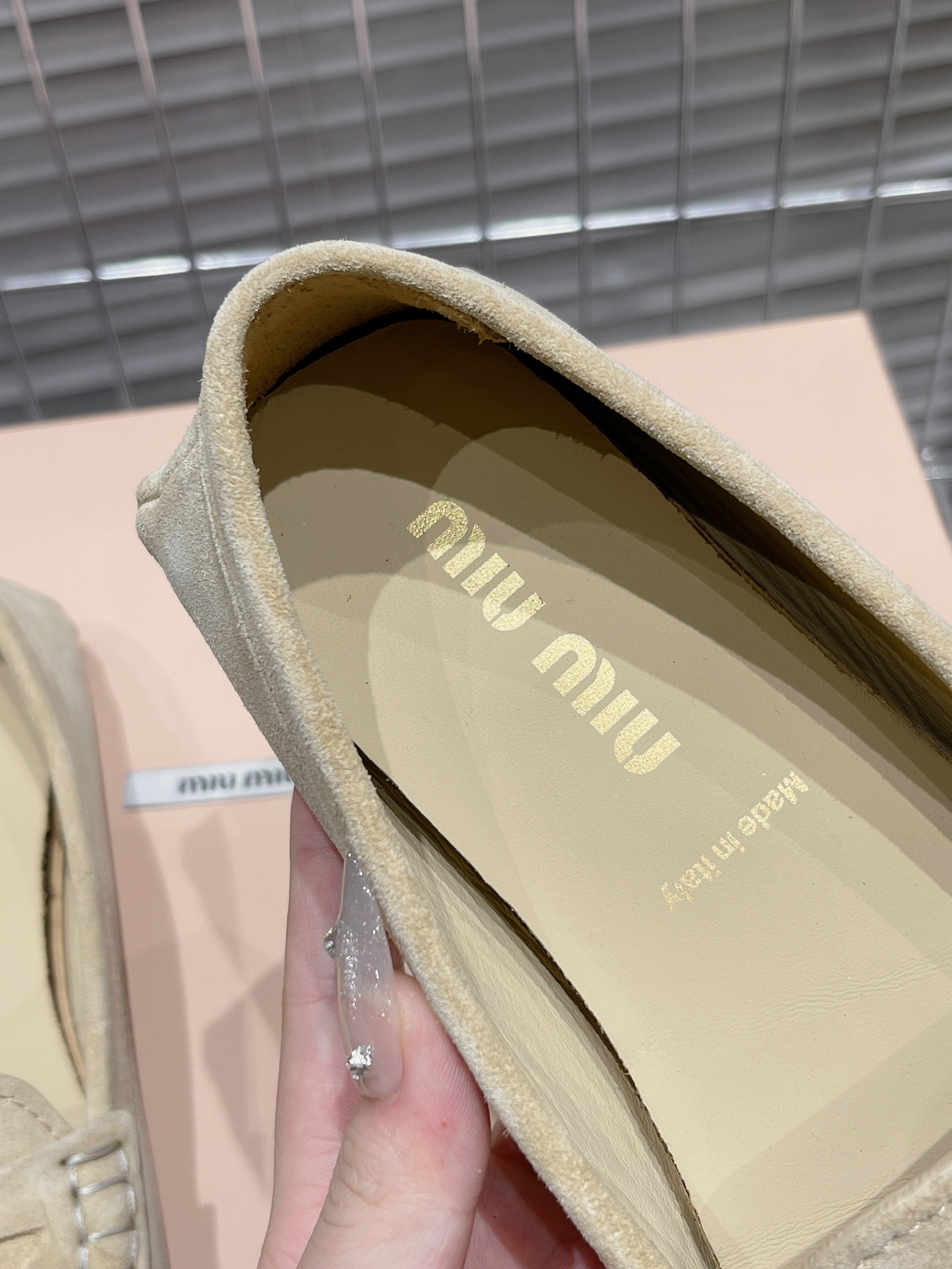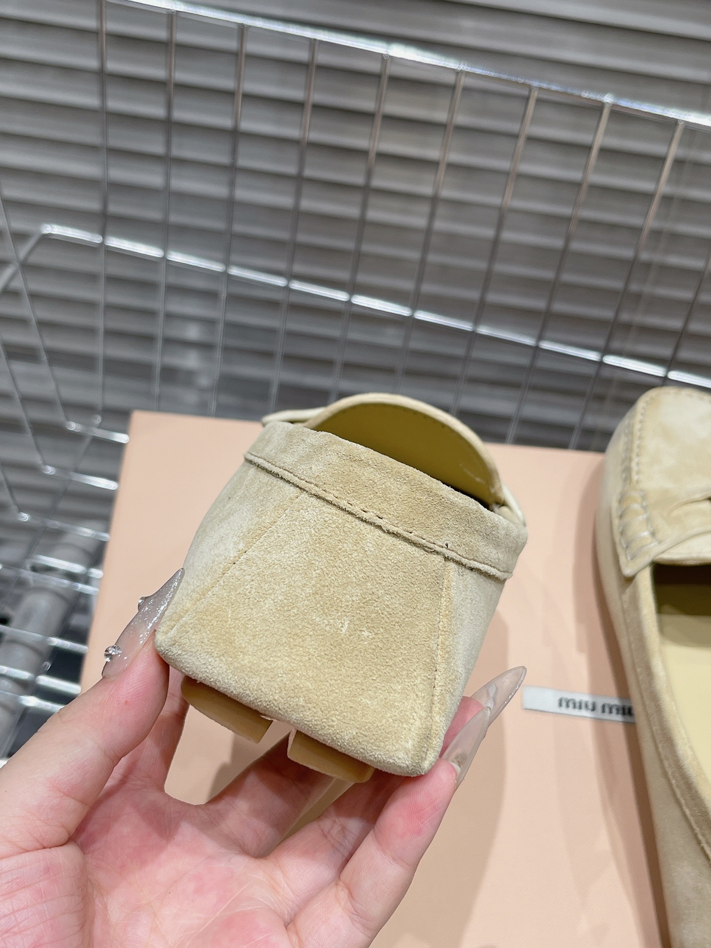 这款鞋子是AAAAA 1:1 质量 (非常棒). 使用了和原版一模一样的材料. 商标部分也保持了和缪缪/Miu Miu一样. 图片拍摄是实物鞋子拍摄, 您所收到的实物保证和我们图片一模一样.