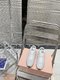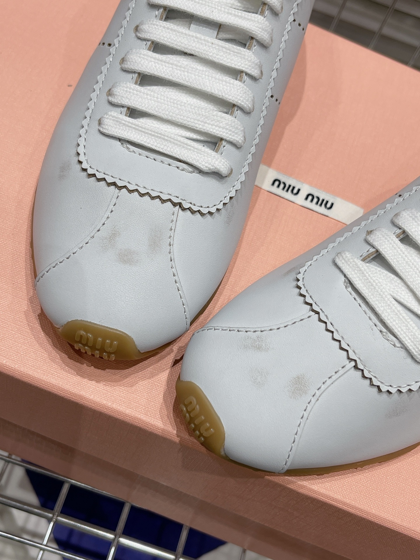 这款鞋子是AAAAA 1:1 质量 (非常棒). 使用了和原版一模一样的材料. 商标部分也保持了和缪缪/Miu Miu一样. 图片拍摄是实物鞋子拍摄, 您所收到的实物保证和我们图片一模一样.