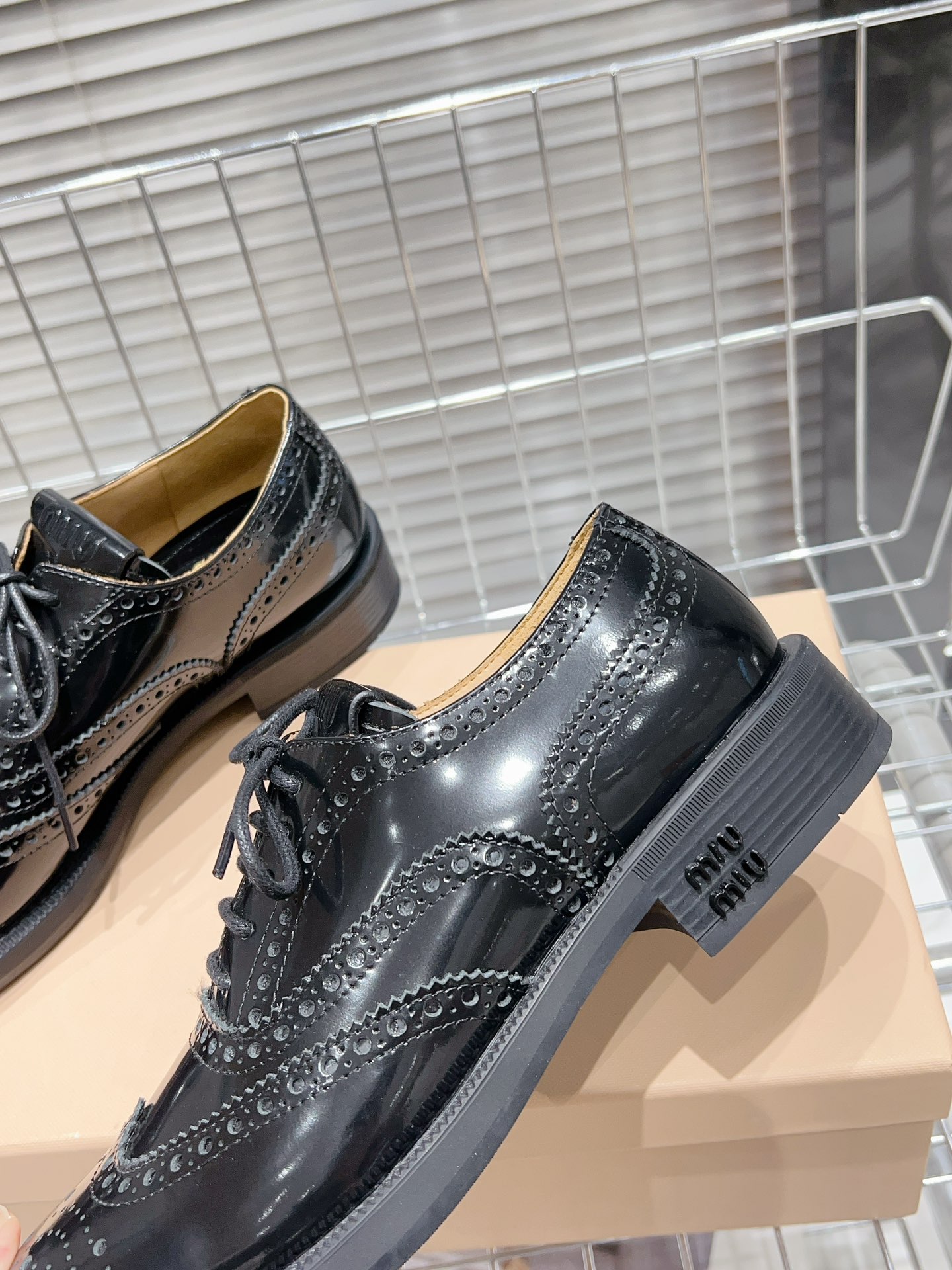这款鞋子是AAAAA 1:1 质量 (非常棒). 使用了和原版一模一样的材料. 商标部分也保持了和缪缪/Miu Miu一样. 图片拍摄是实物鞋子拍摄, 您所收到的实物保证和我们图片一模一样.