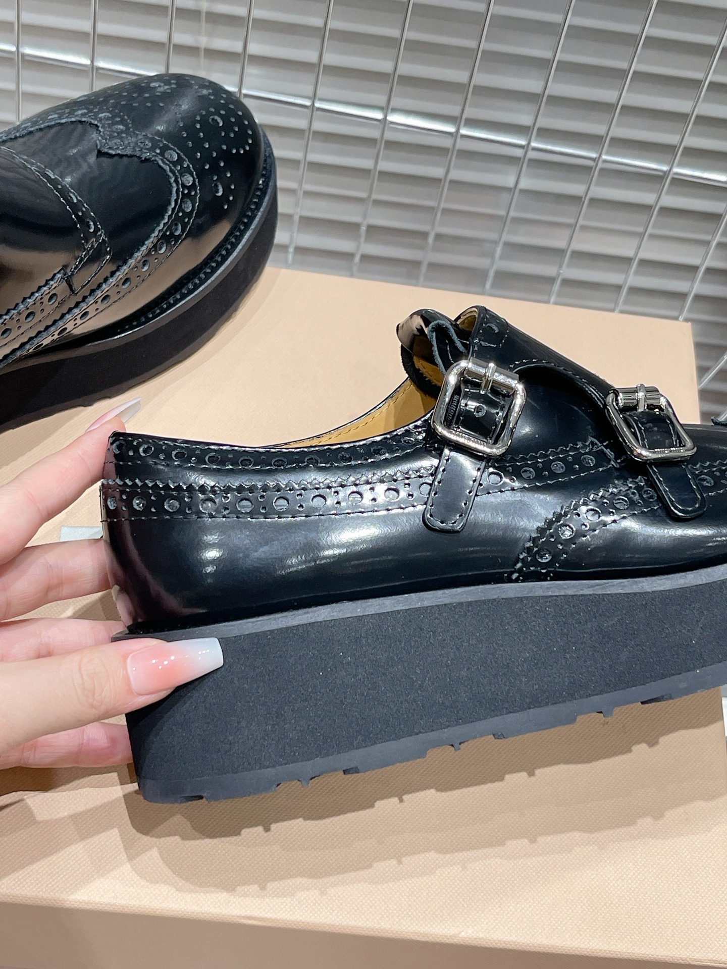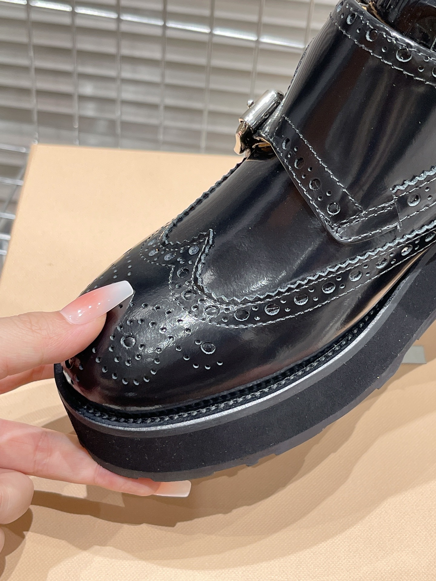 这款鞋子是AAAAA 1:1 质量 (非常棒). 使用了和原版一模一样的材料. 商标部分也保持了和Church's一样. 图片拍摄是实物鞋子拍摄, 您所收到的实物保证和我们图片一模一样.