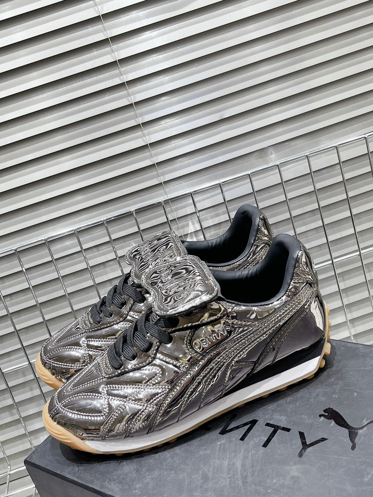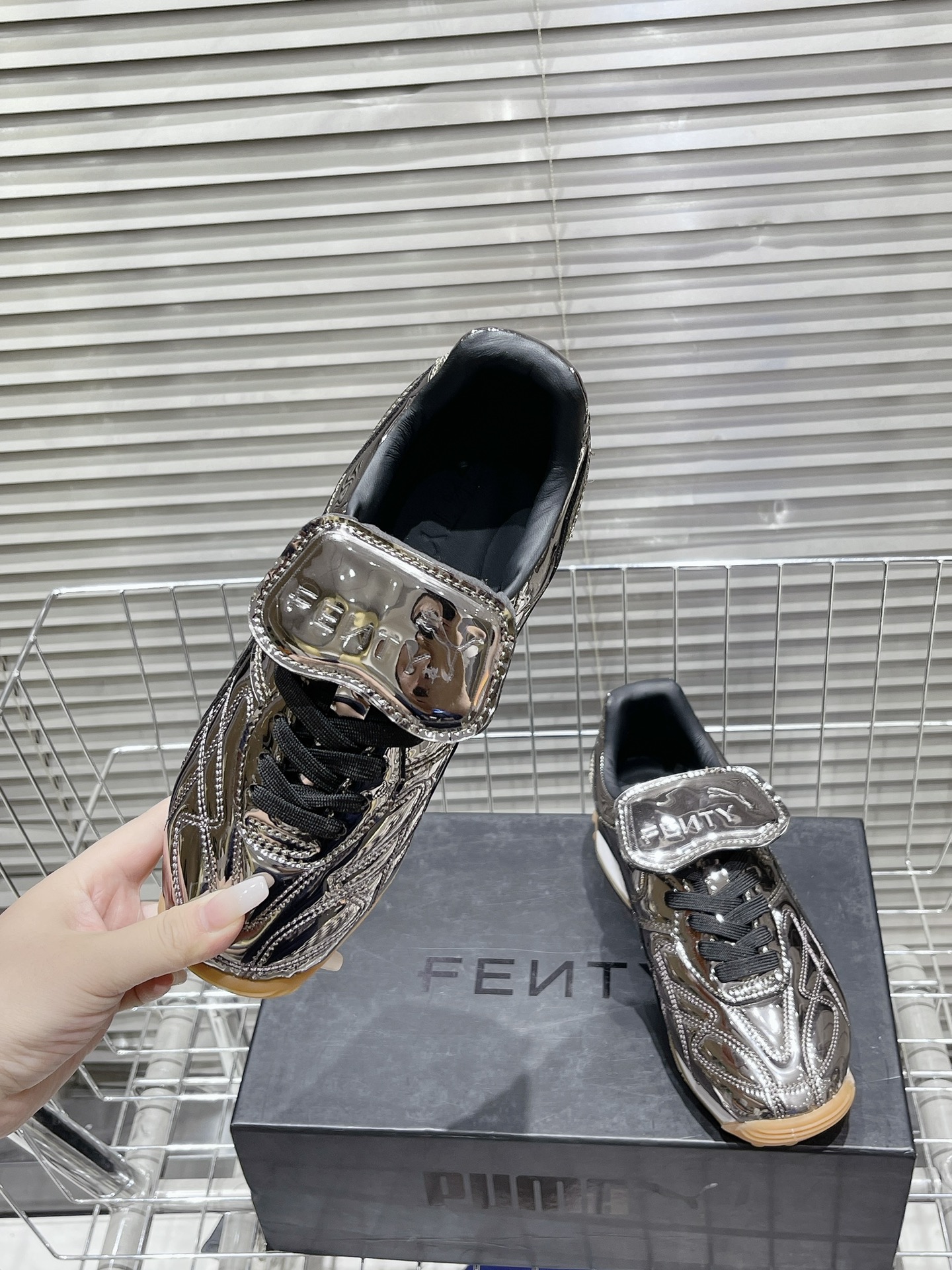 这款鞋子是AAAAA 1:1 质量 (非常棒). 使用了和原版一模一样的材料. 商标部分也保持了和FENTY一样. 图片拍摄是实物鞋子拍摄, 您所收到的实物保证和我们图片一模一样.