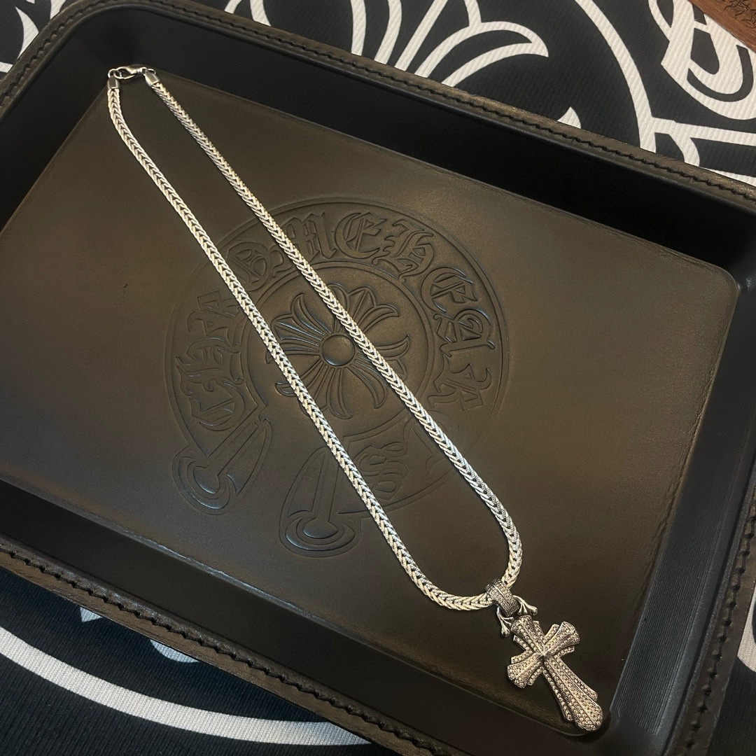 这款首饰是AAAAA 1:1 质量 (非常棒). 使用了和原版一模一样的材料. 商标部分也保持了和克罗心/Chrome Hearts一样. 图片拍摄是实物首饰拍摄, 您所收到的实物保证和我们图片一模一样.
