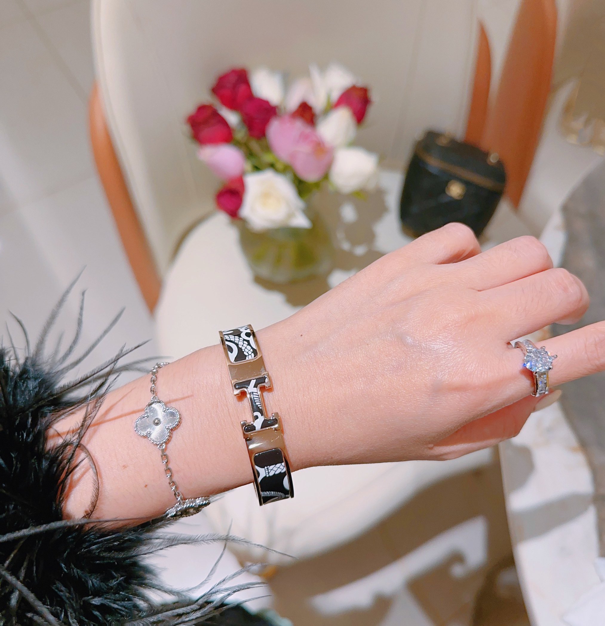 这款首饰是AAAAA 1:1 质量 (非常棒). 使用了和原版一模一样的材料. 商标部分也保持了和爱马仕/Hermes一样. 图片拍摄是实物首饰拍摄, 您所收到的实物保证和我们图片一模一样.