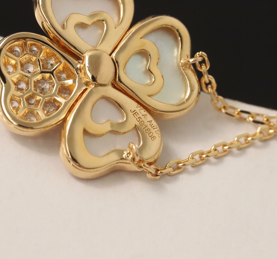 这款首饰是AAAAA 1:1 质量 (非常棒). 使用了和原版一模一样的材料. 商标部分也保持了和梵克雅宝/Van Cleef & Arpels一样. 图片拍摄是实物首饰拍摄, 您所收到的实物保证和我们图片一模一样.