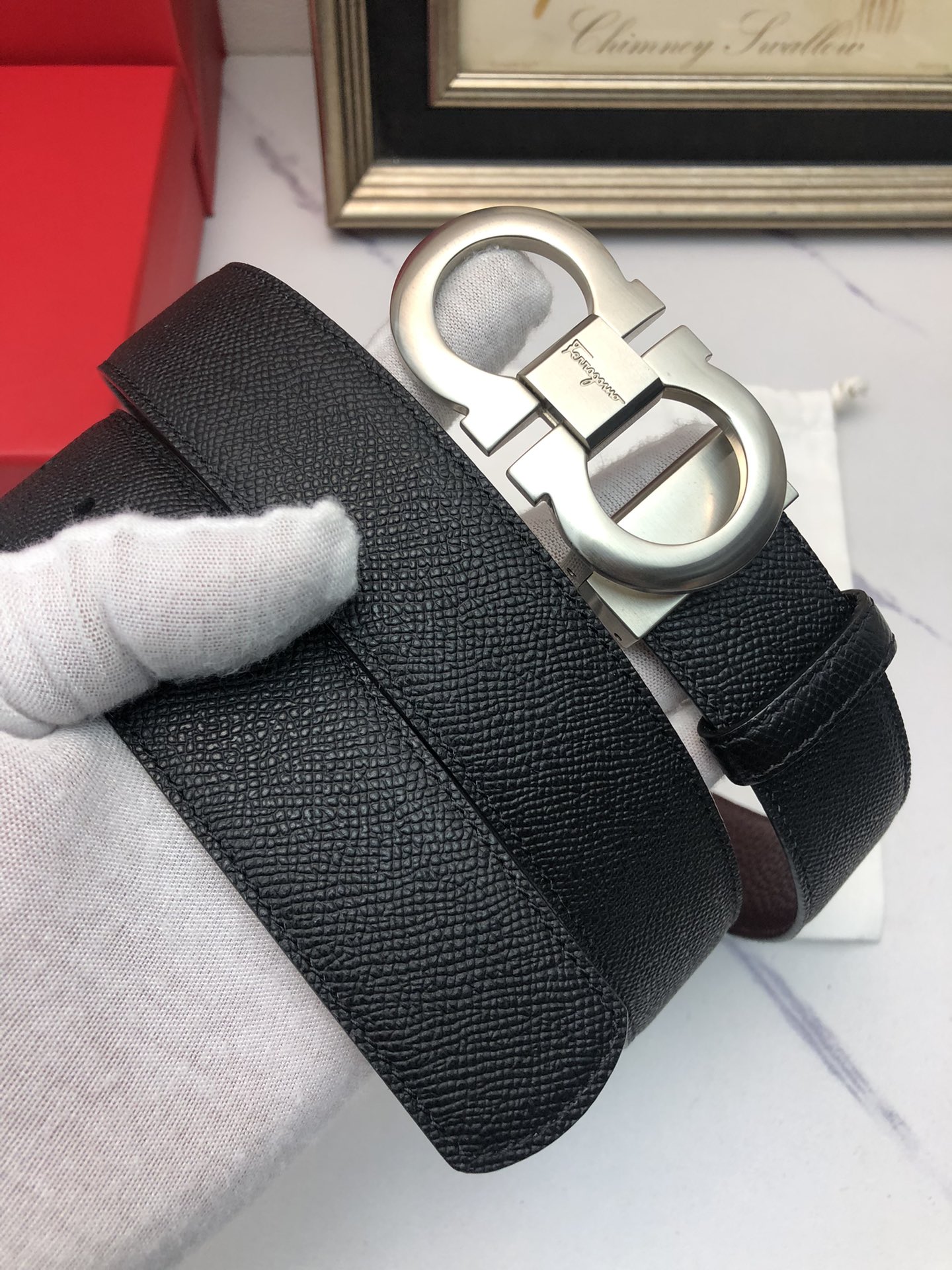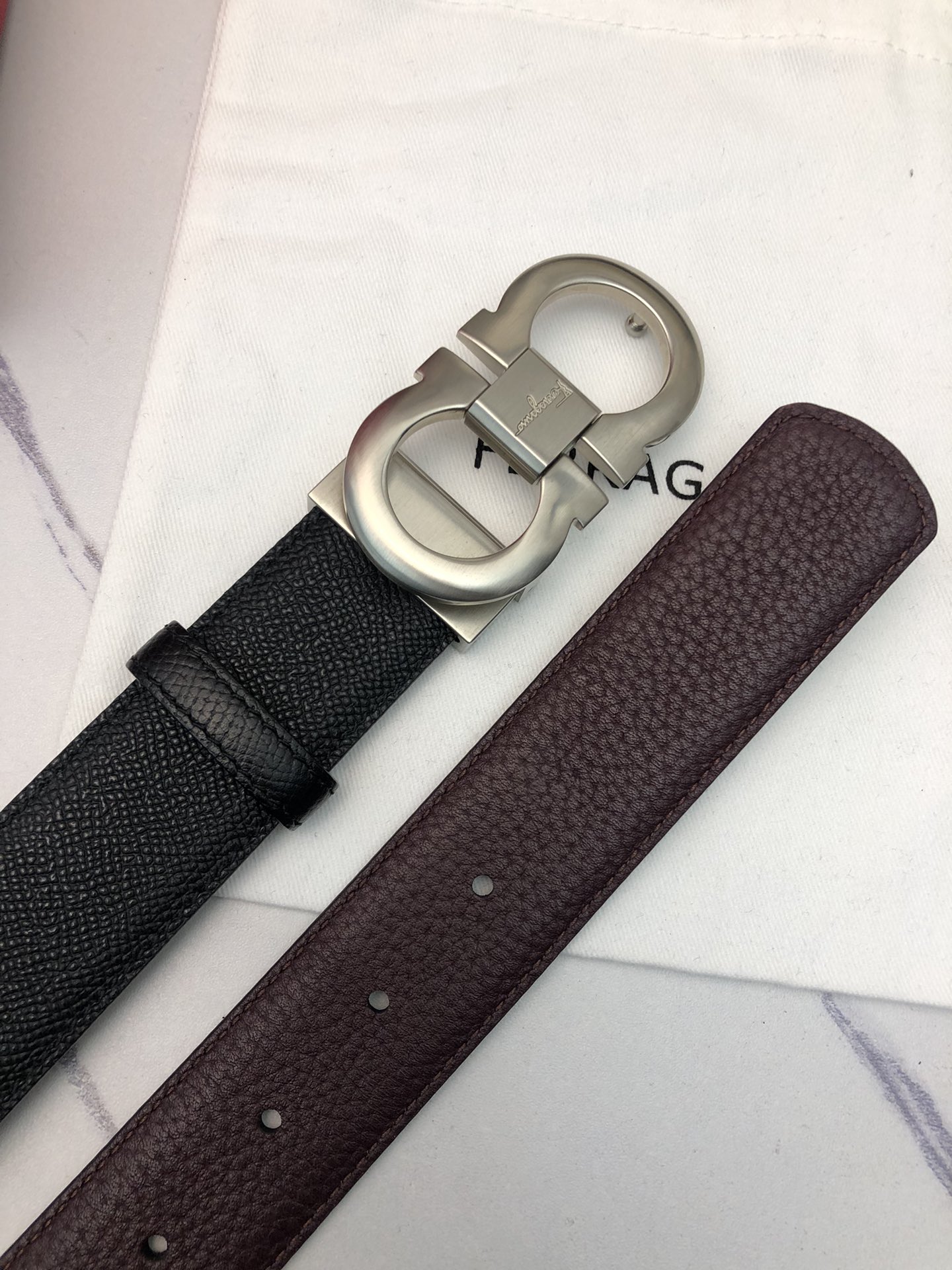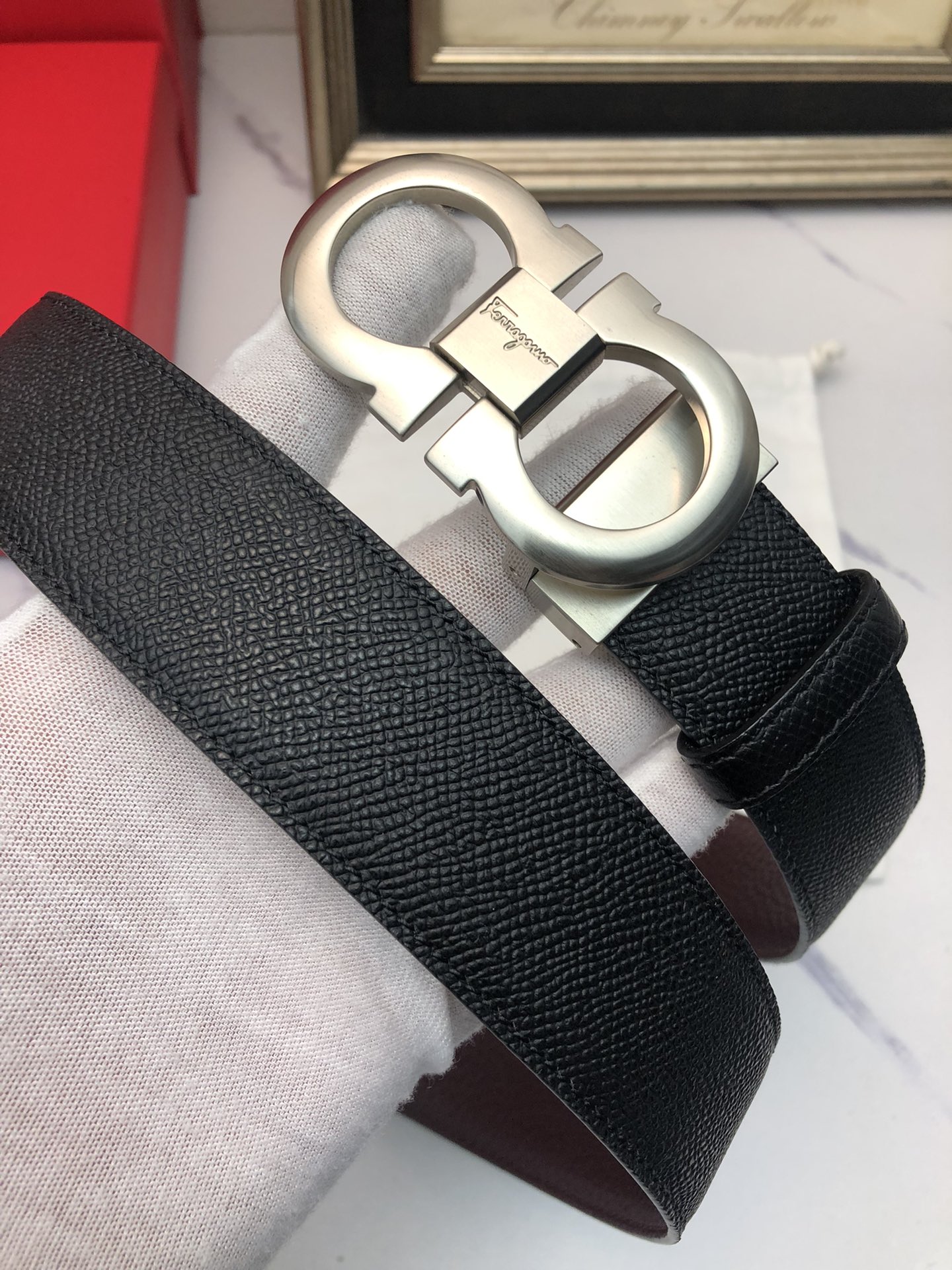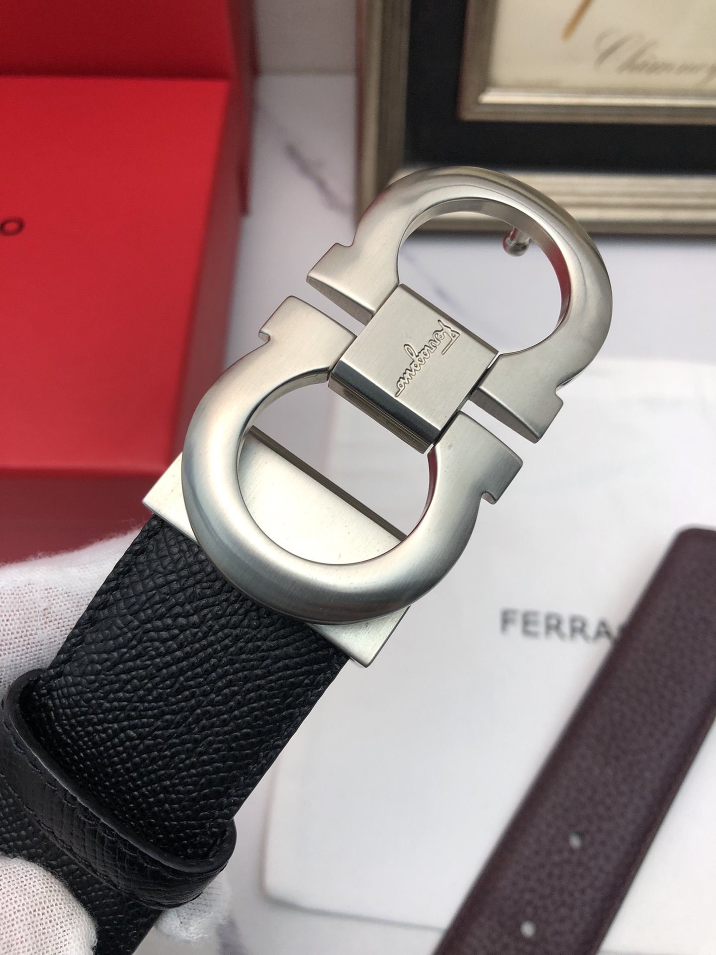 这款皮带是AAAAA 1:1 质量 (非常棒). 使用了和原版一模一样的材料. 商标部分也保持了和菲拉格慕/Salvatore Ferragamo一样. 图片拍摄是实物皮带拍摄, 您所收到的实物保证和我们图片一模一样.