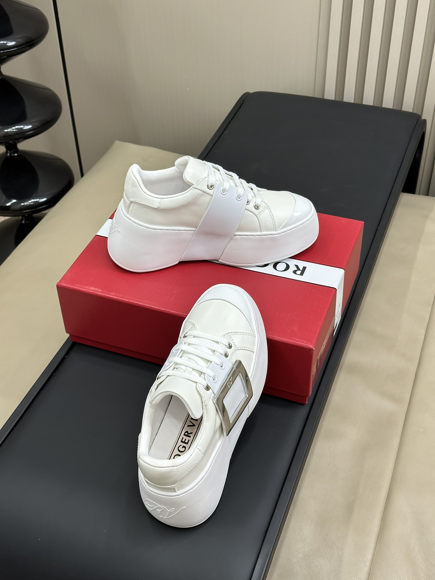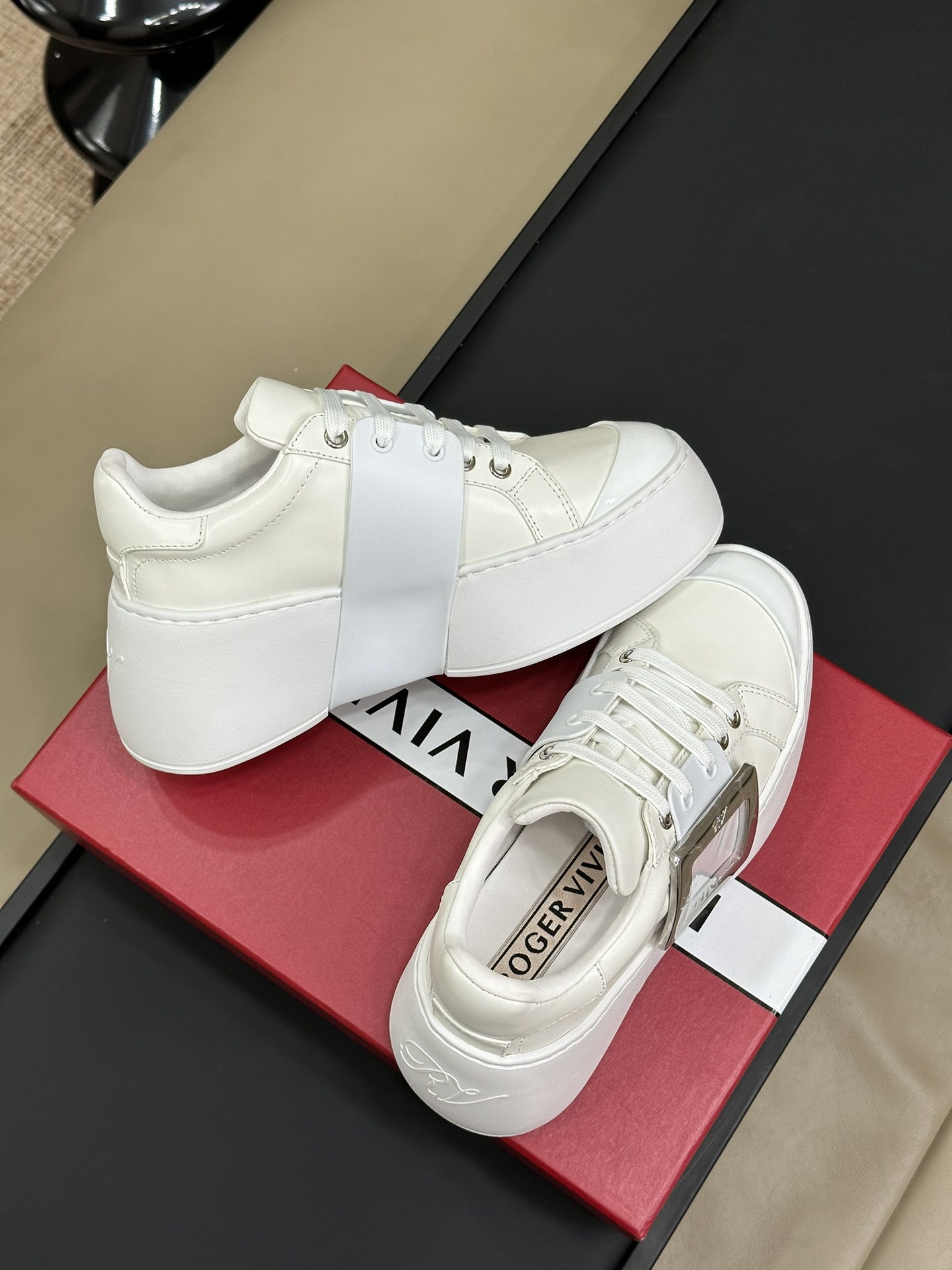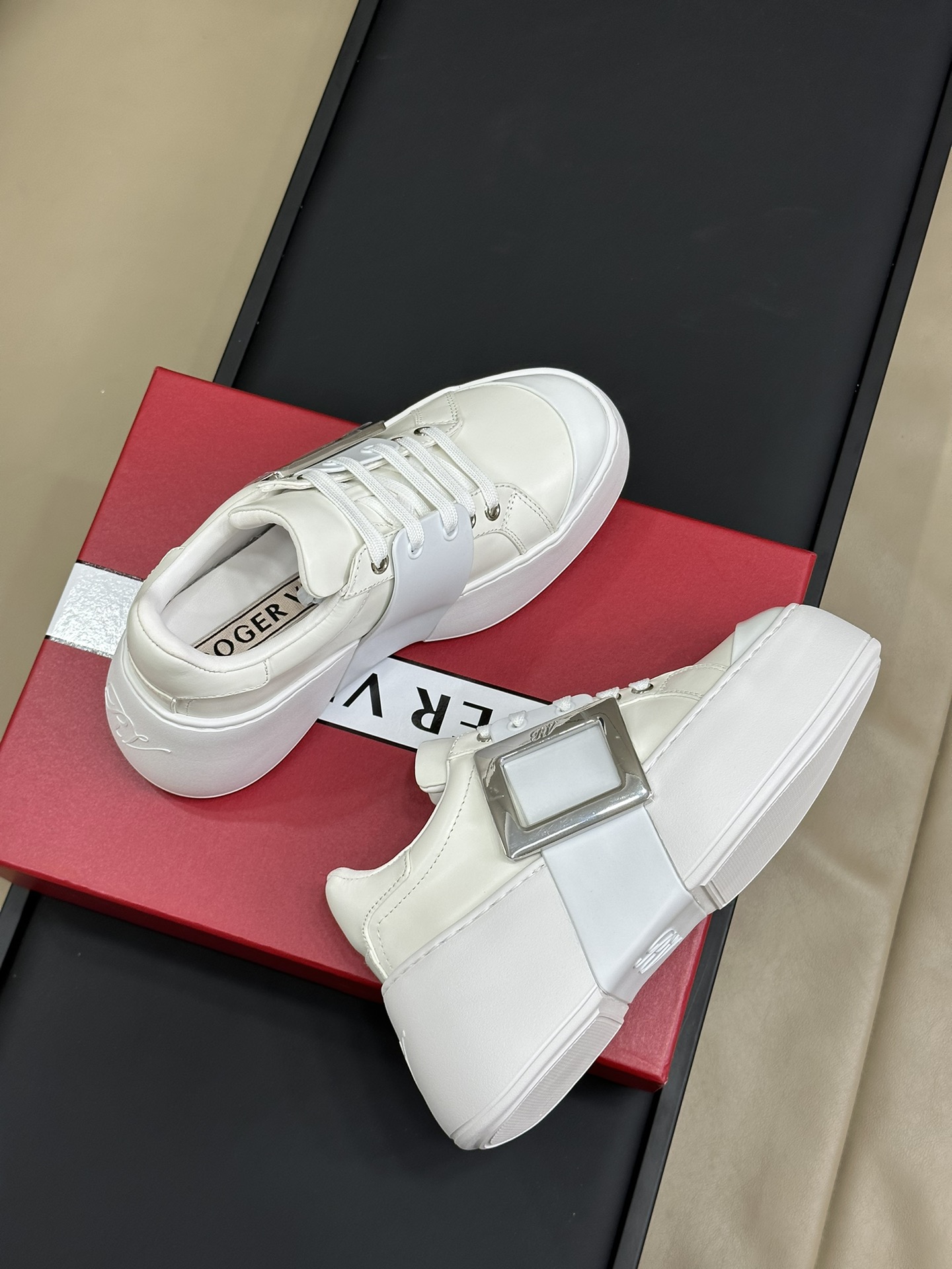 这款鞋子是AAAAA 1:1 质量 (非常棒). 使用了和原版一模一样的材料. 商标部分也保持了和罗杰维维耶/Roger Vivier一样. 图片拍摄是实物鞋子拍摄, 您所收到的实物保证和我们图片一模一样.